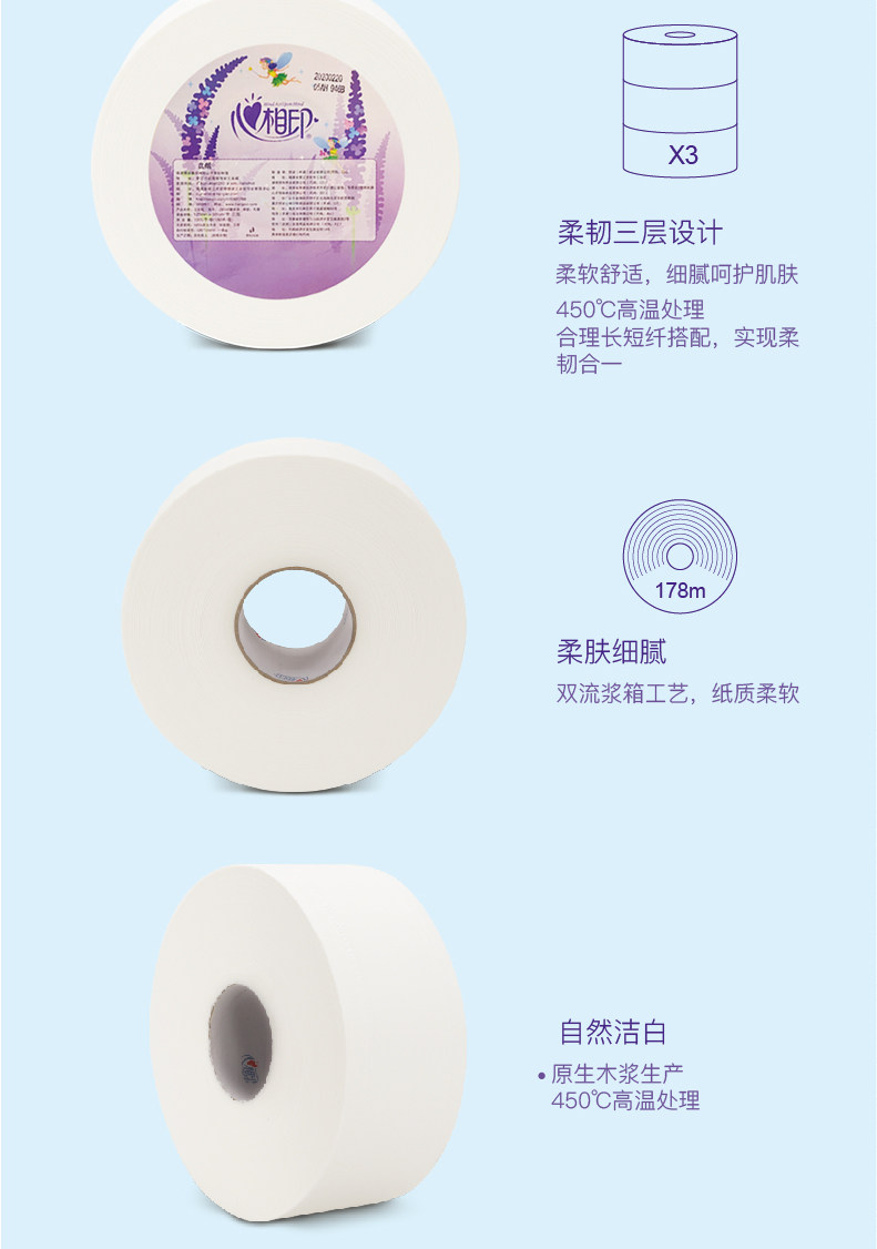 心相印 Большая рулонная бумага туалетная бумага обстановка туалетов Коммерческие большие тарелки гибкие трехслойные 180 -метровые санитарные бумажные полотенце 6 томов