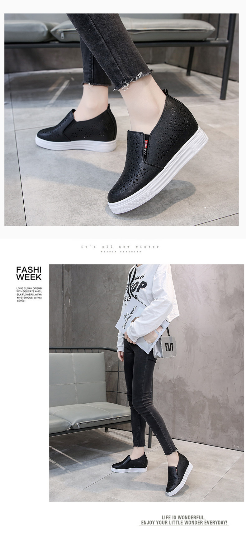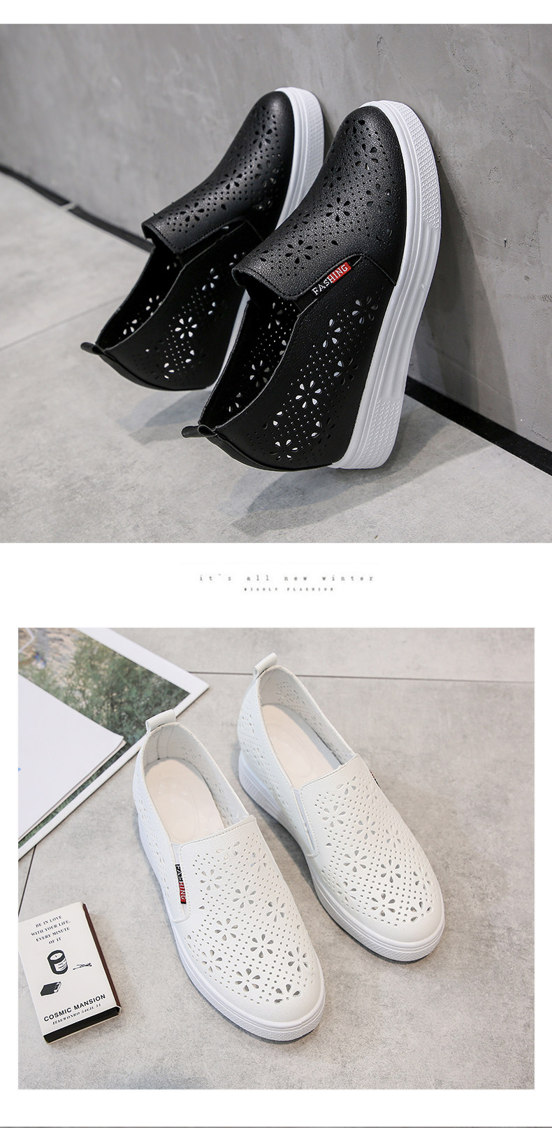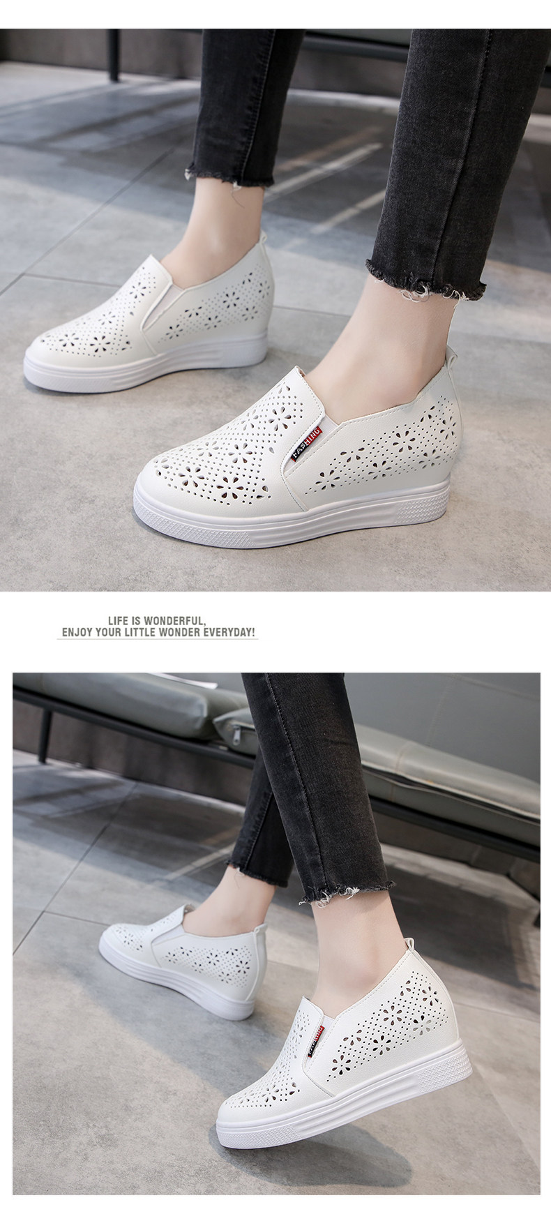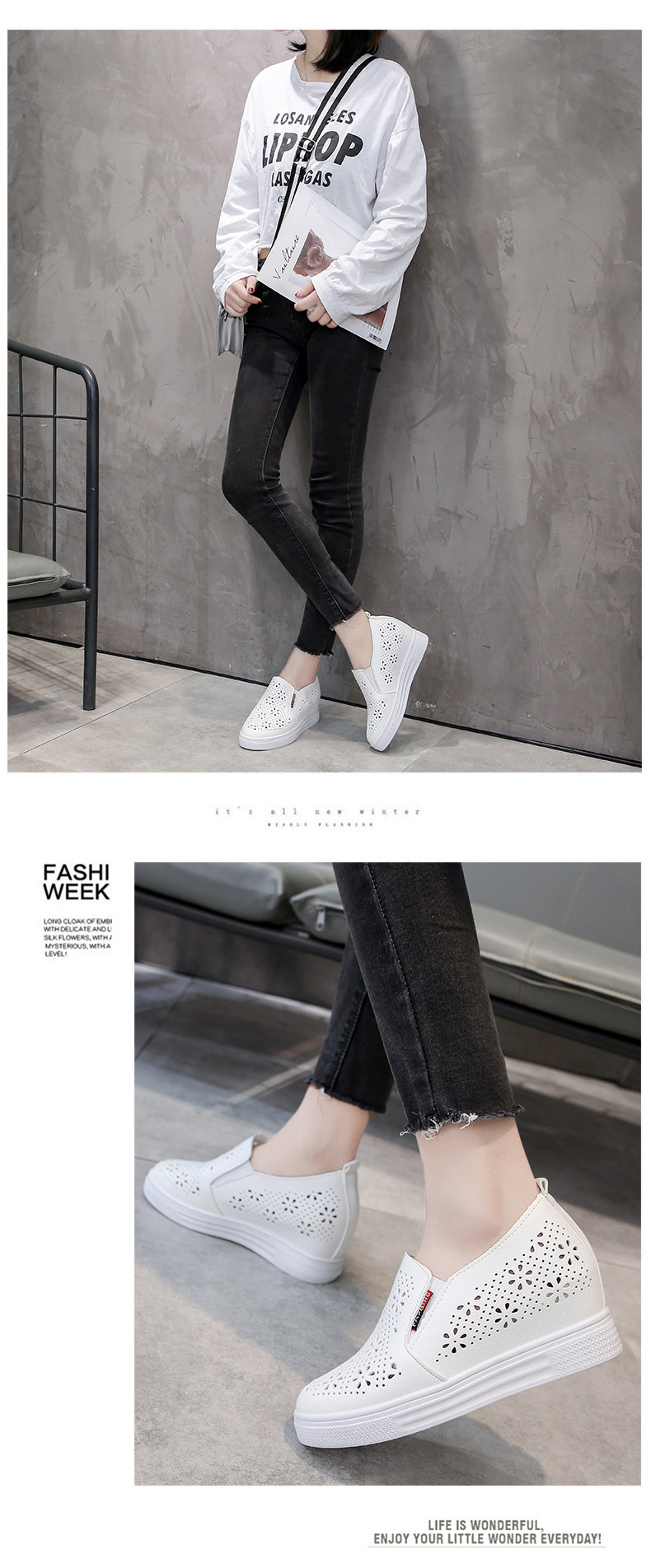 Дышащие осенние спортивные туфли на высоком каблуке, белая обувь, 2020, тренд сезона