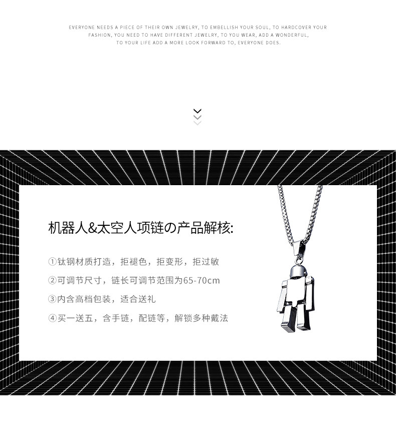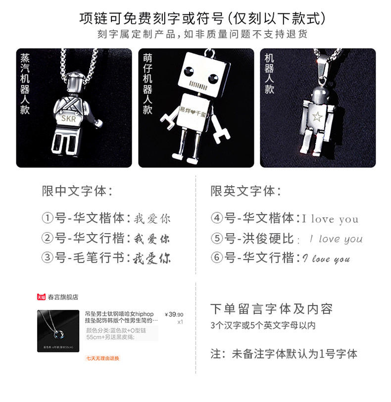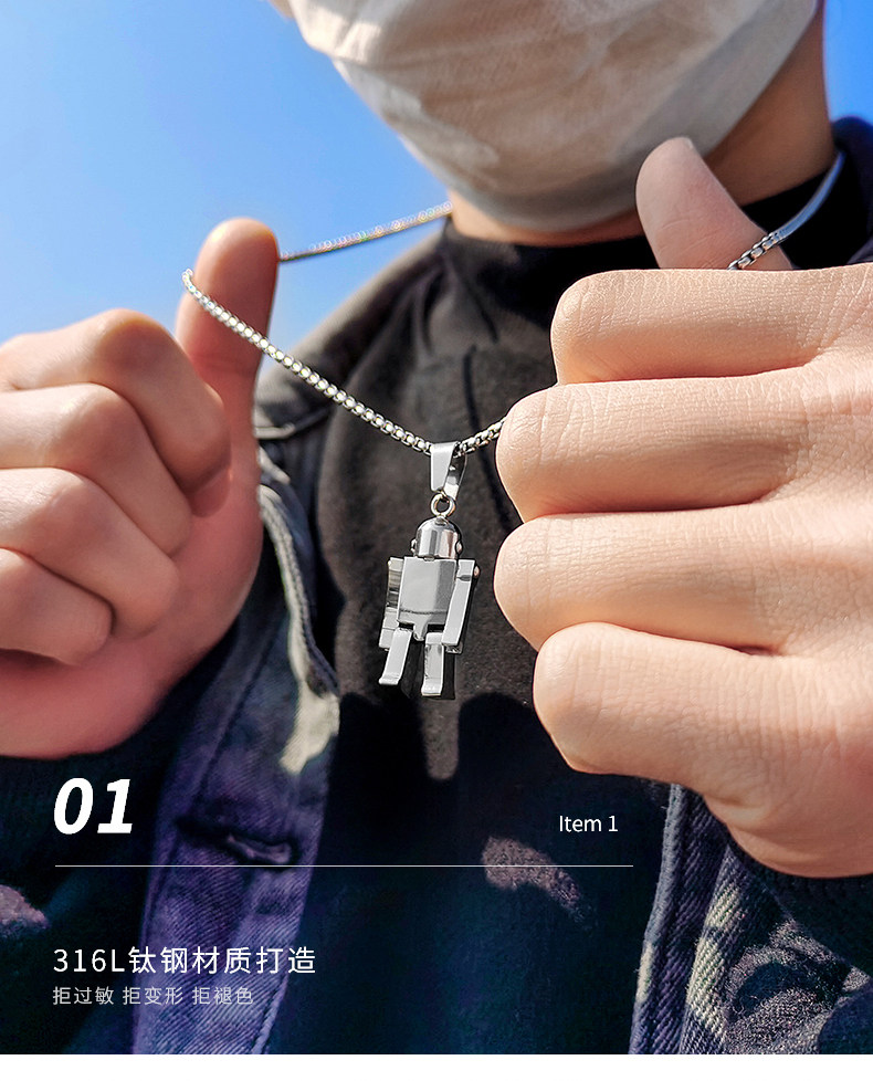Робот, ожерелье в стиле хип-хоп, мужская подвеска из нержавеющей стали, в корейском стиле, простой и элегантный дизайн