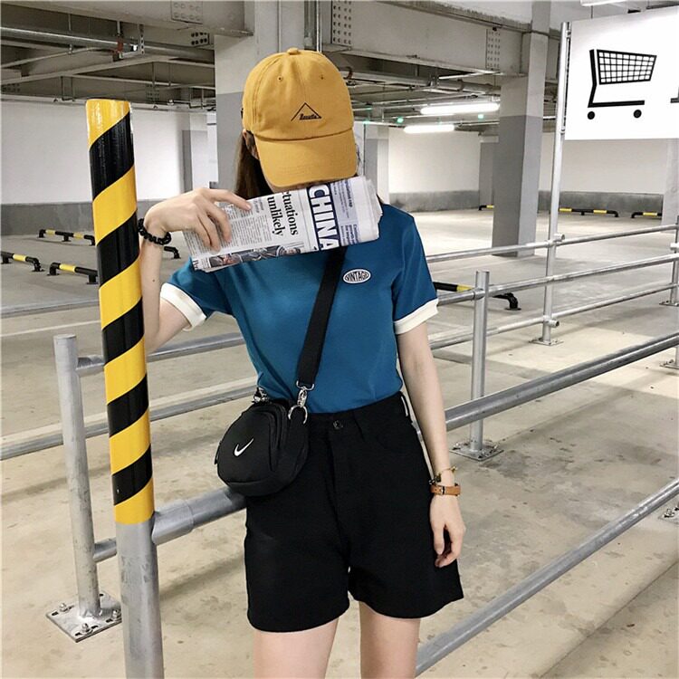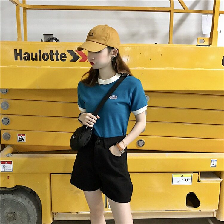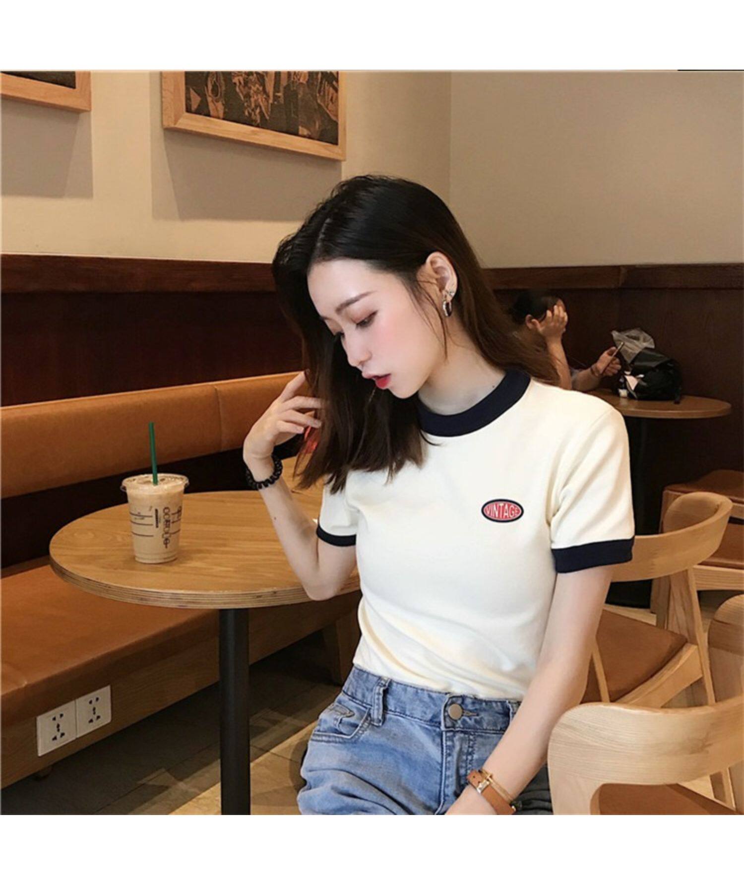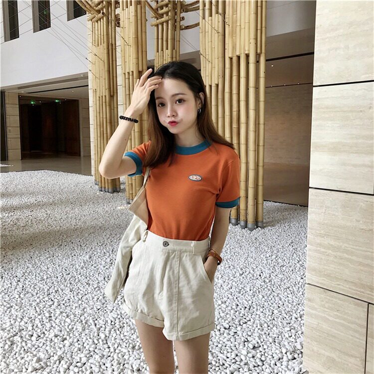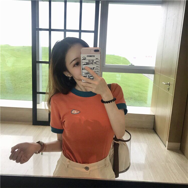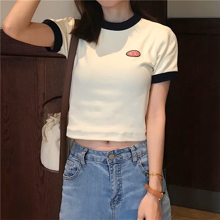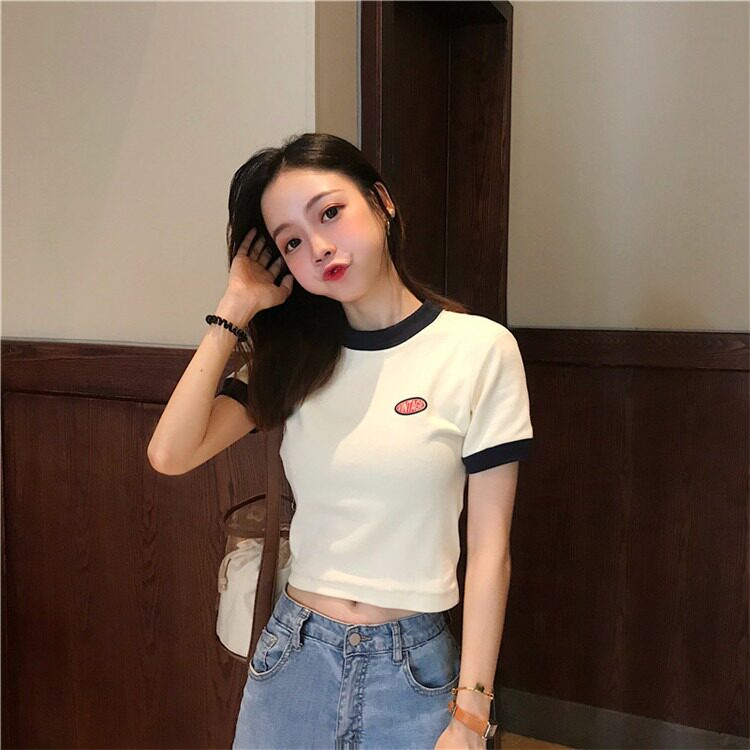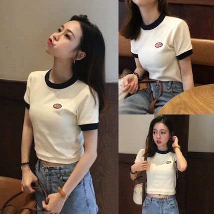 Tide, летняя дизайнерская короткая футболка с коротким рукавом, тренд сезона, облегающий крой, высокая талия
