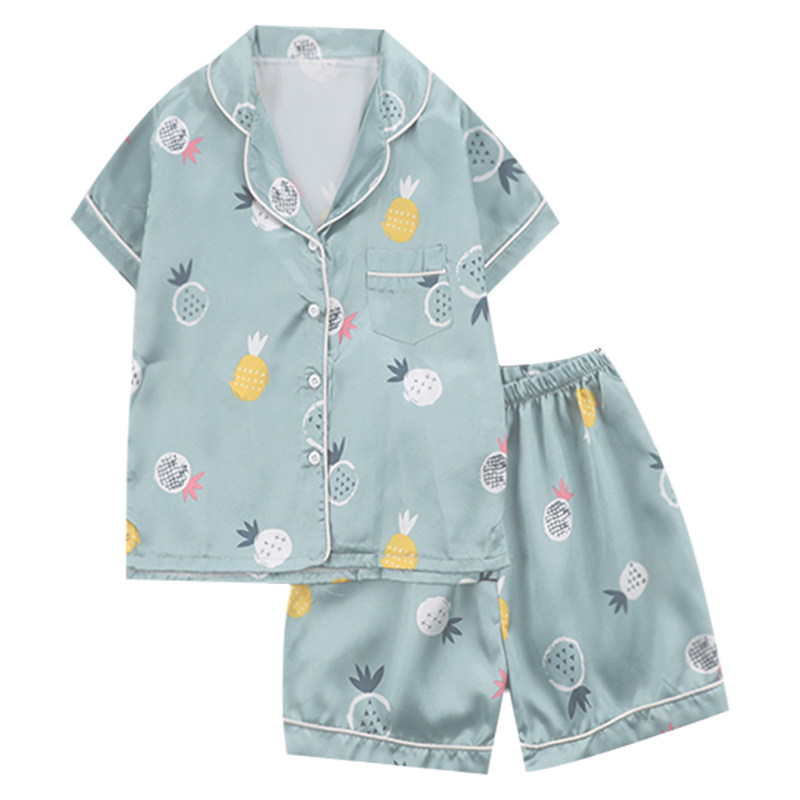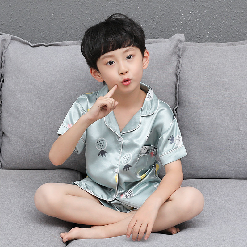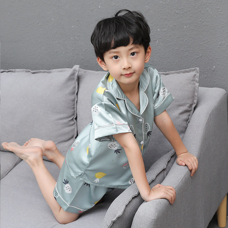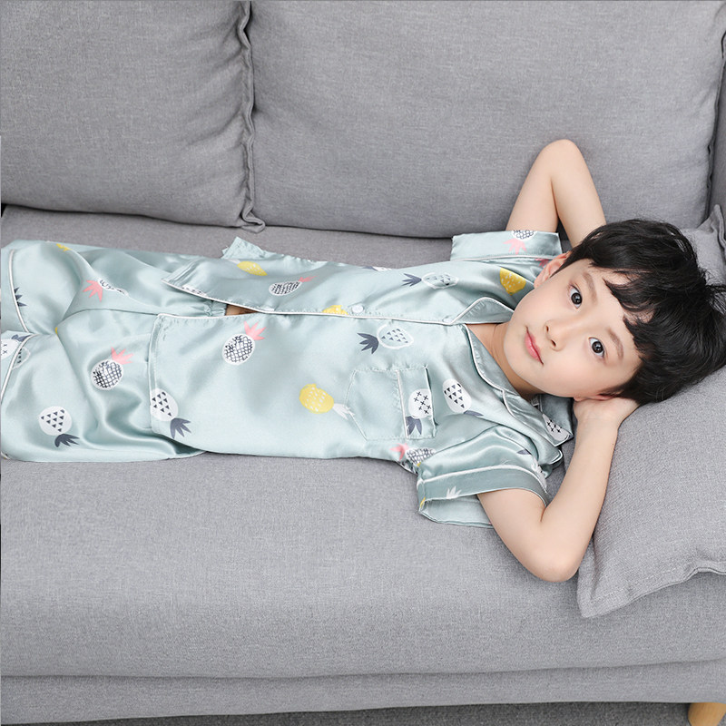 Детская летняя тонкая пижама для мальчиков, шелковый комплект, подходит для подростков, короткий рукав, семейный стиль