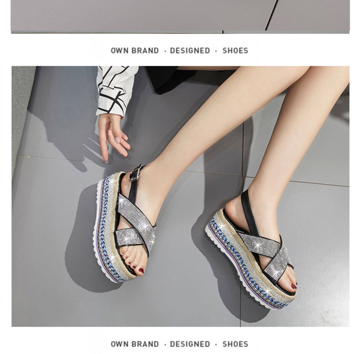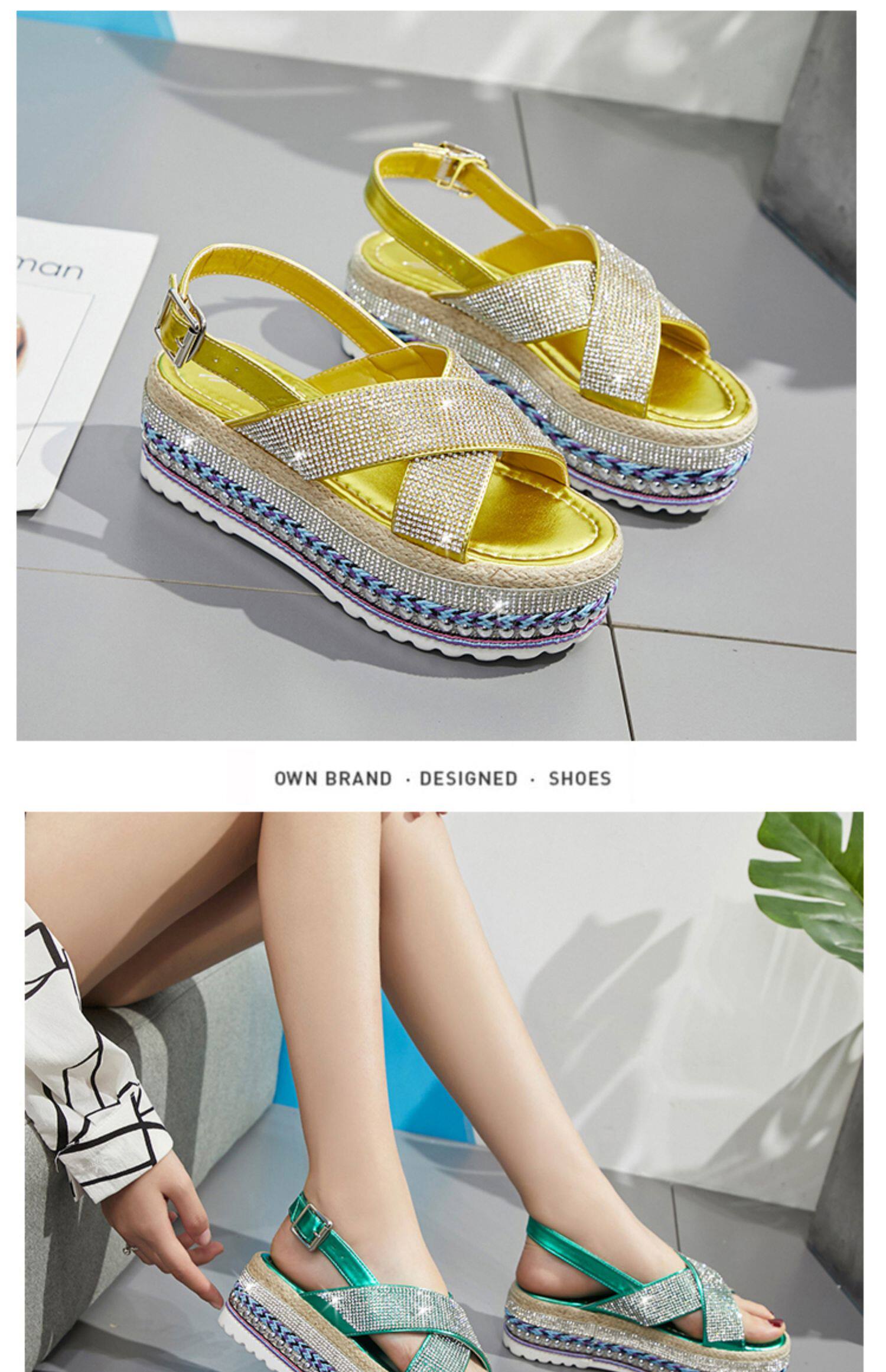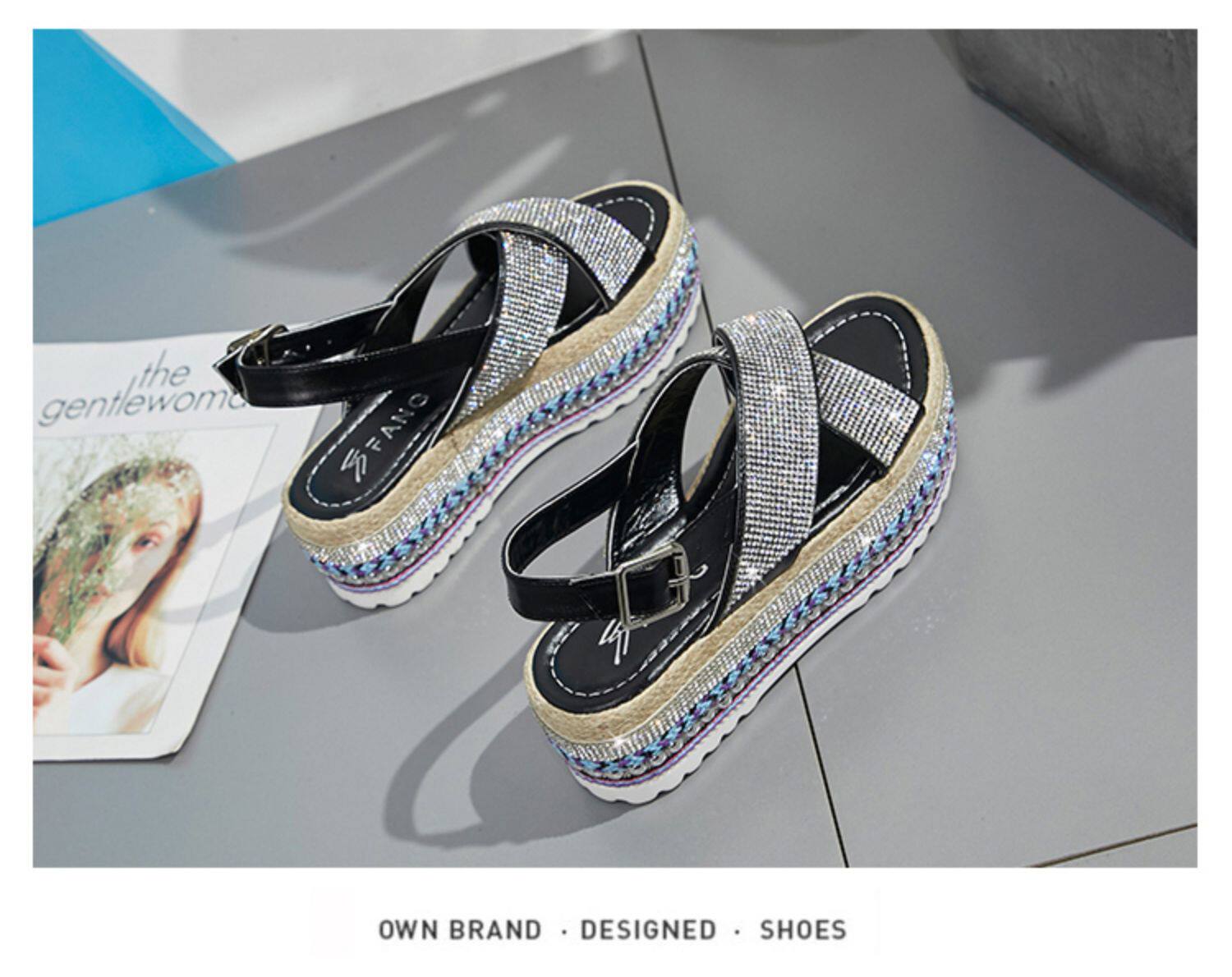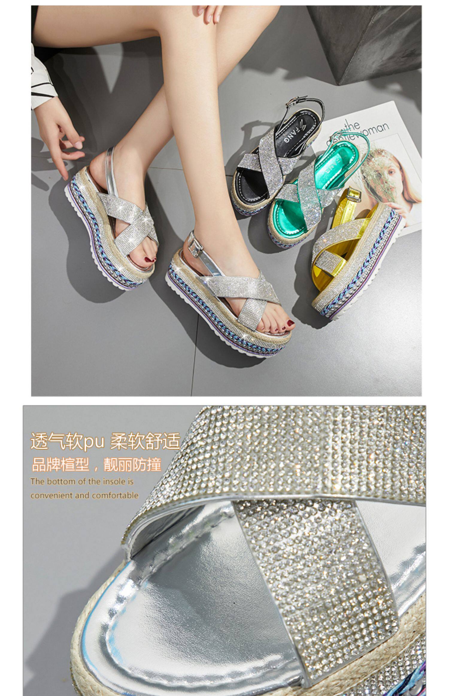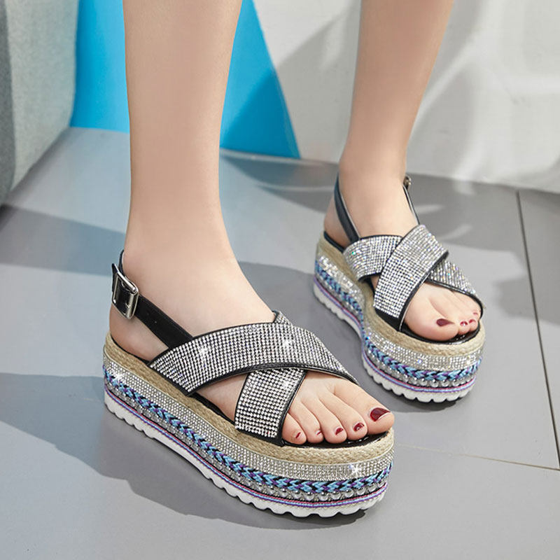 Летние модные сандалии на платформе, обувь, 2020, инкрустировано бриллиантами