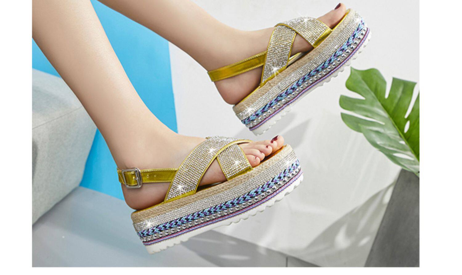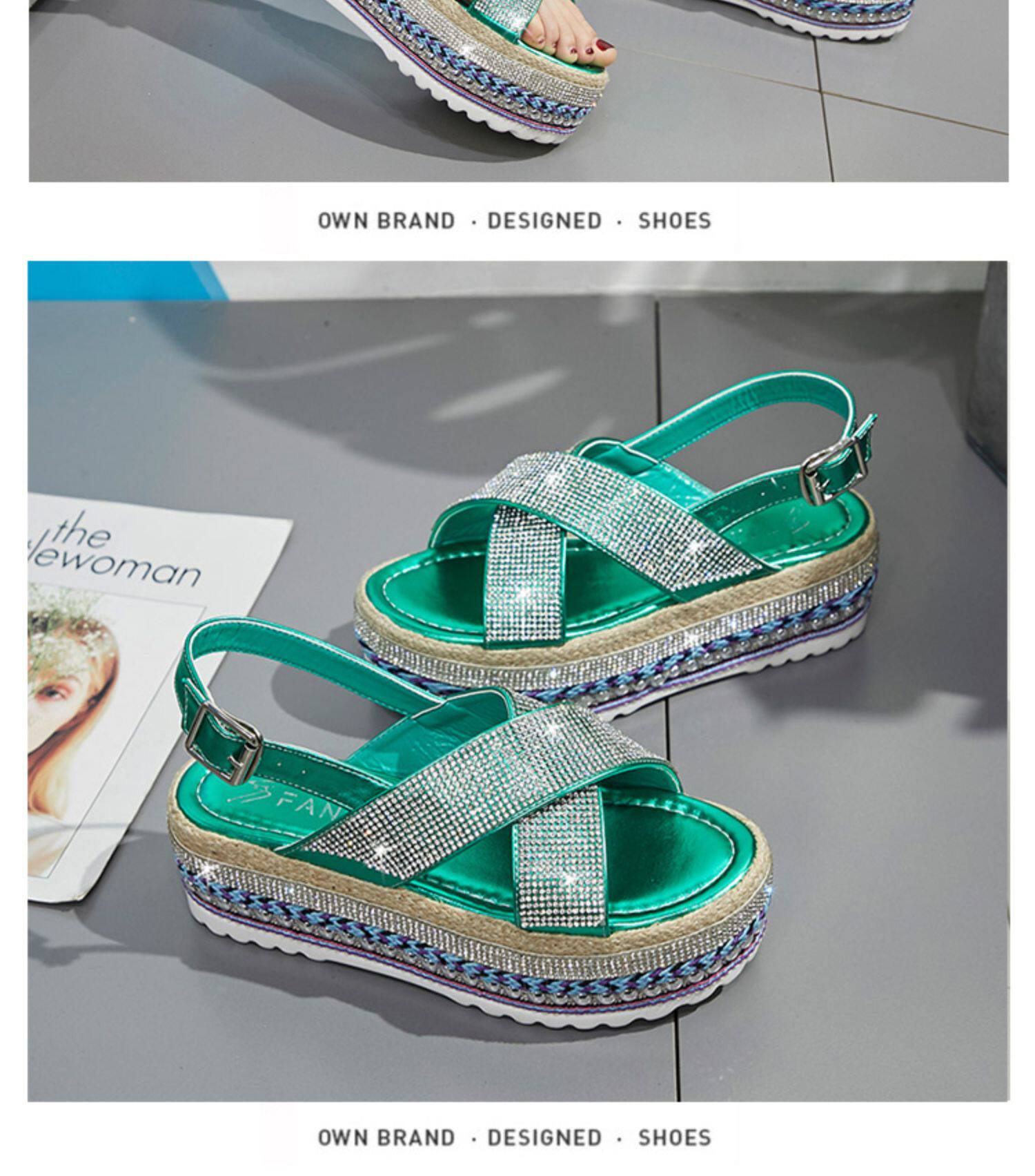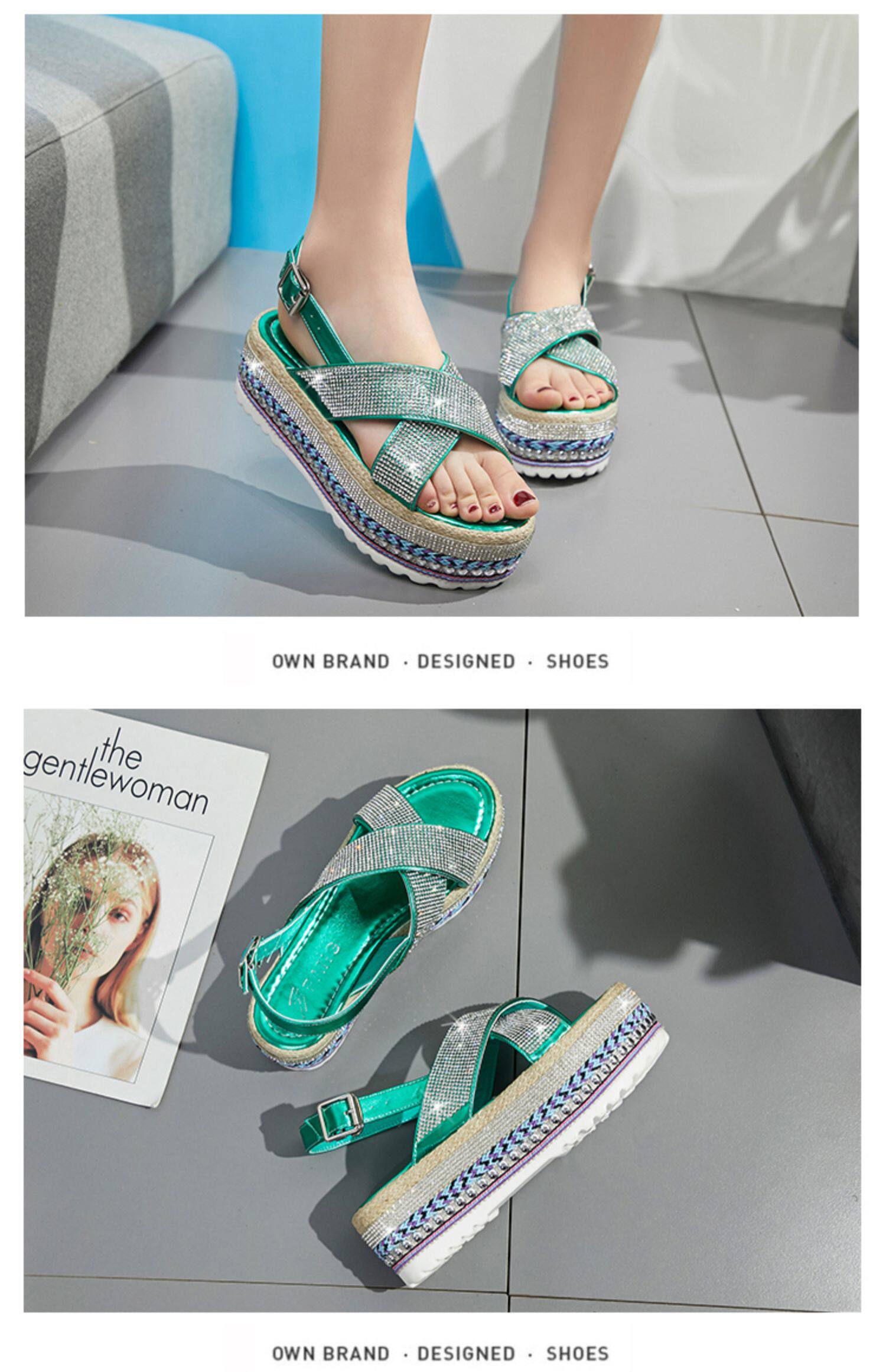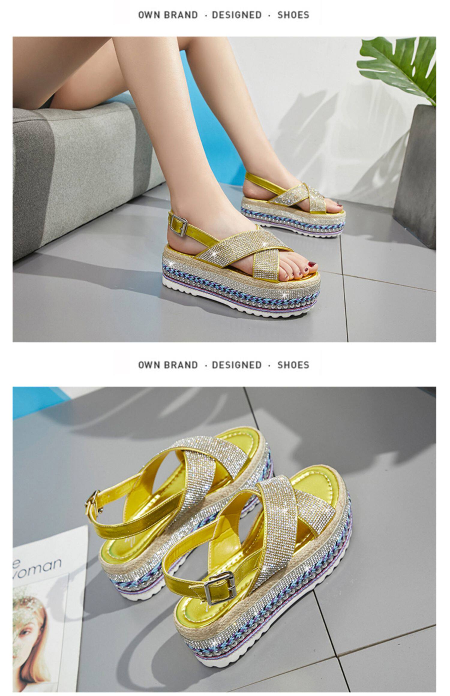 Летние модные сандалии на платформе, обувь, 2020, инкрустировано бриллиантами