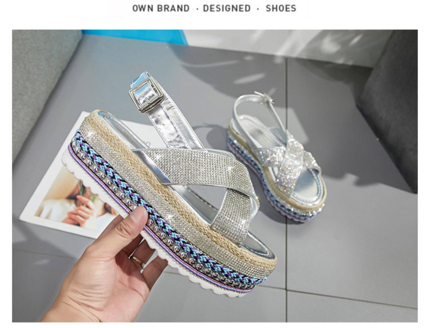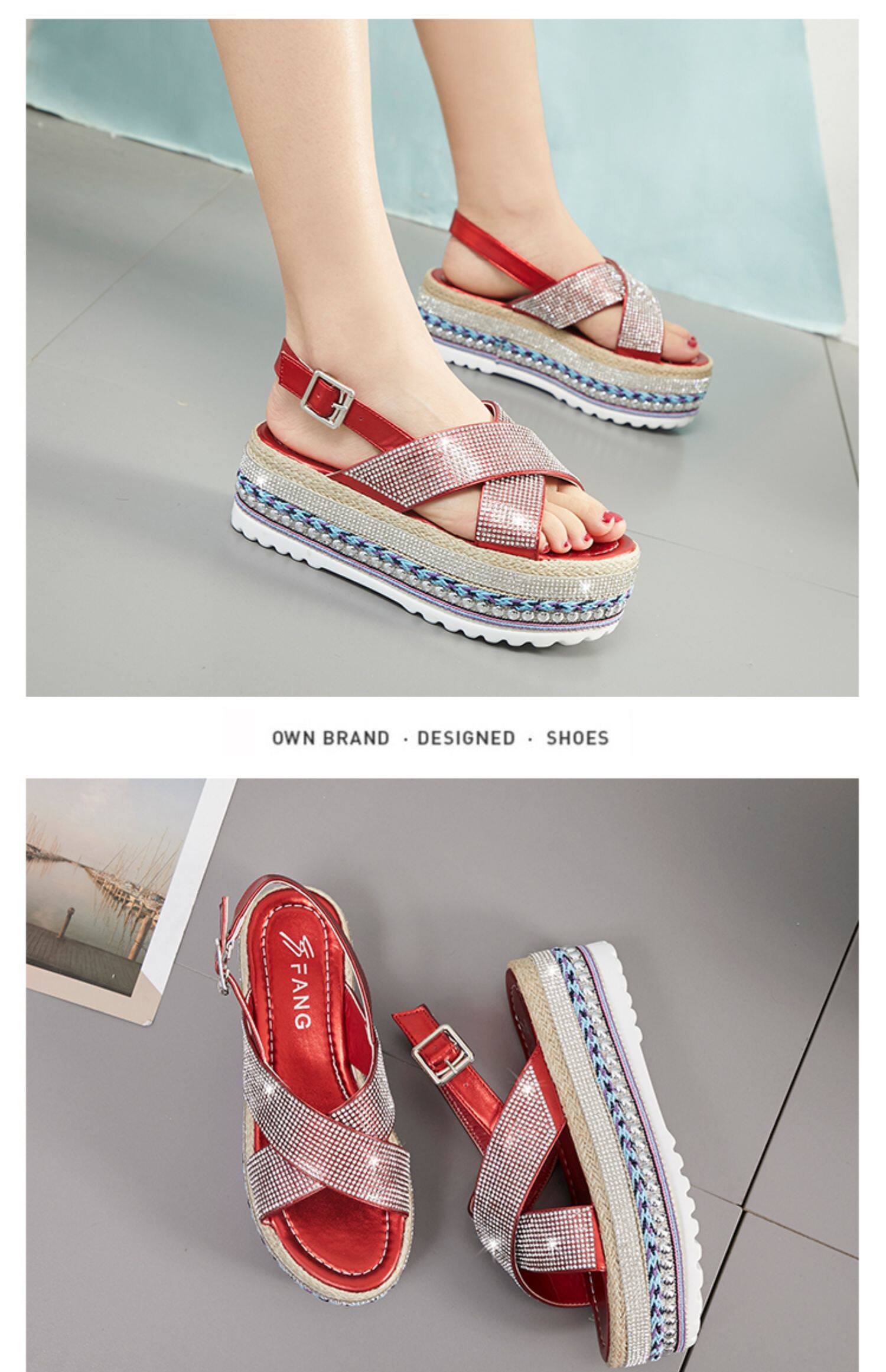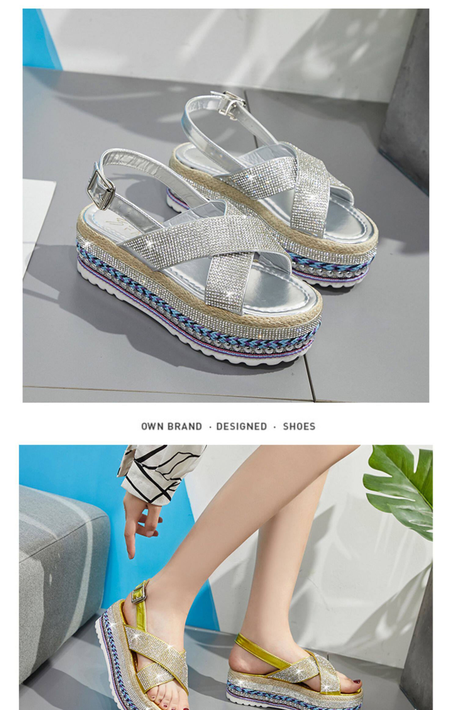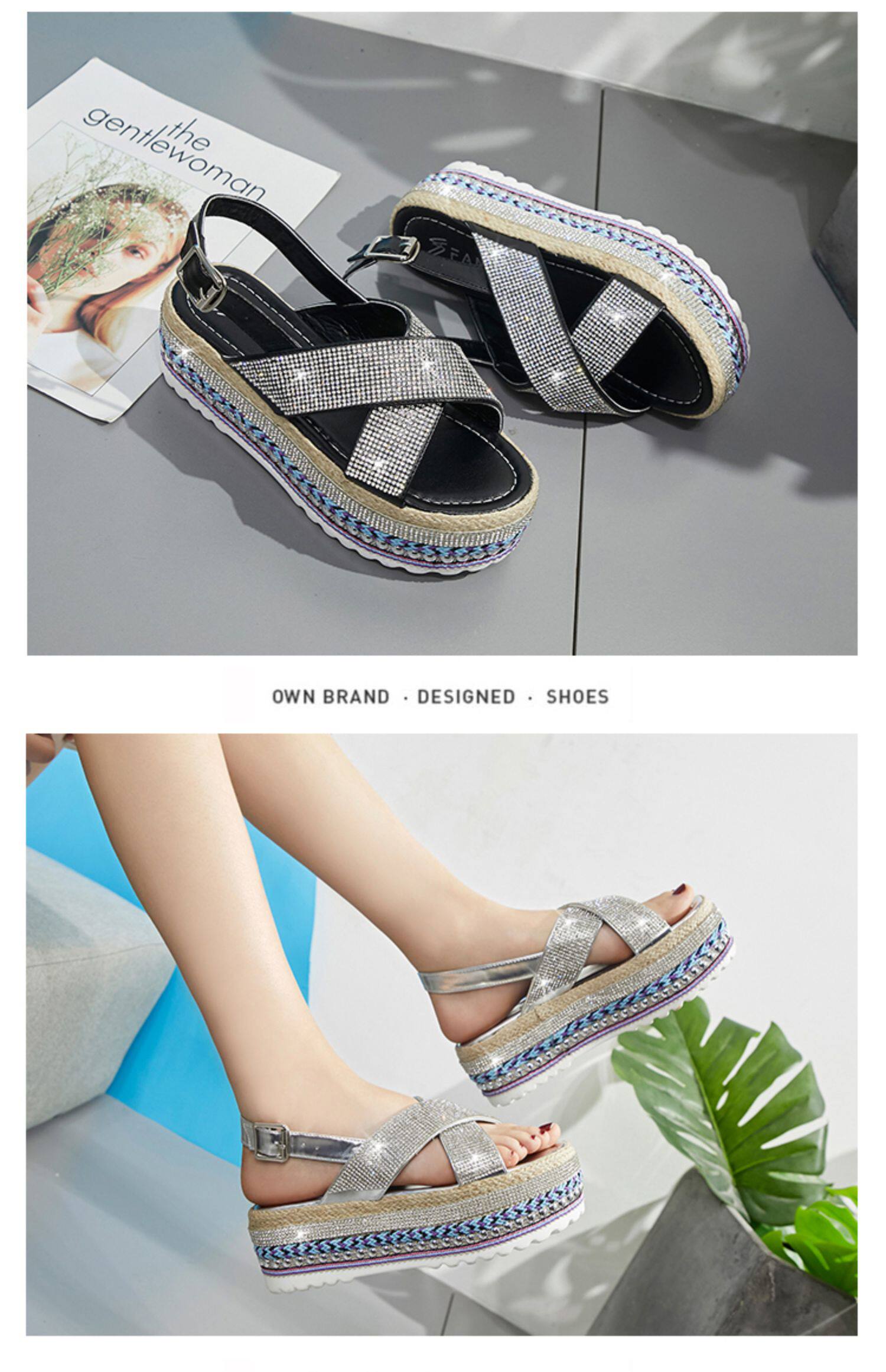Летние модные сандалии на платформе, обувь, 2020, инкрустировано бриллиантами