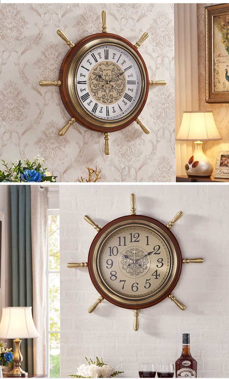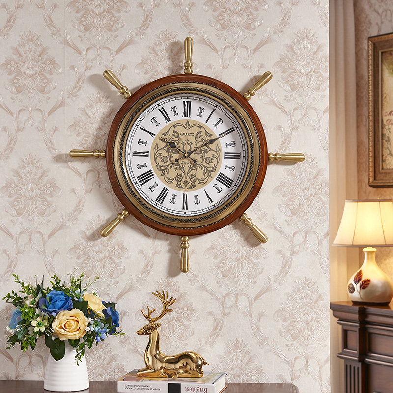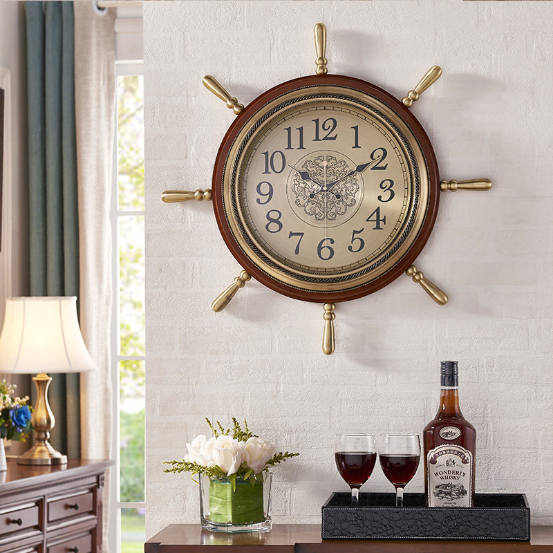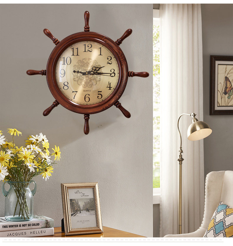 Американские домашние часы сплошные дерево тихий творческий гостиный комната висят часы китайские ретро -украшения персонализированные настенные часы лодки руля
