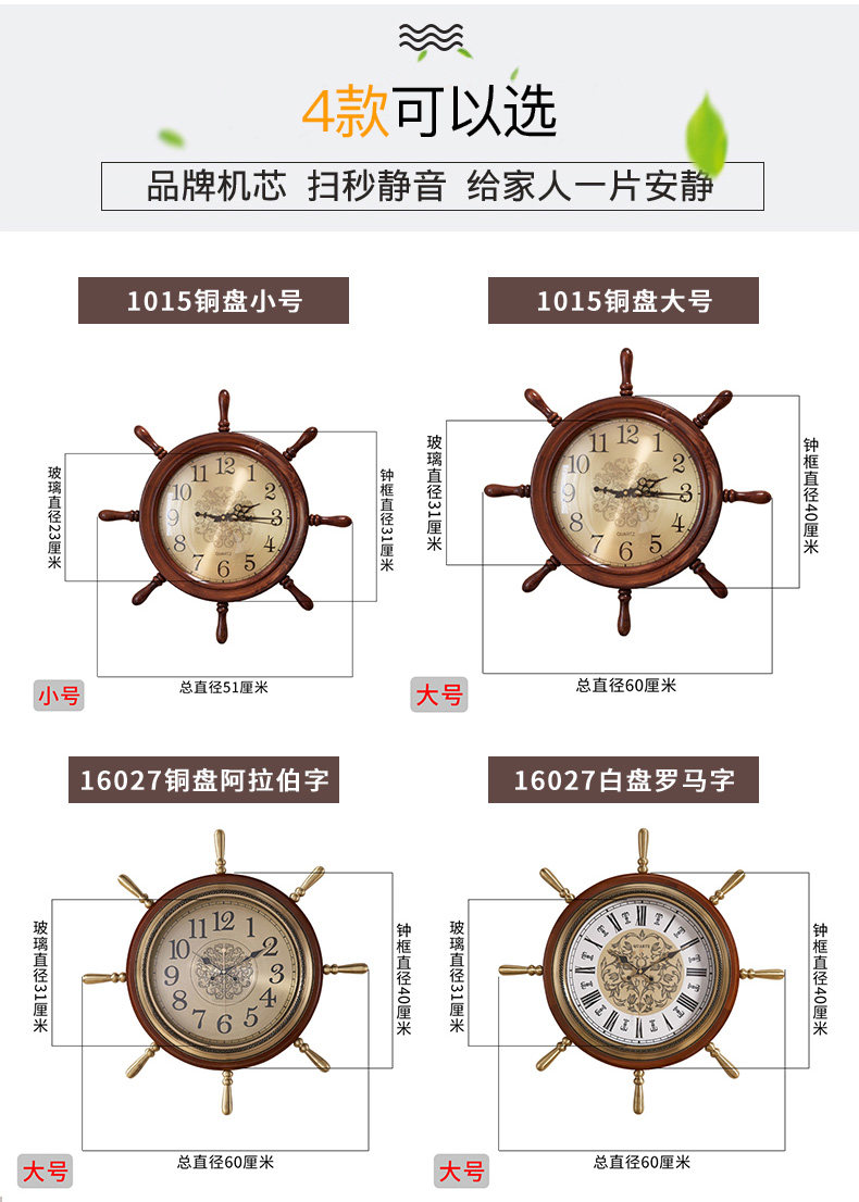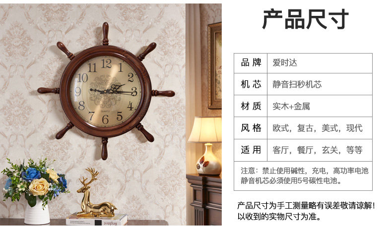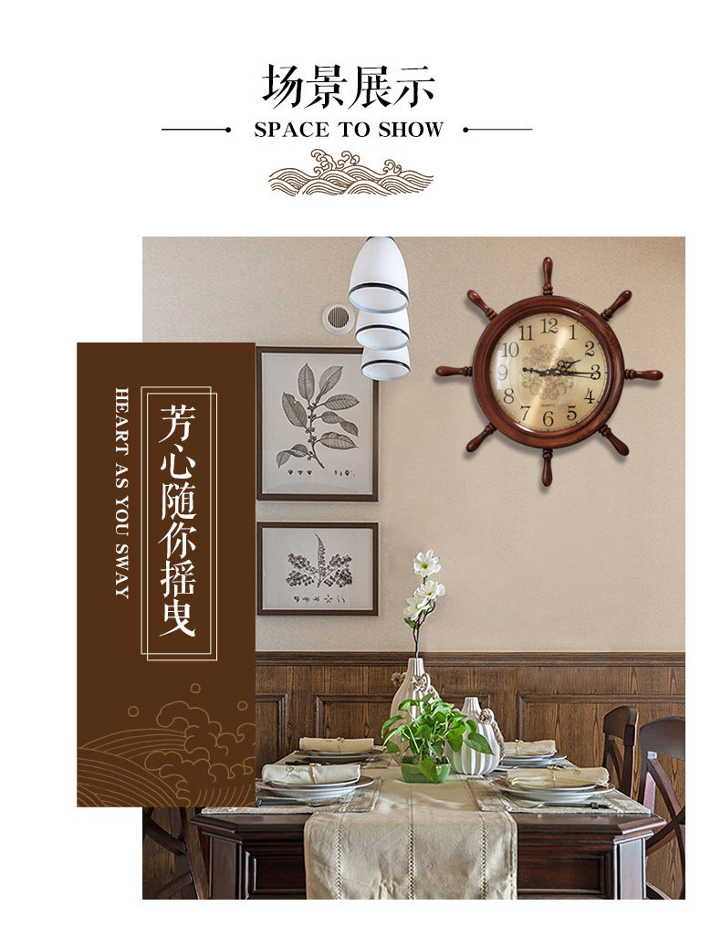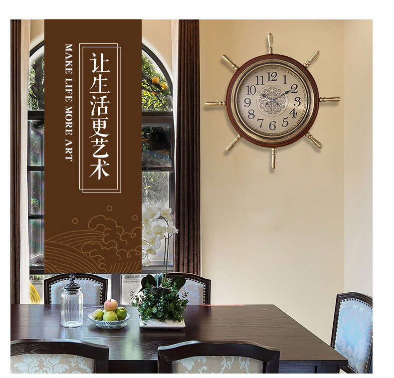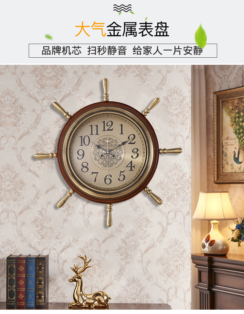 Американские домашние часы сплошные дерево тихий творческий гостиный комната висят часы китайские ретро -украшения персонализированные настенные часы лодки руля