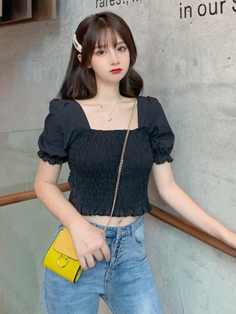 Новый корейский стиль летом, модный и стройный и короткий нежный квадратный воротник, модная шифоновая рубашка женская модная