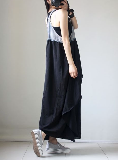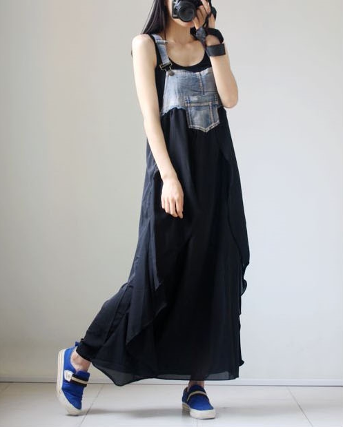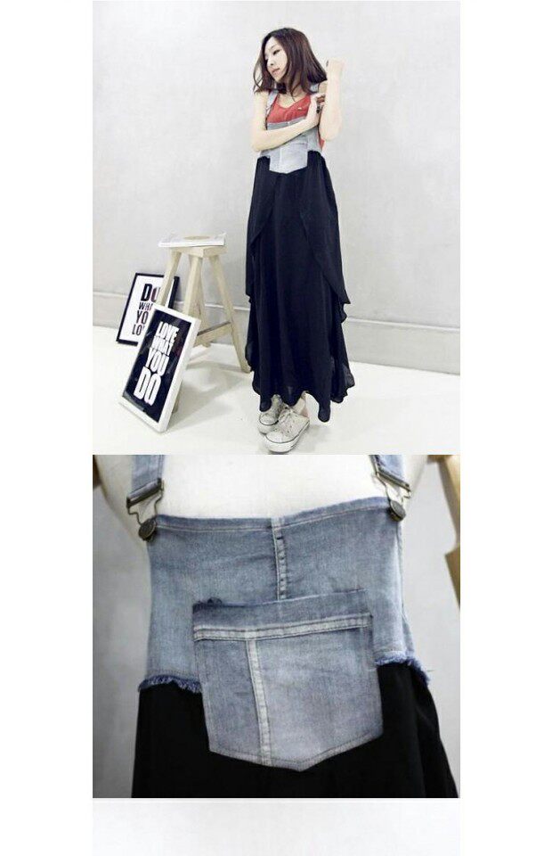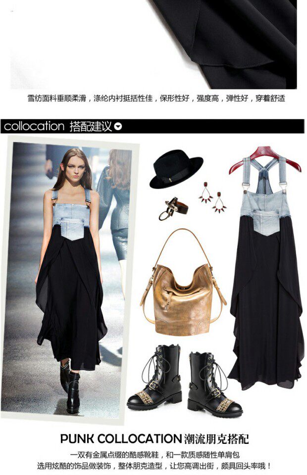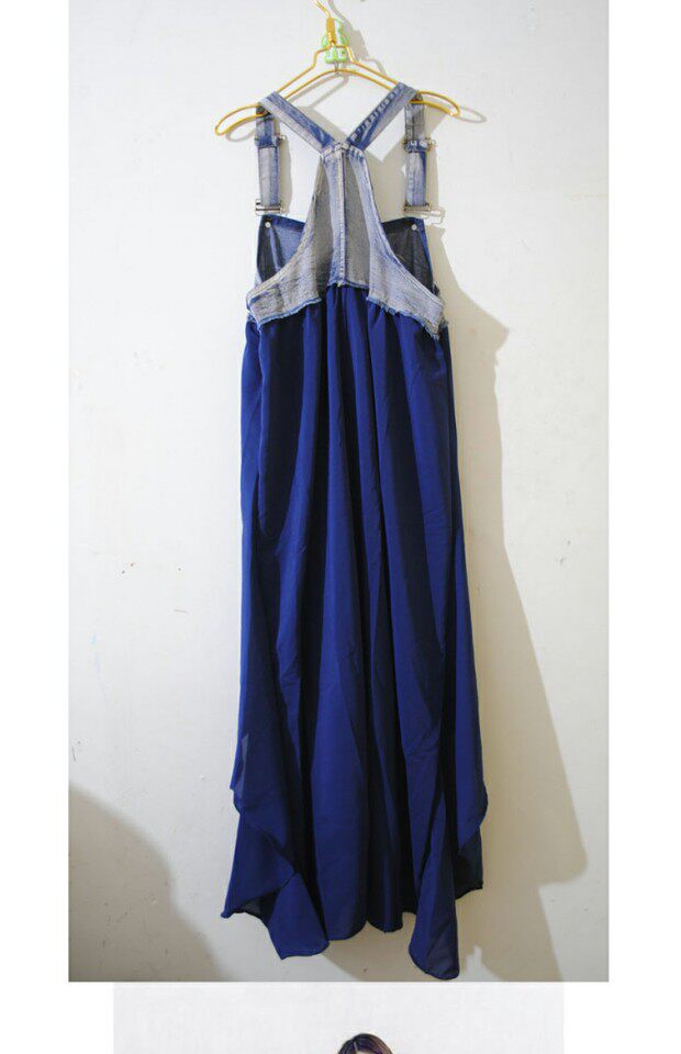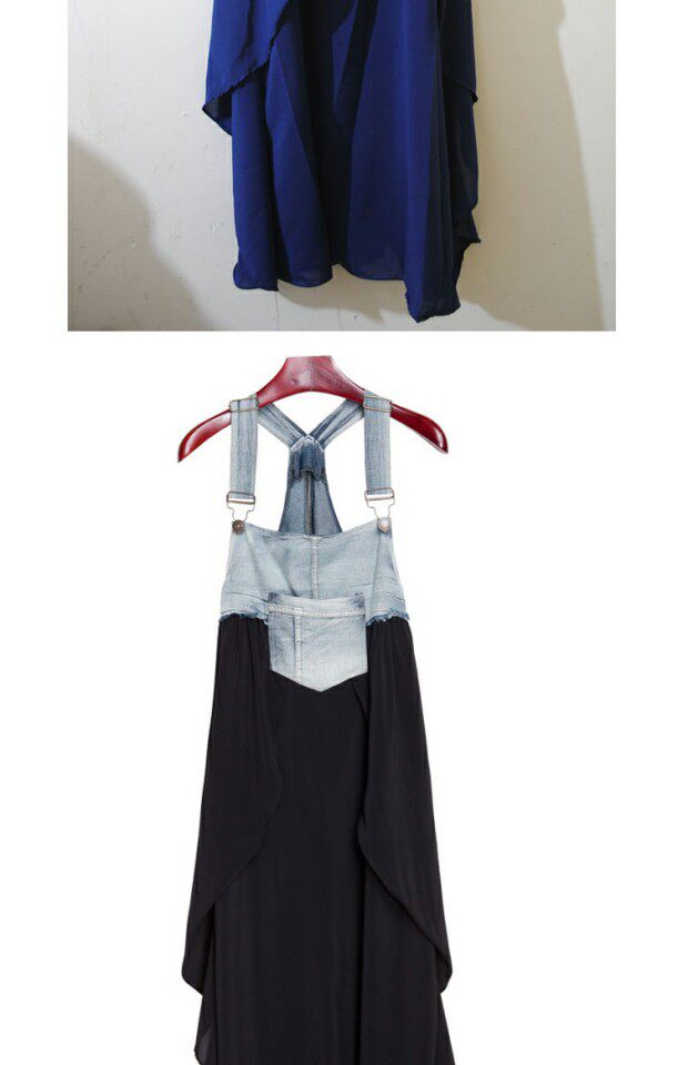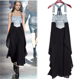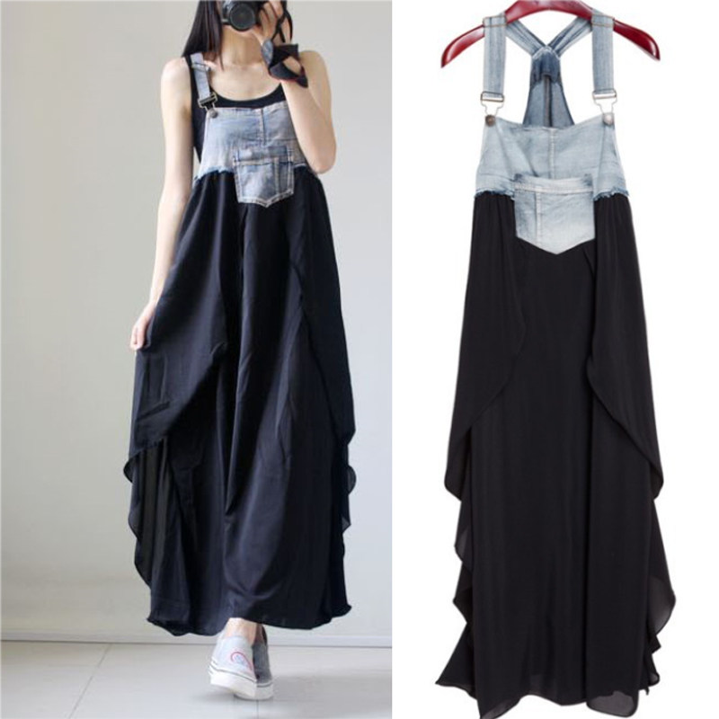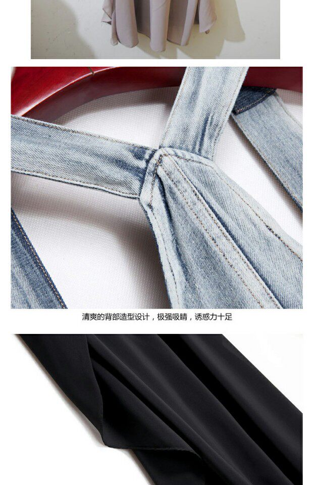 Джинсовое летнее платье без рукавов, юбка, шифоновые подтяжки, европейский стиль, большой размер, в западном стиле