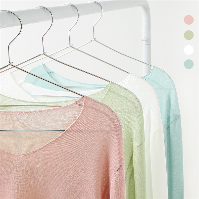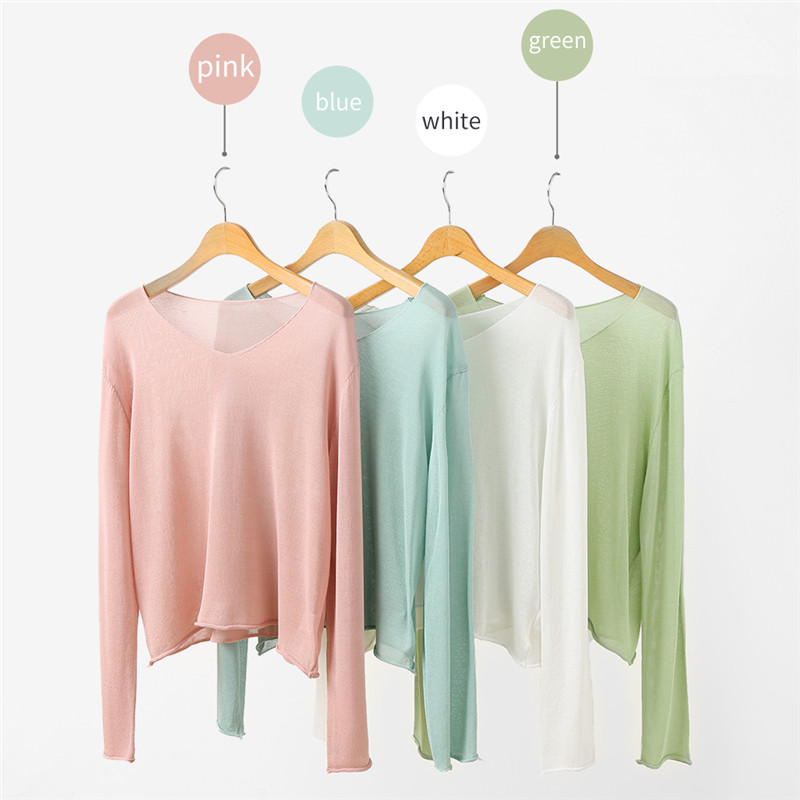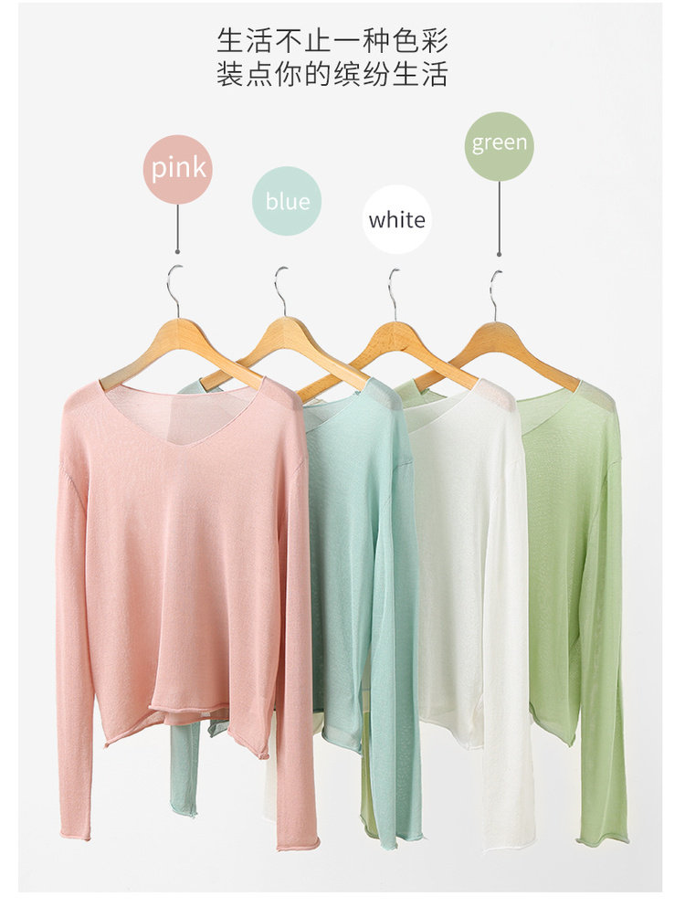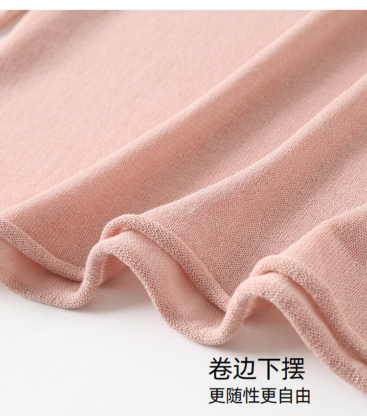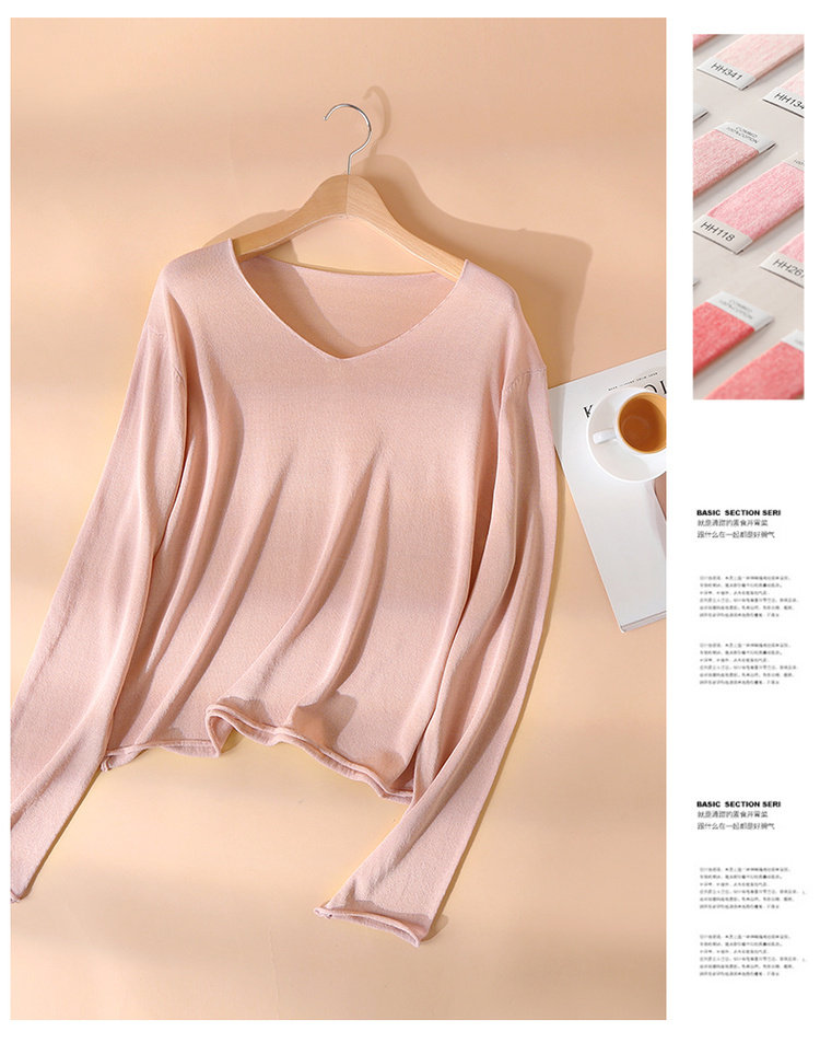 艾米恋 Тонкий трикотажный летний свитер, базовый приятный телу розовый лонгслив, V-образный вырез, оверсайз