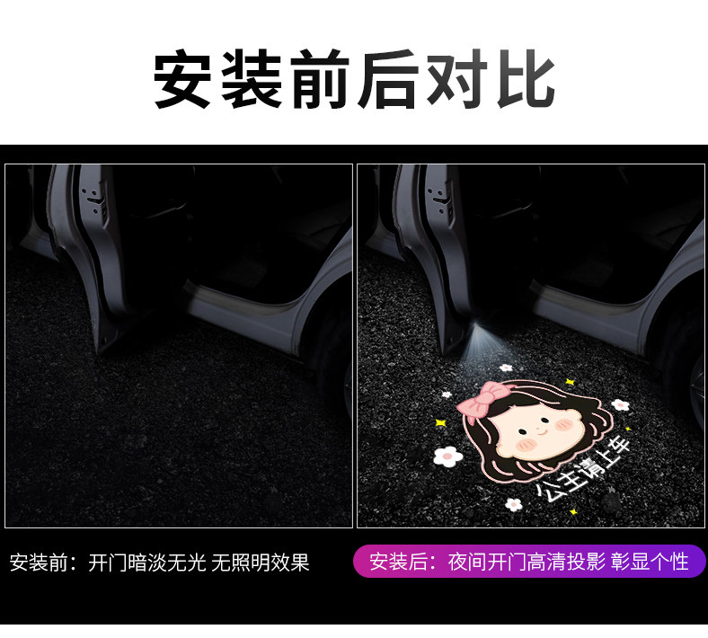Шесть лет -магазины более 20 цветов, бесплатные проводки открытые дверные проекционные фотографии, дверные лампы, индукция атмосферы автомобиля, добро пожаловать на декоративные припасы