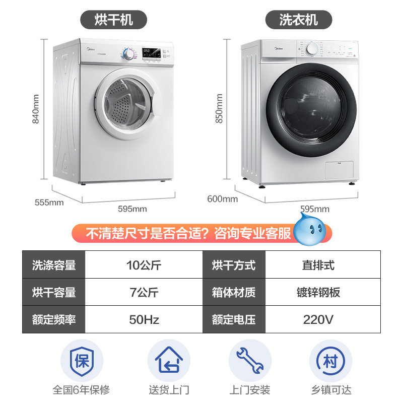 Midea для промывки и выпечки набор 10 кг комбинация сушилки для инверторов MG100V11D+MH70VZ30