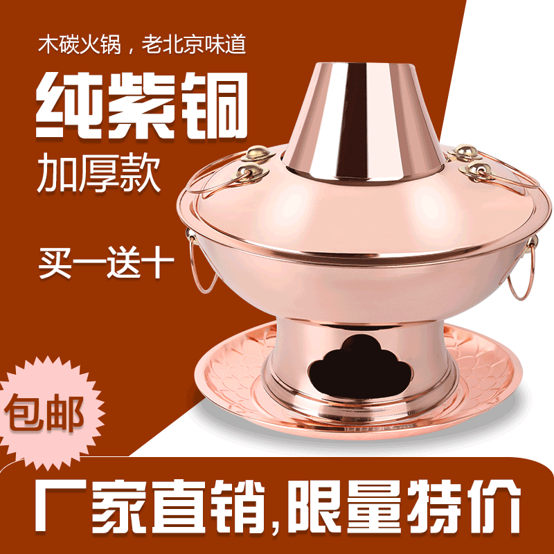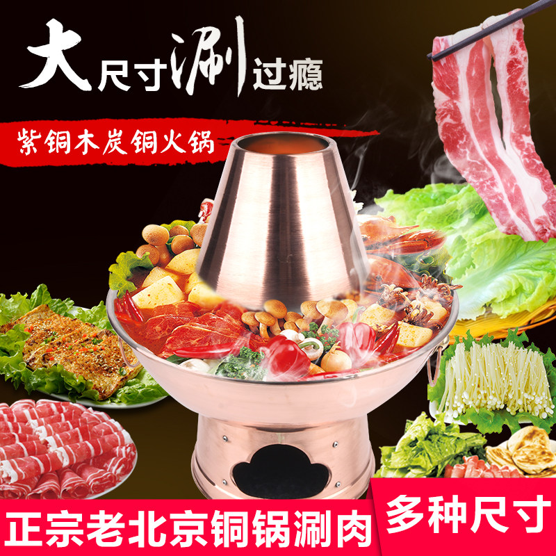 Большой медный горшок интегрированный медный горячий горшок с углеродным огнем, горячий горшок, шабу -шабу, старый пекин