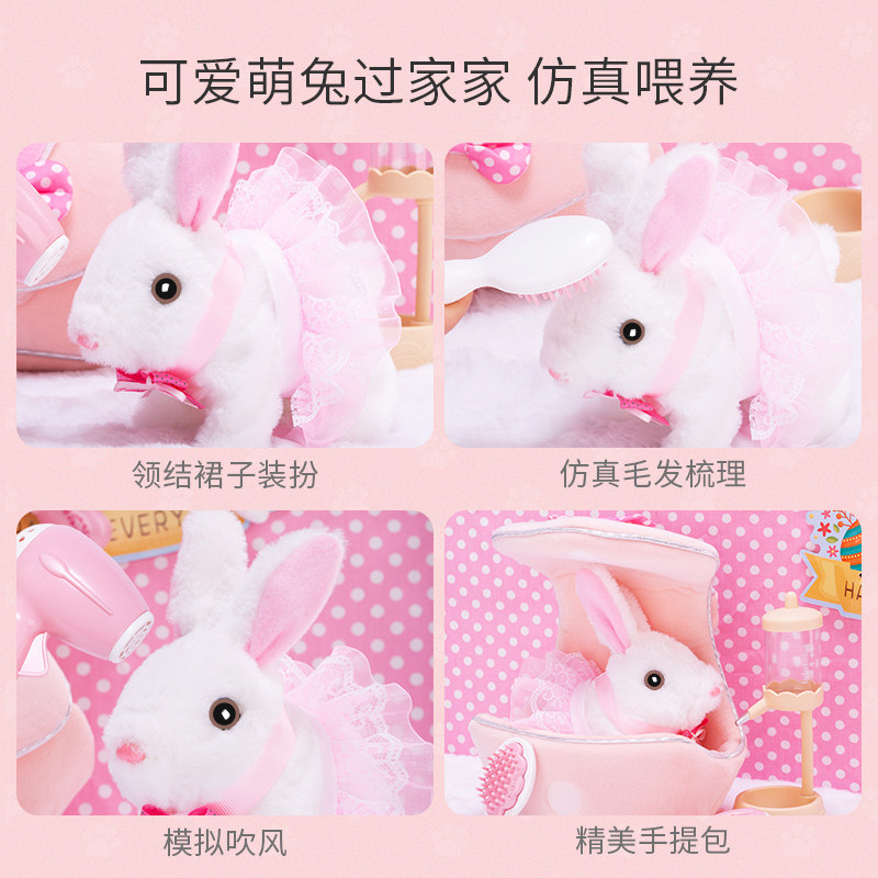 Плюшевый кролик, электрическая милая реалистичная игрушка, кукла, комплект, подарочная коробка, белый кролик