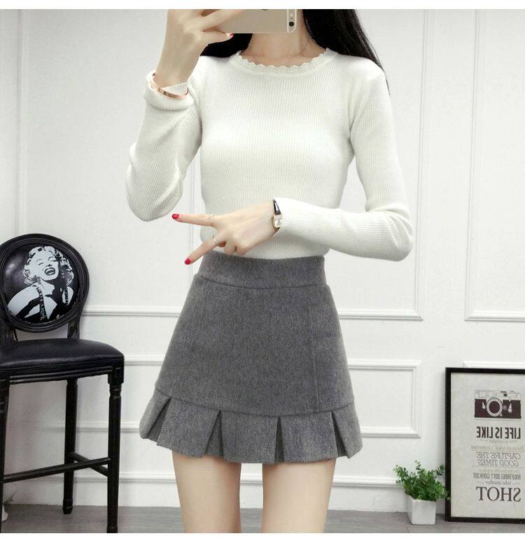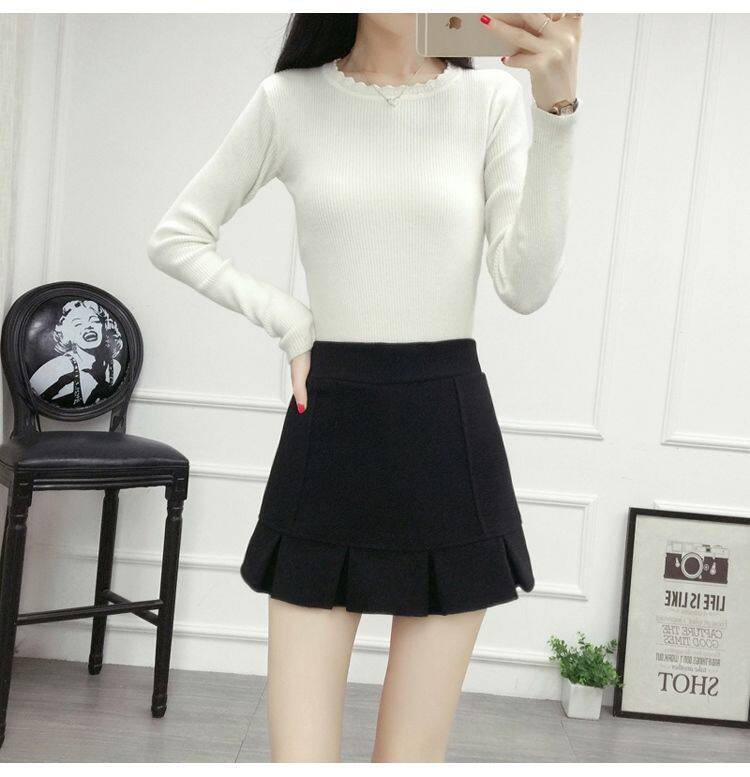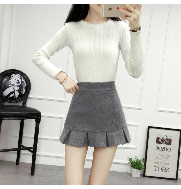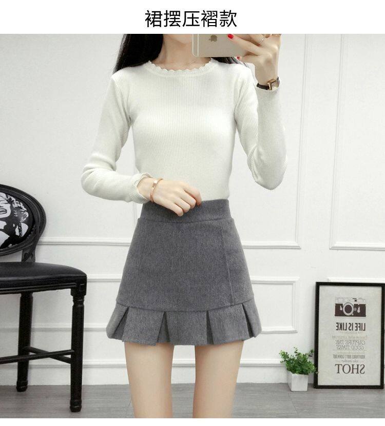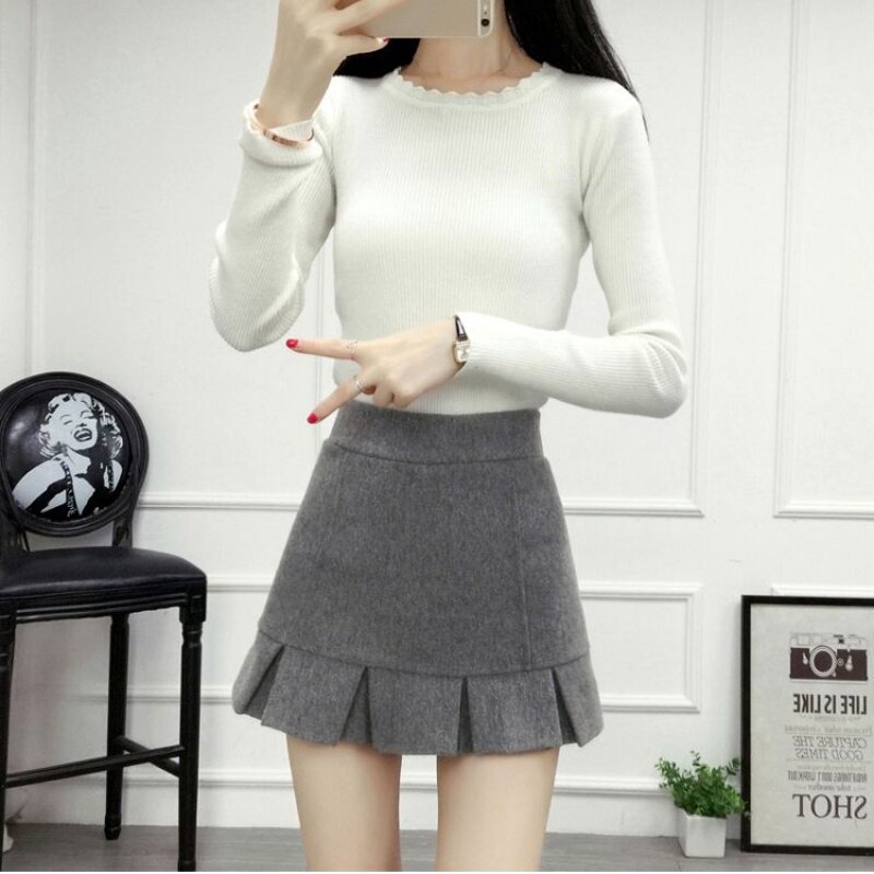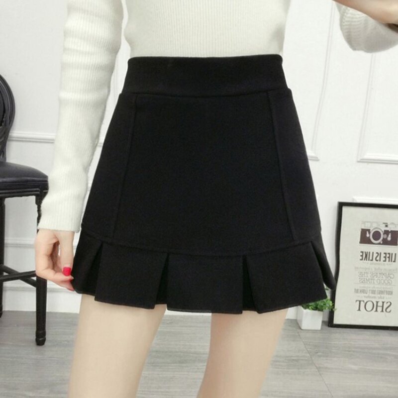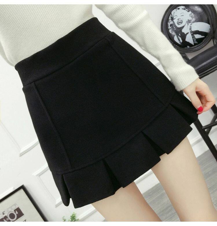 Демисезонная шерстяная юбка, мини-юбка, шорты, 2020, увеличенная толщина, высокая талия, А-силуэт