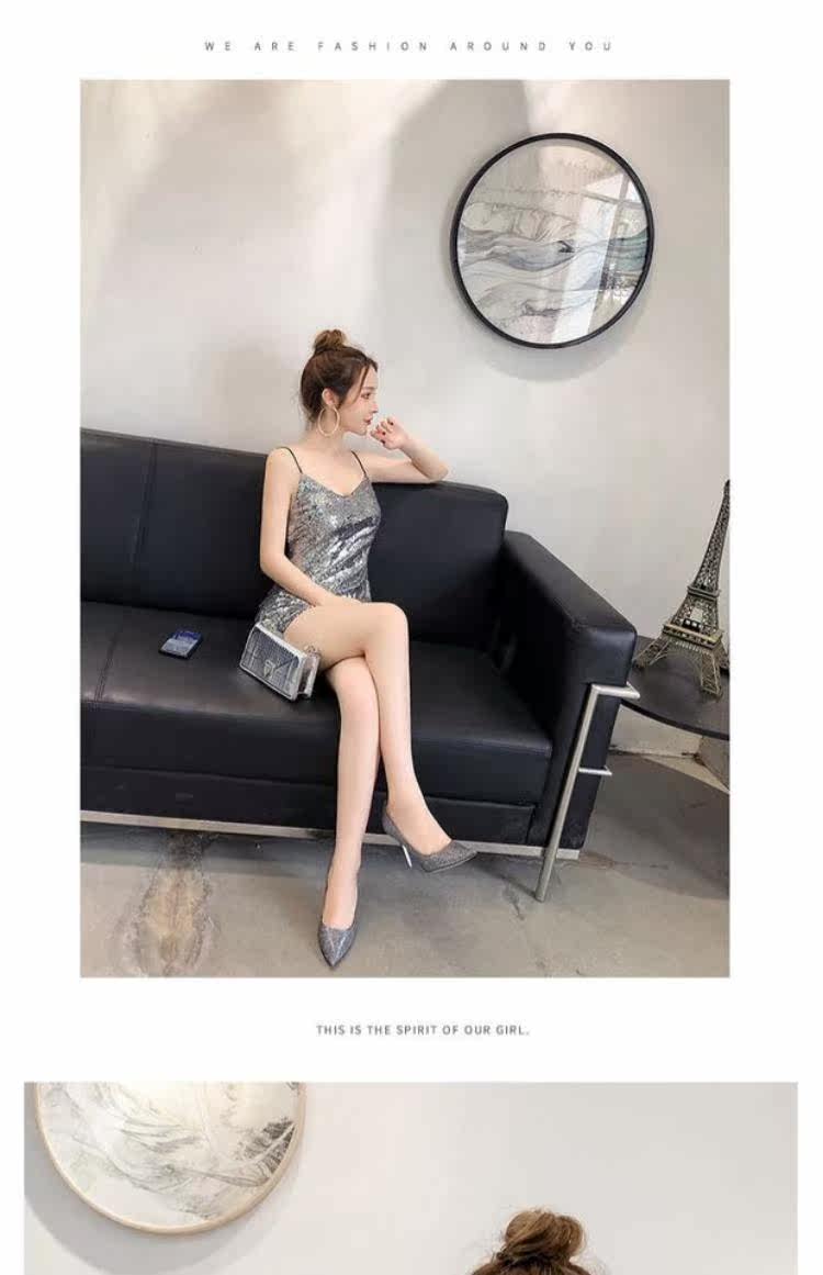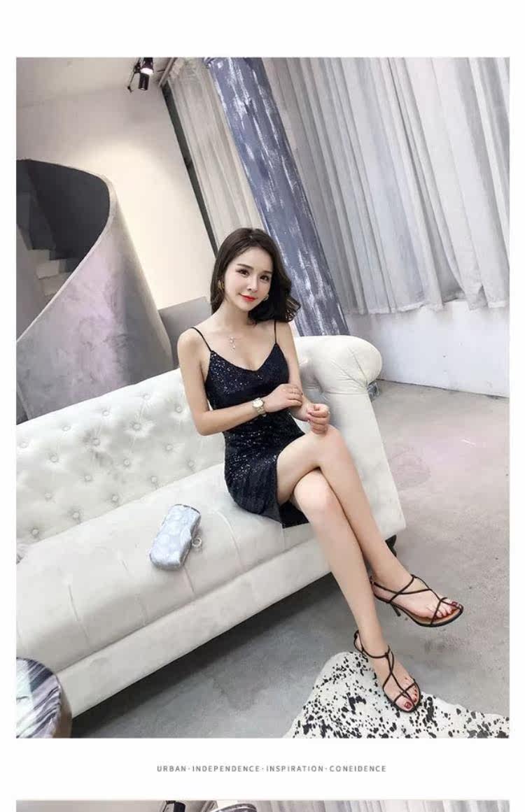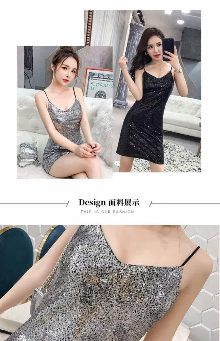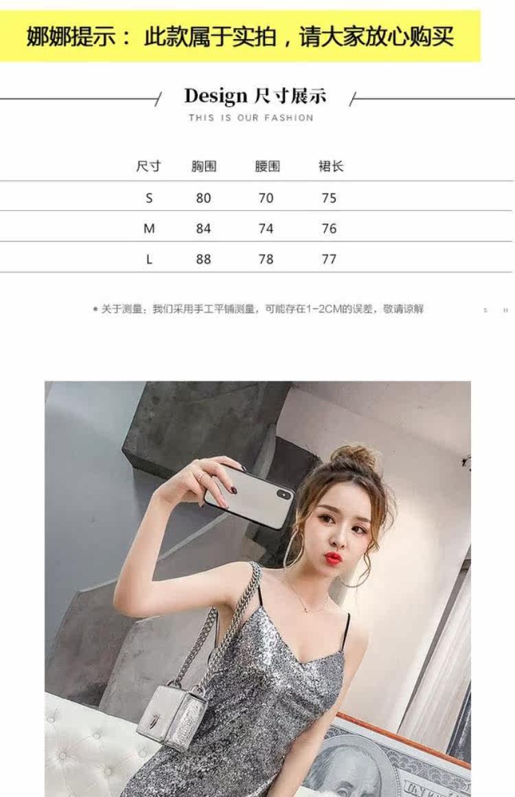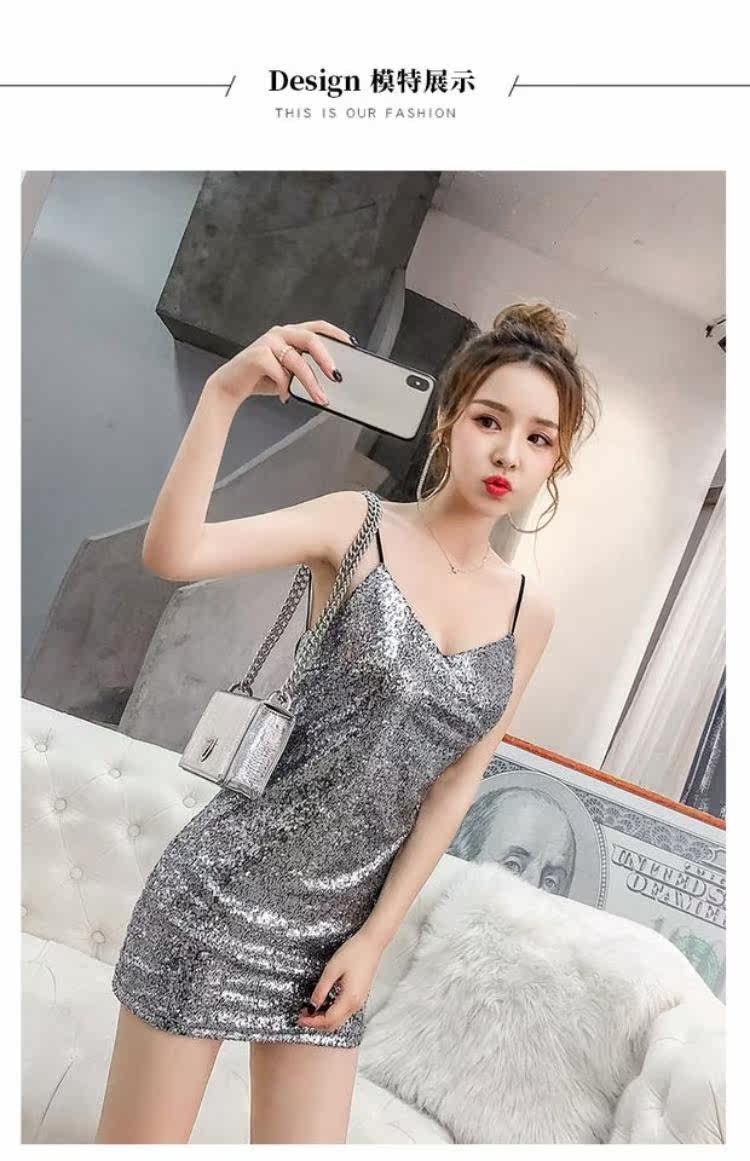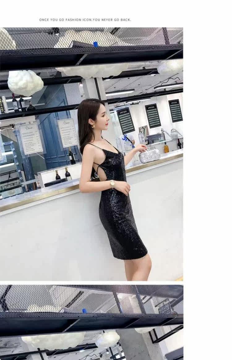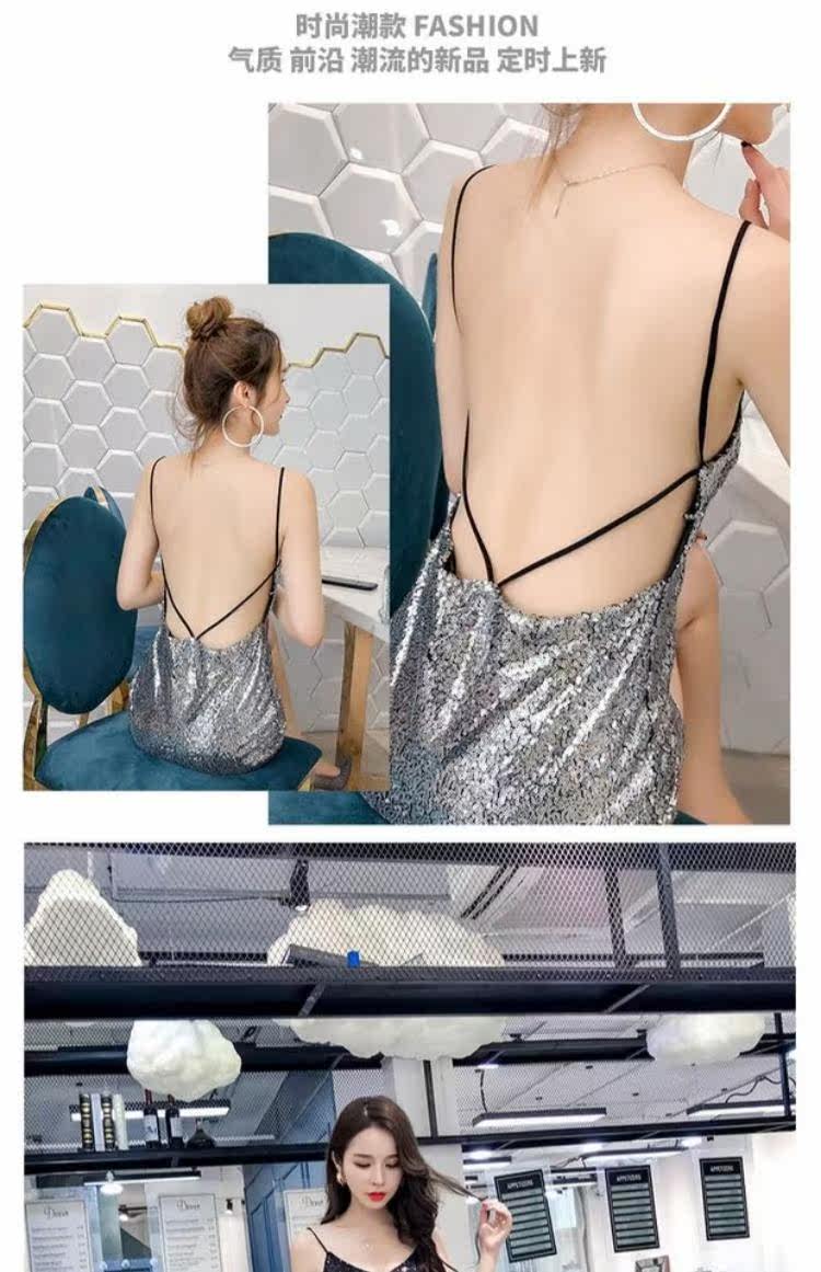 Летняя одежда, блестящее платье, 2020, в корейском стиле, V-образный вырез, с открытой спиной, с лямками, с акцентом на бедрах
