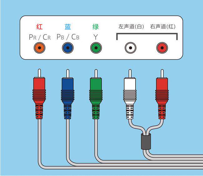 Специальная линейка разности Wii проста. Серый квадратный интерфейс с правой стороны используется для подключения хоста Wii. Слева 5 наборов интерфейса лотоса коаксиального кабеля.Белый интерфейс обеспечивает аудиоканальный выход левого каната, красный интерфейс обеспечивает аудиоканал правого канала, а три набора красных и синих интерфейсов обеспечивают выход компонентов RGB. Цветное кольцо выше указывает цветовой канал выходного выхода.