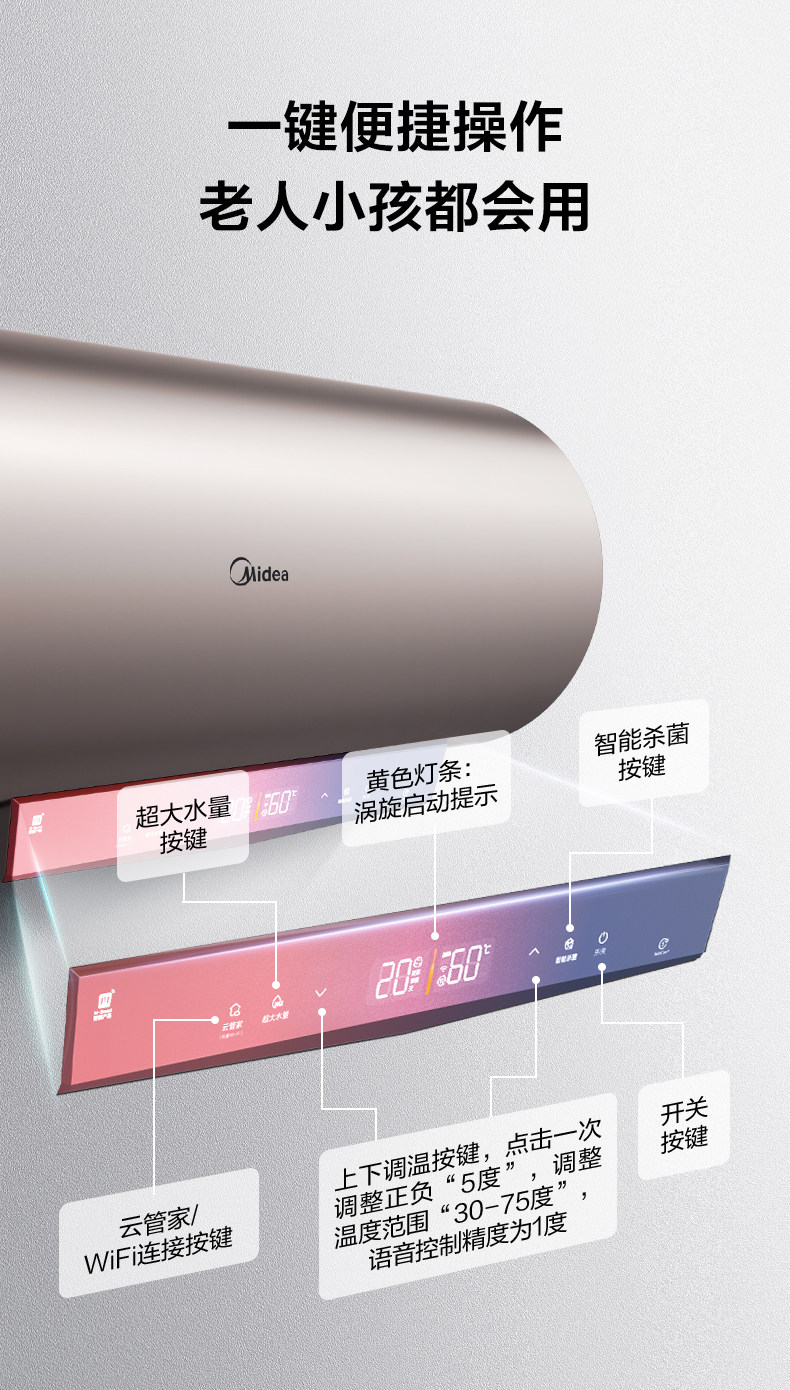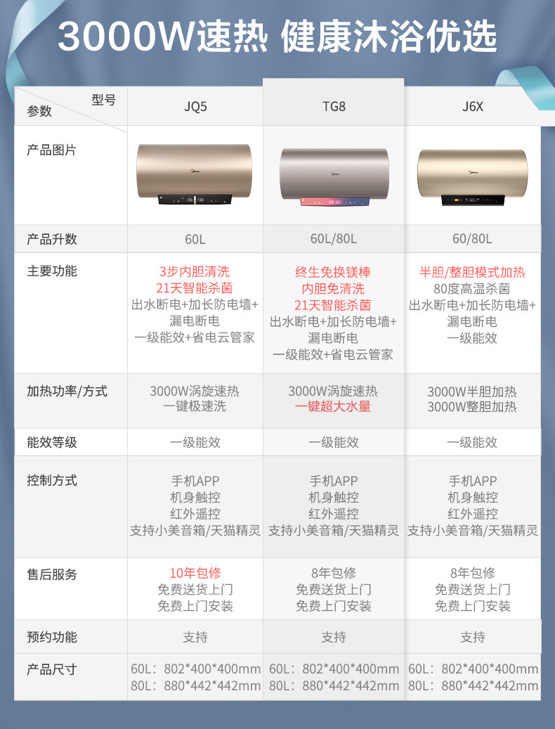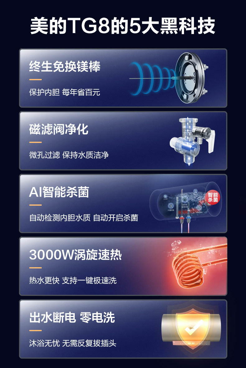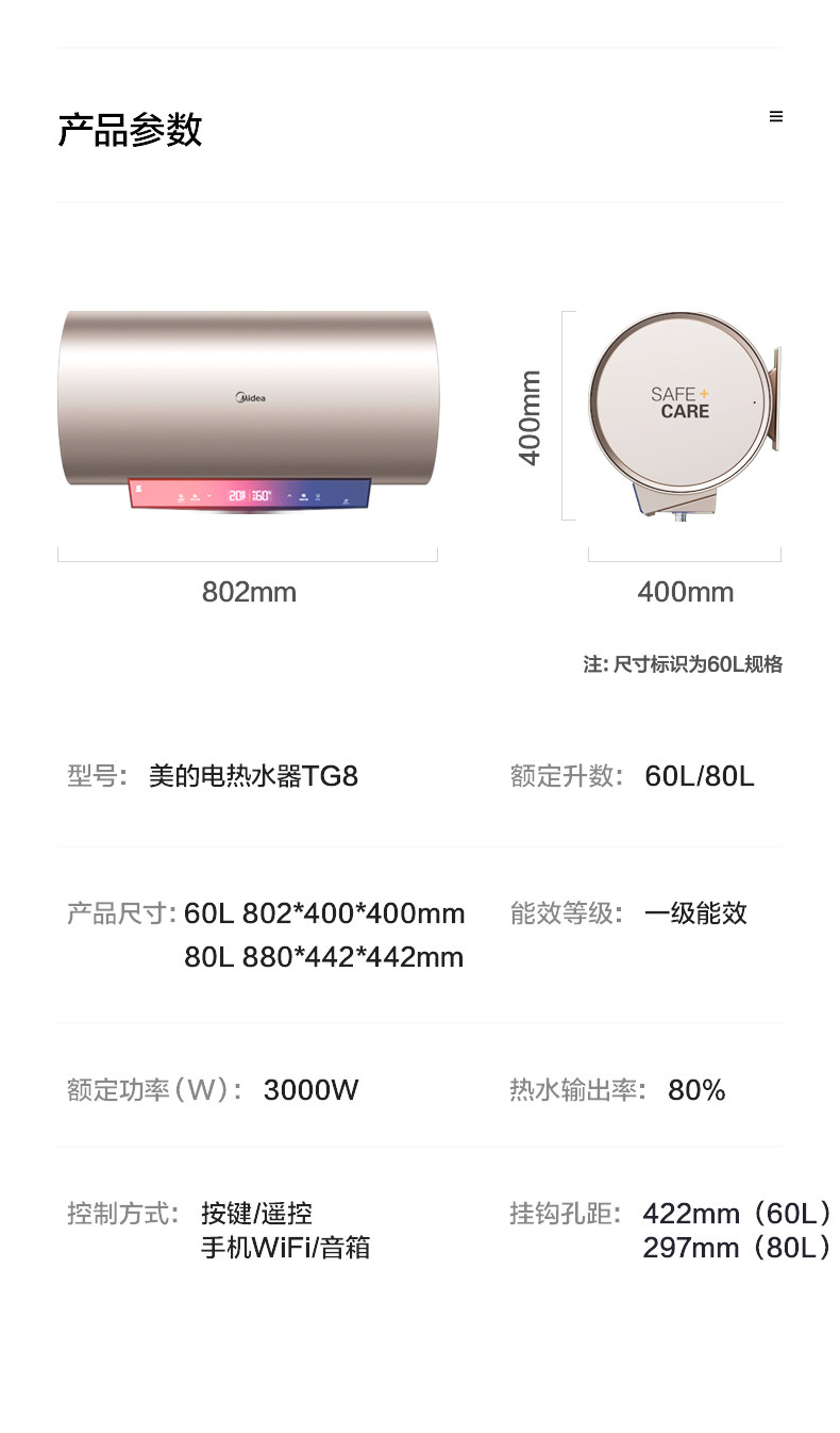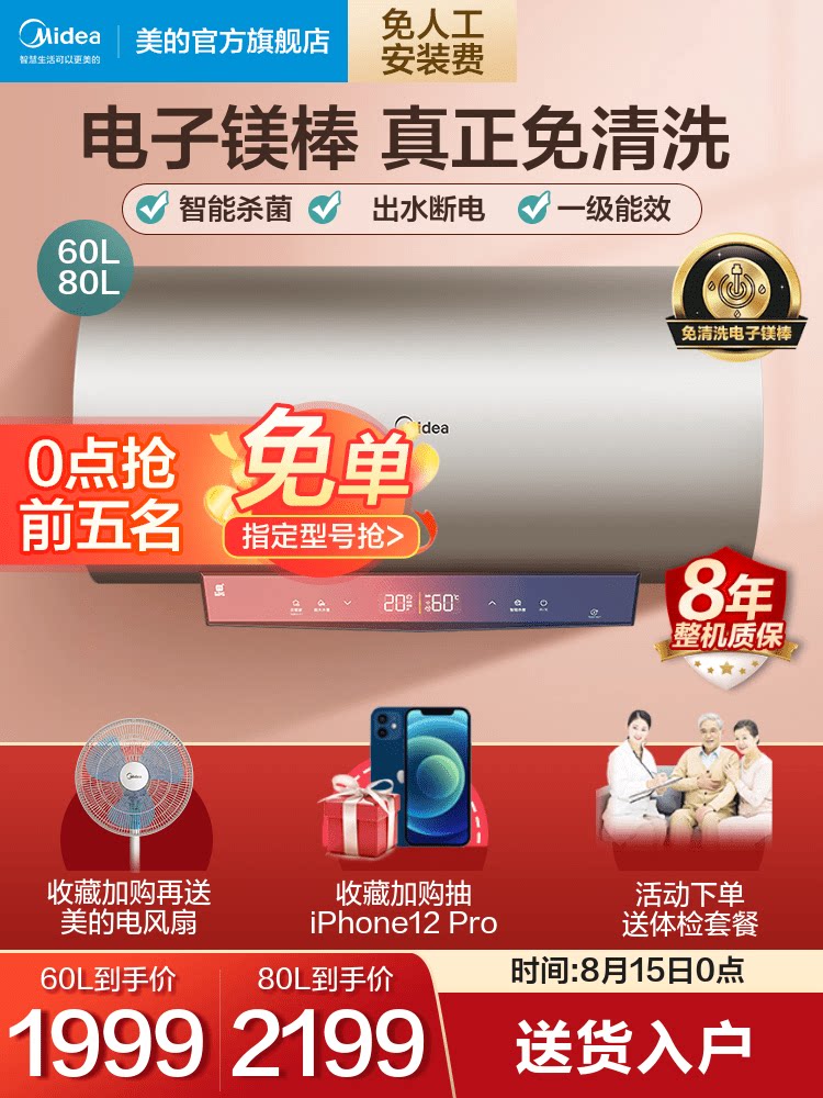 Midea 60L -литровый TG8 Электрический водонагреватель электрический домохозяйный хранение