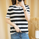 Летняя трикотажная базовая приятная телу модная летняя одежда с круглым воротником для отдыха, 2020, из хлопка и льна, короткий рукав, оверсайз