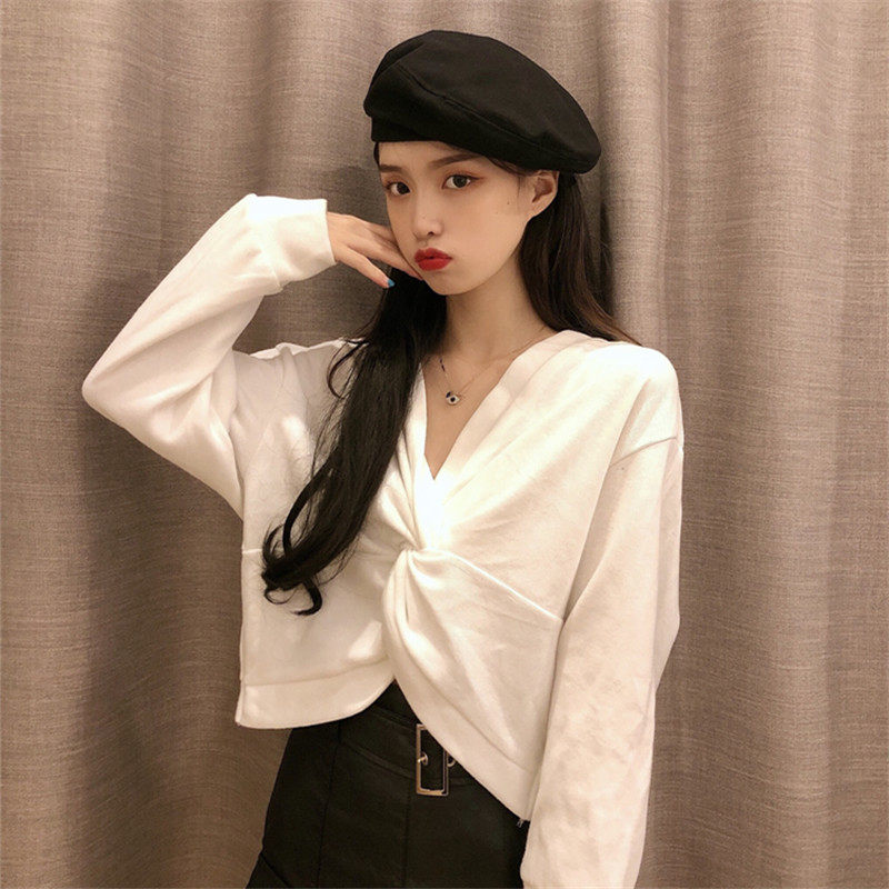 Летняя модная летняя одежда, дизайнерский свитшот, 2020, в корейском стиле, свободный крой, тренд сезона, V-образный вырез
