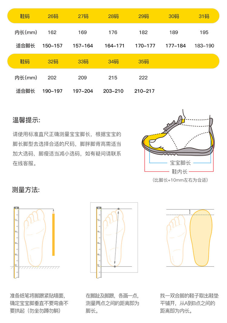 | Размер обуви: | 26 ярдов/внутри 16,2 см, 27 ярдов/внутренняя длина 16,9 см., 28 ярдов/внутри 17,6 см, 29 ярдов/внутри 18,2 см, 30 ярдов/внутри 18,9 см., 31 ярды/внутри 19,5 см, 32 ярда/внутри 20,2 см, 33 ярда/внутри 20,9 см., 34 ярда/внутри 21,5 см, 35 ярдов/внутри 22,2 см |