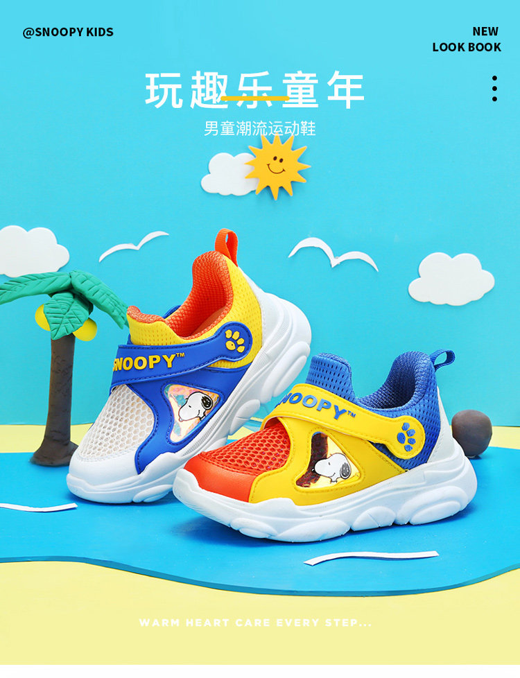 Детская обувь Snoopy, повседневная спортивная обувь с сеткой для мальчиков, новинка 2020 года, летние новые детские нескользящие дышащие кроссовки