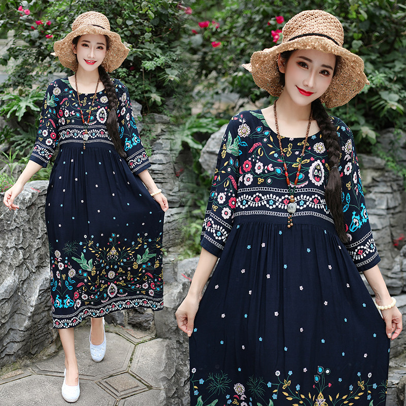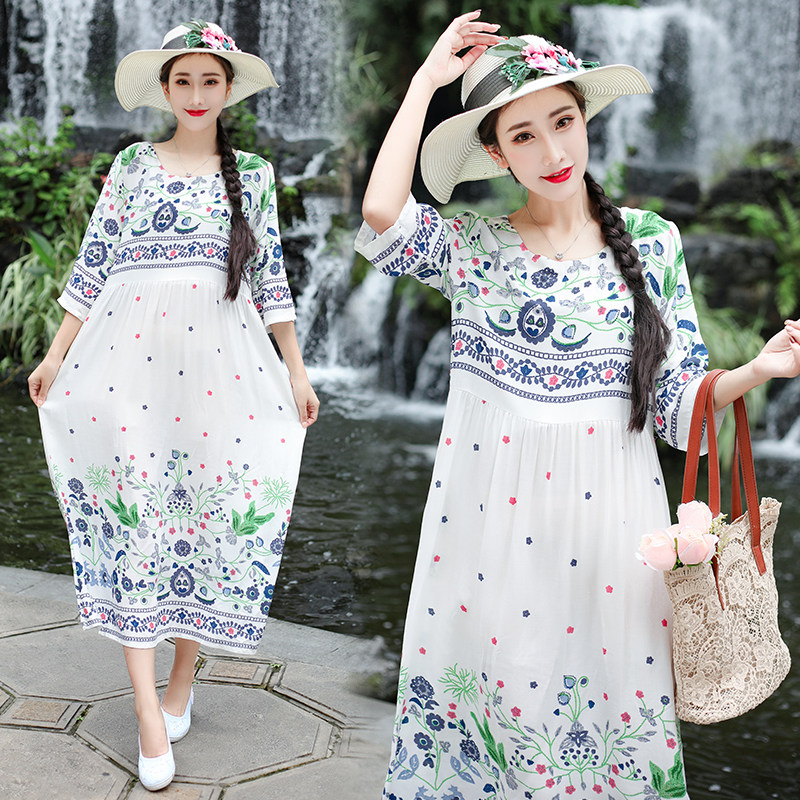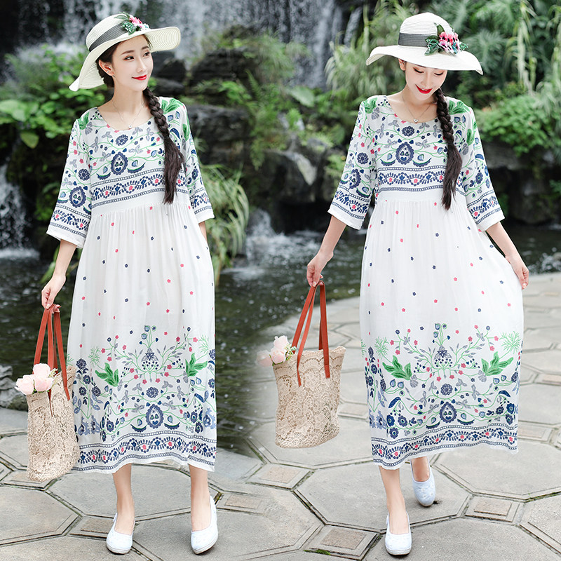 Этническое летнее платье, приталенная длинная юбка для путешествий, этнический стиль, 2020, оверсайз, высокая талия