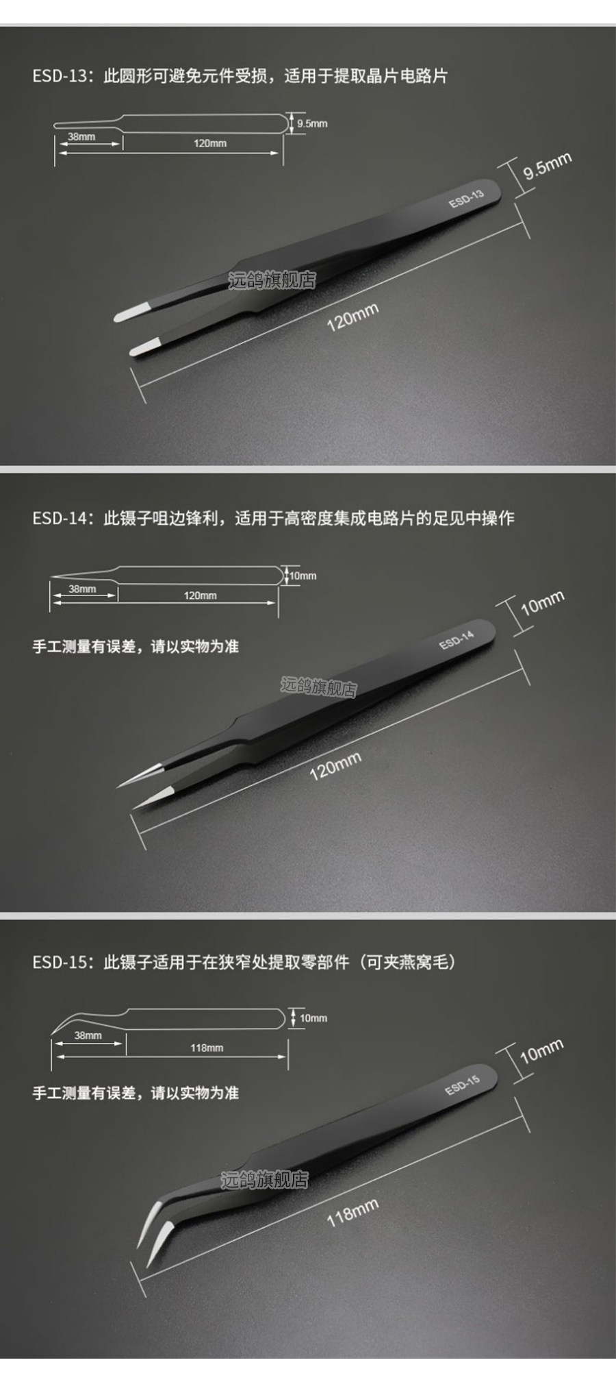 ESD-12 Стандартная сестра -ин -ловушка: эта 标 标 标 является более мощной, чем стандарт 镊, и он не будет сгибаться при использовании мощной платы зажима, и детали не упадут.