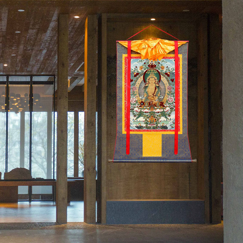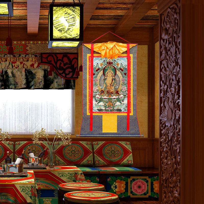Тибетскому царю Бодхисаттва поклоняется бодхисаттва, висящая тибетская вышитая вручную Тантра.