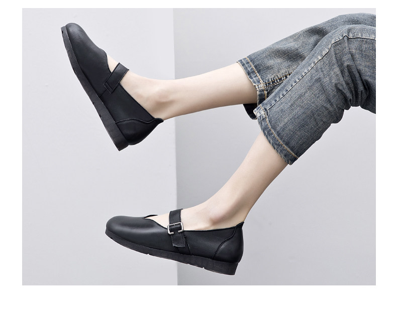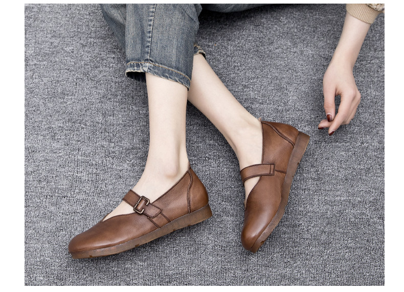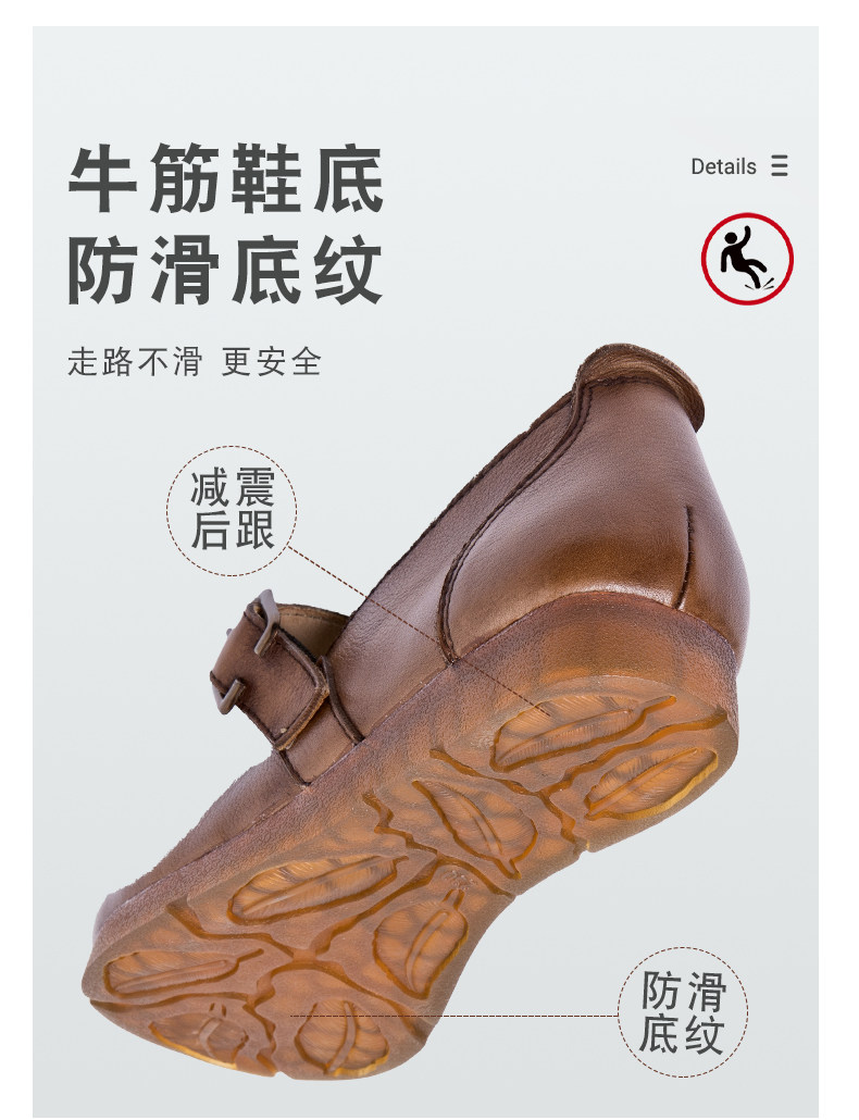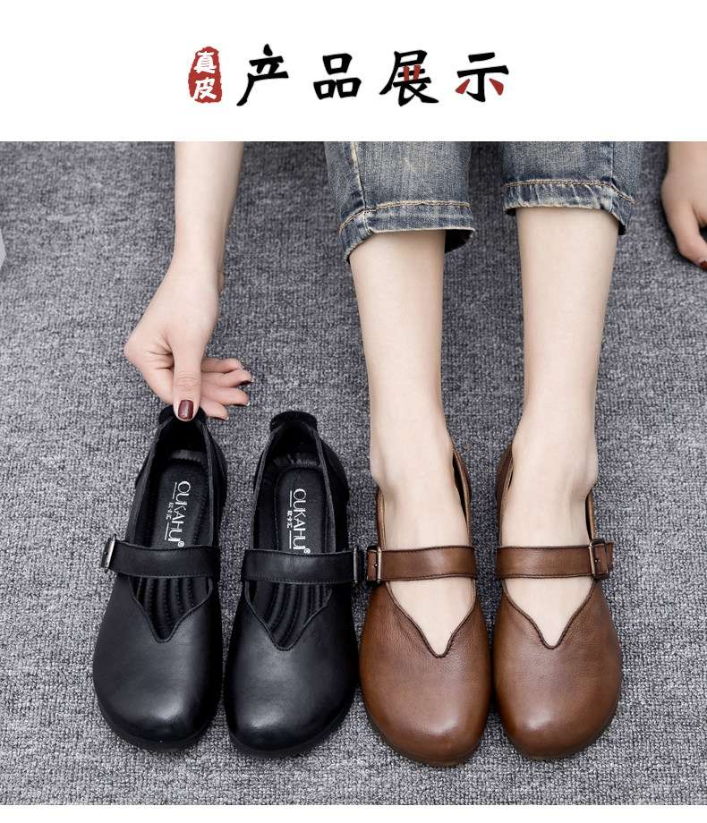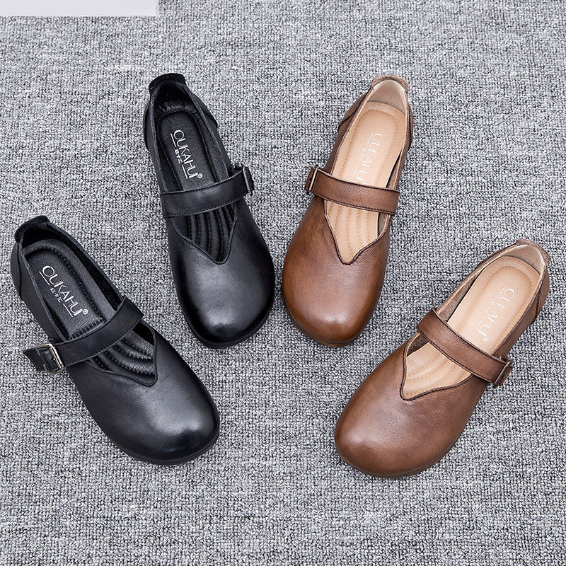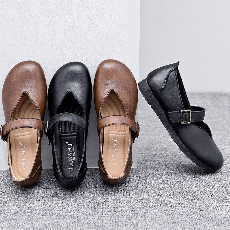 Весна и осенняя кожаная обувь обувь мягкие подошвы женщины удобные старые пожилые туфли с плоским дном мягкие ботинки с лапшой, коровьи одиночные туфли в ретро