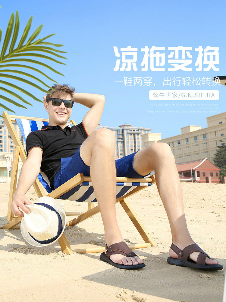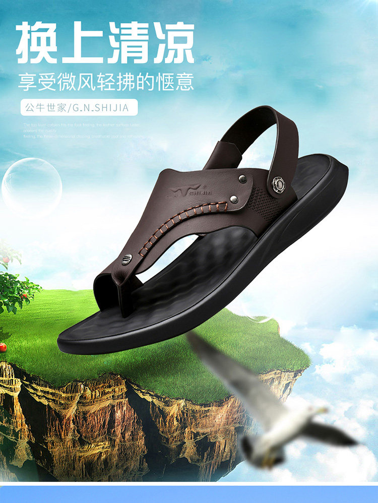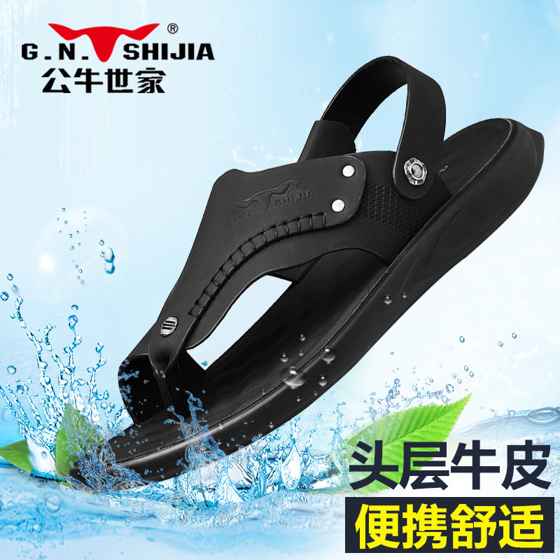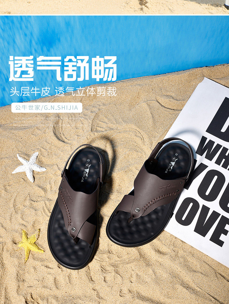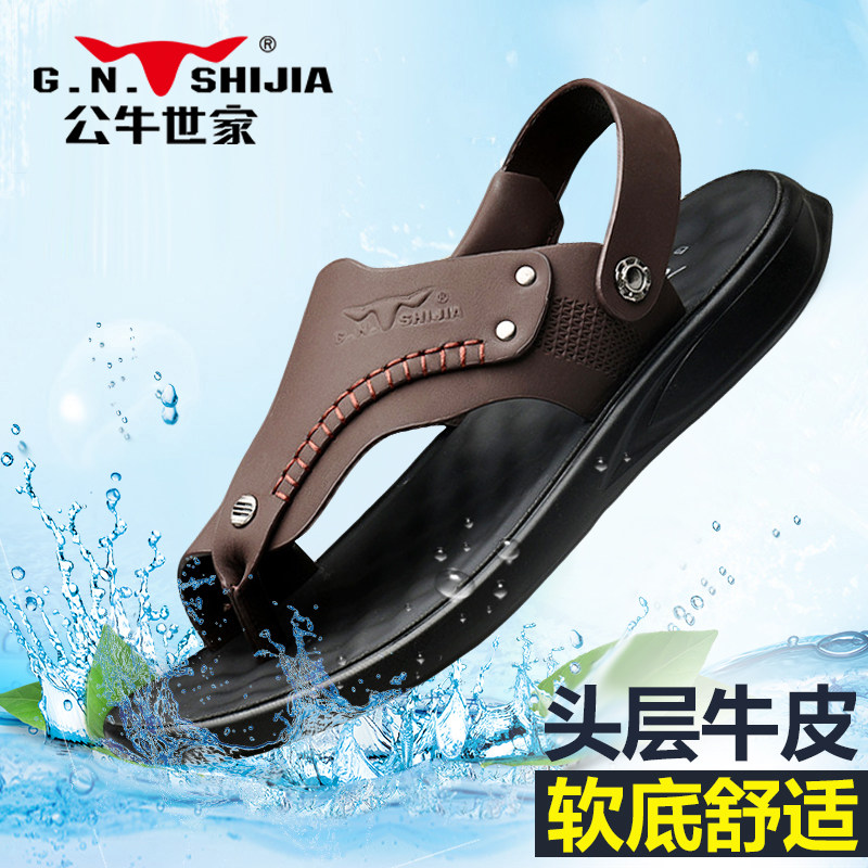 Летние сандалии, пляжные тапочки, слайдеры для отдыха, мягкая подошва, из натуральной кожи