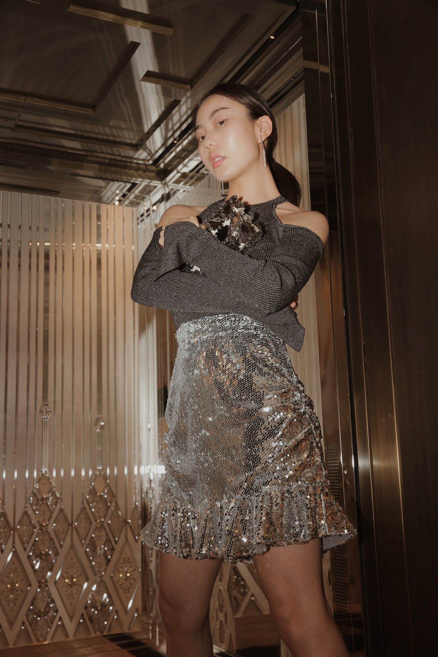 Sleep Over Sleep Дизайнерский сексуальный свитер, платье, в обтяжку, с блестками