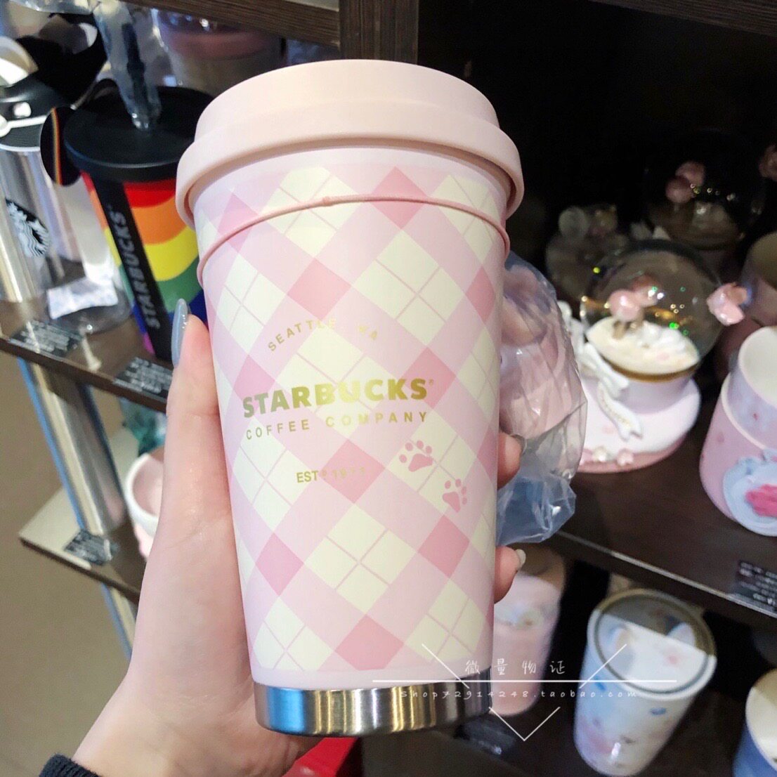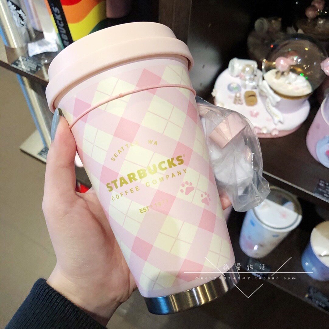Starbucks, розовая подвеска с ромбовидным узором, стакан из нержавеющей стали, 2020