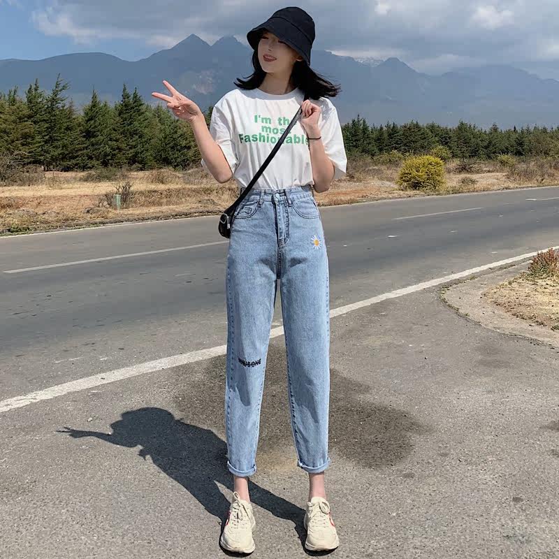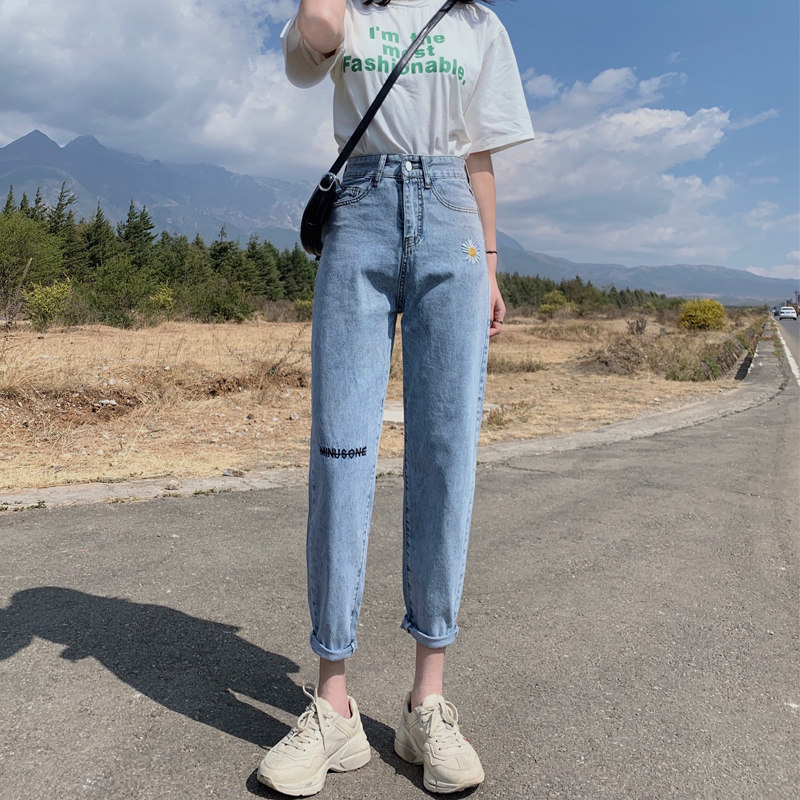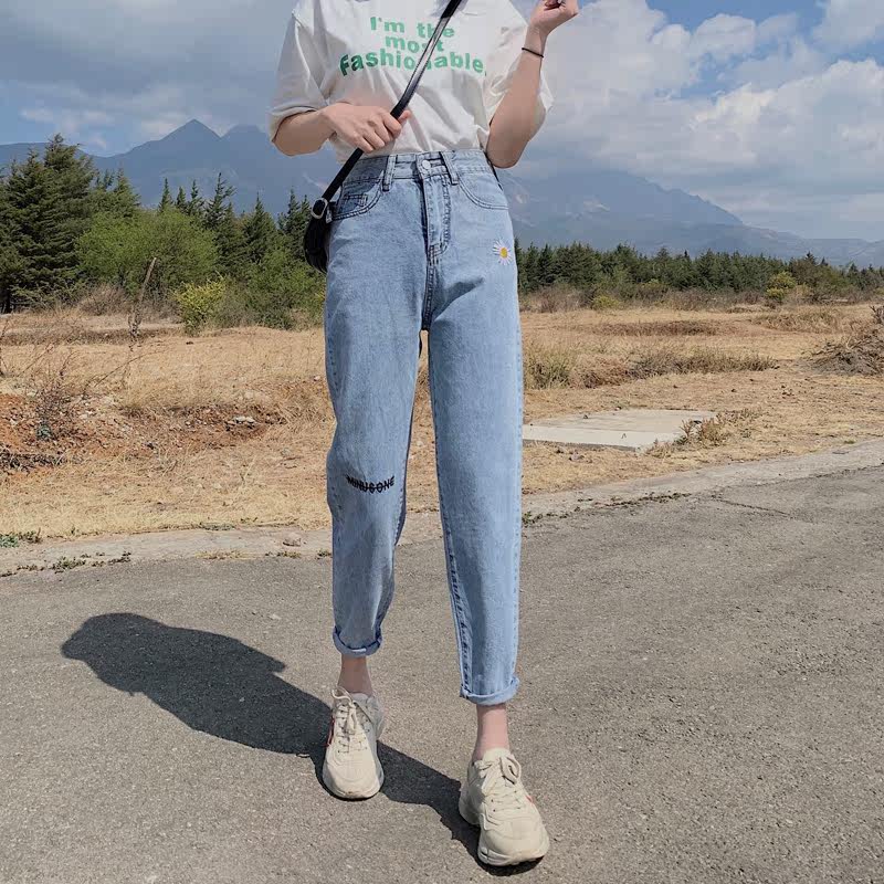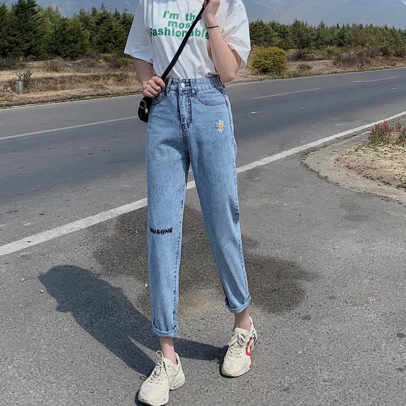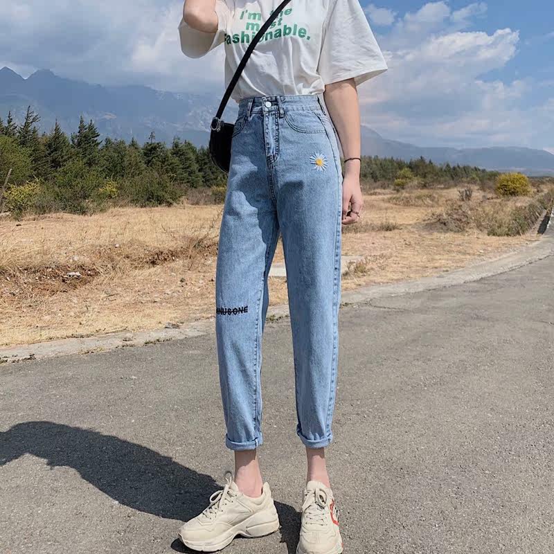 Осенние джинсы, штаны, коллекция 2021, высокая талия, свободный прямой крой, большой размер