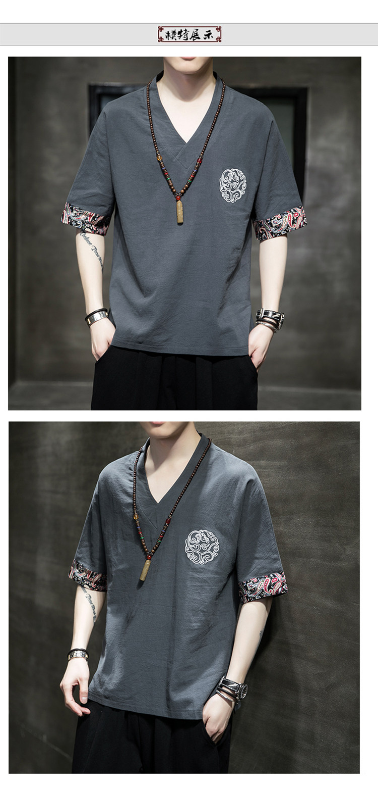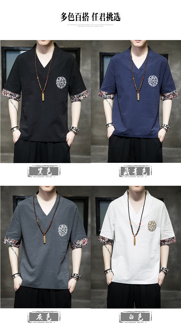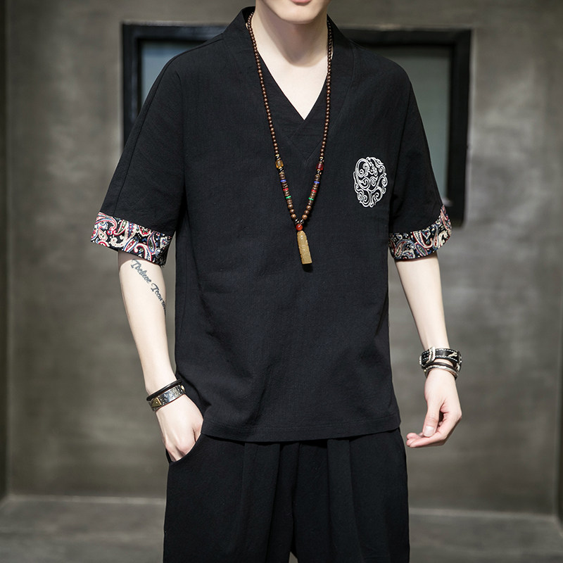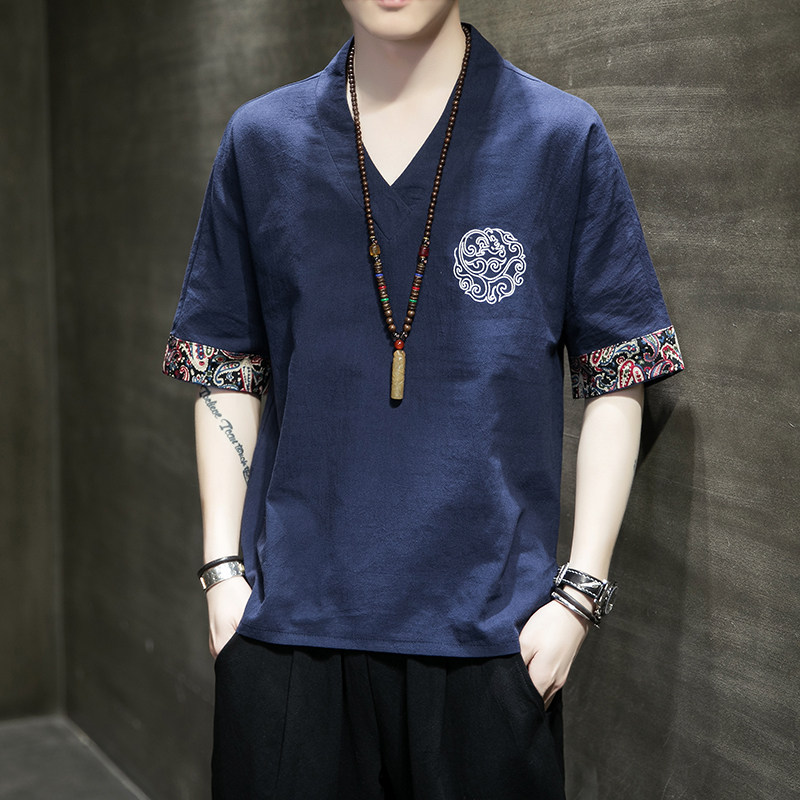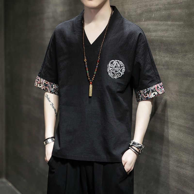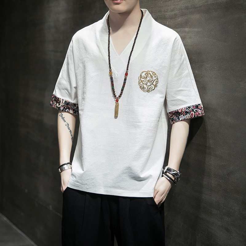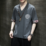 Летняя тонкая ретро футболка, китайский стиль, из хлопка и льна, оверсайз, короткий рукав, большой размер, с вышивкой