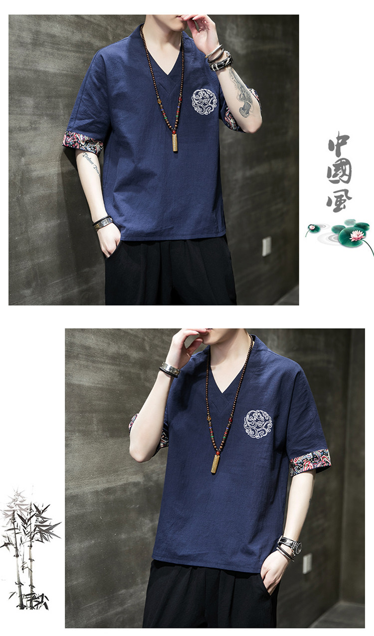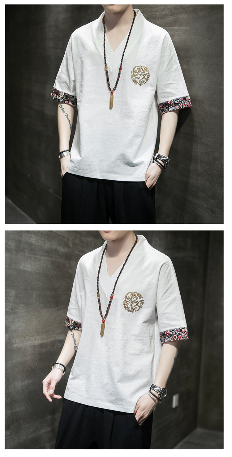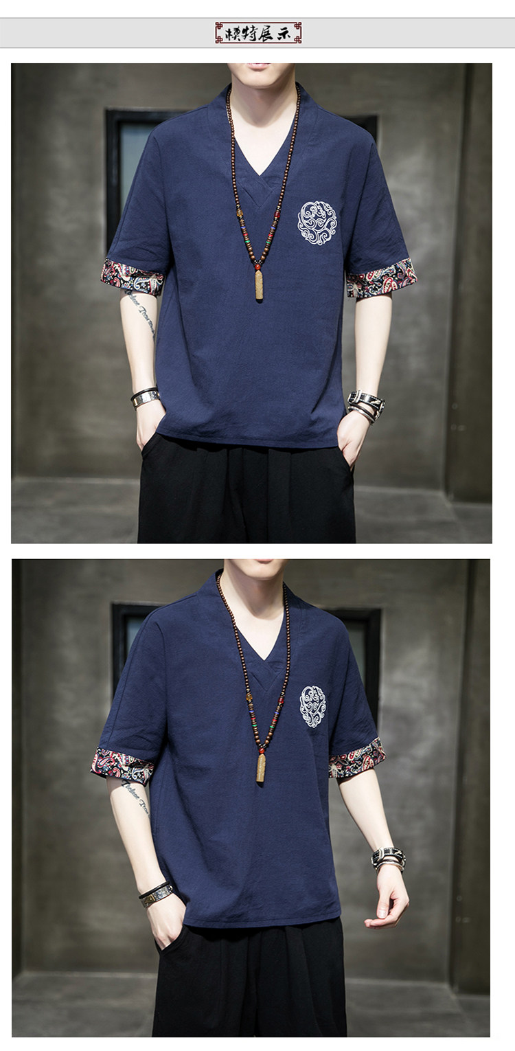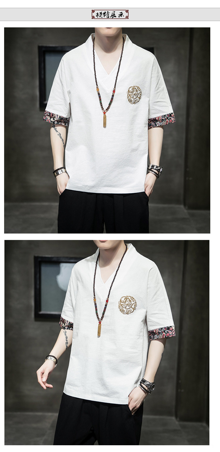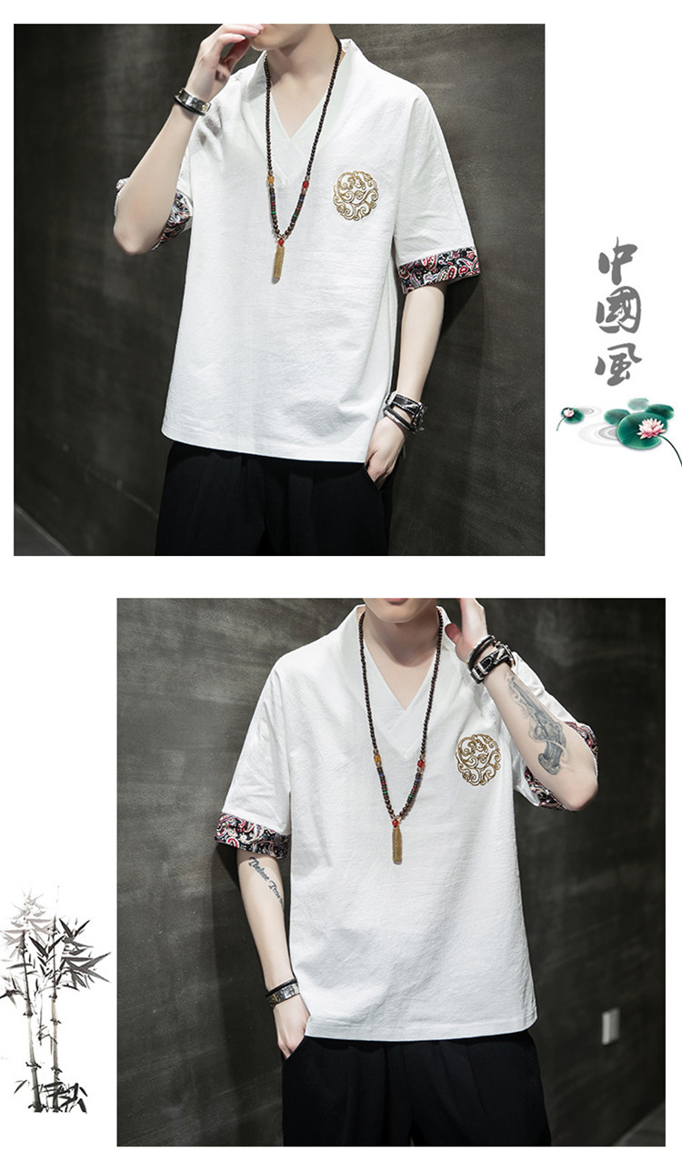 Летняя тонкая ретро футболка, китайский стиль, из хлопка и льна, оверсайз, короткий рукав, большой размер, с вышивкой