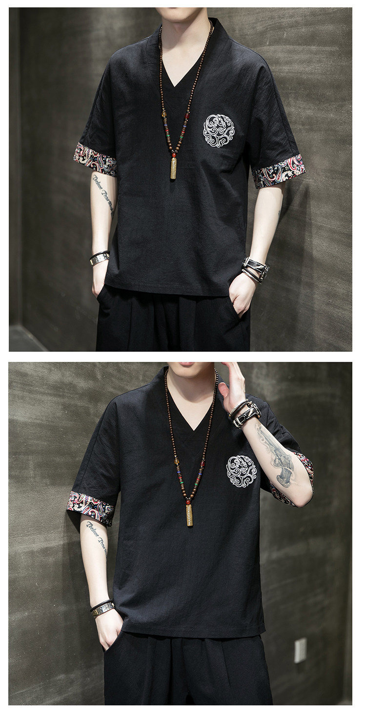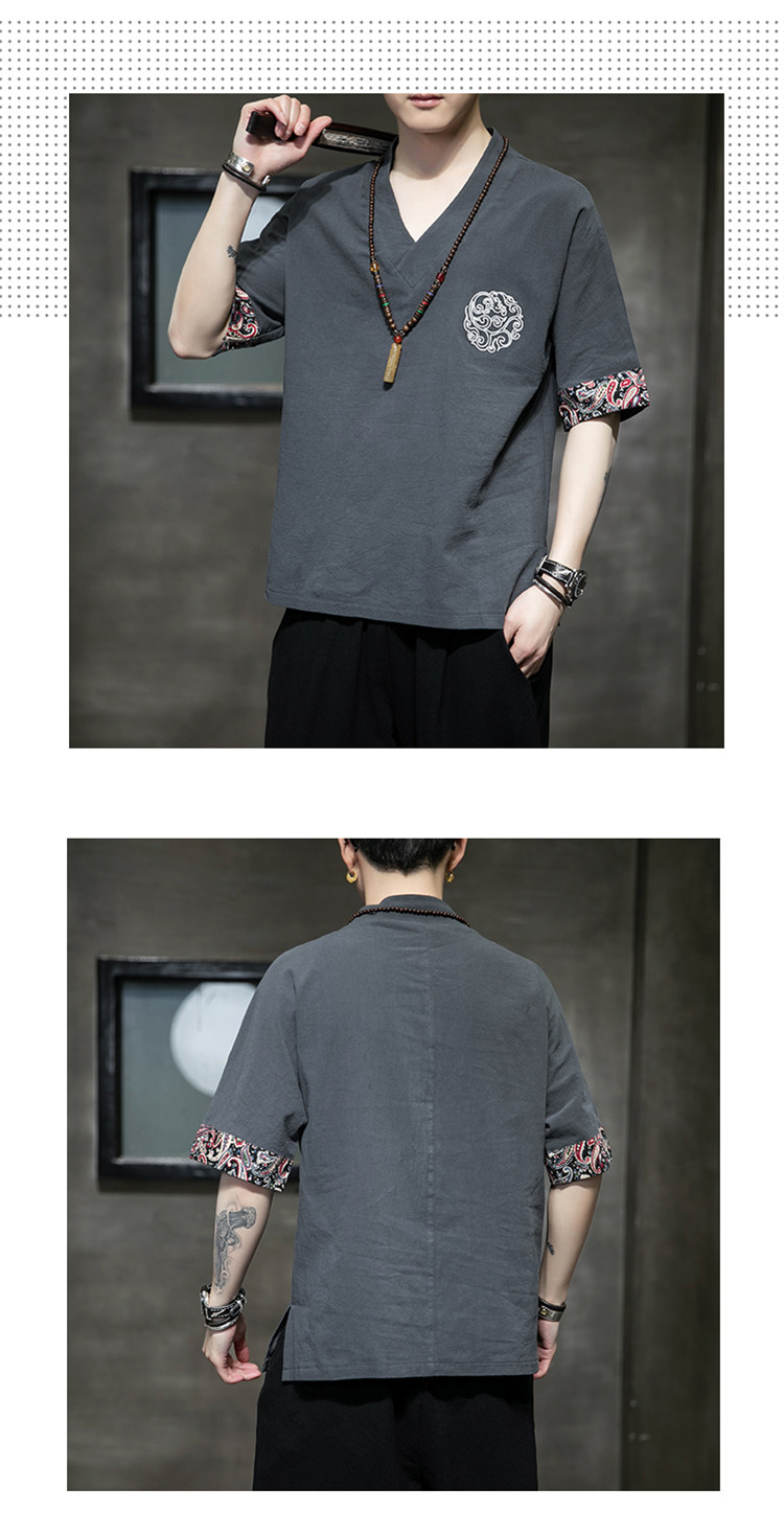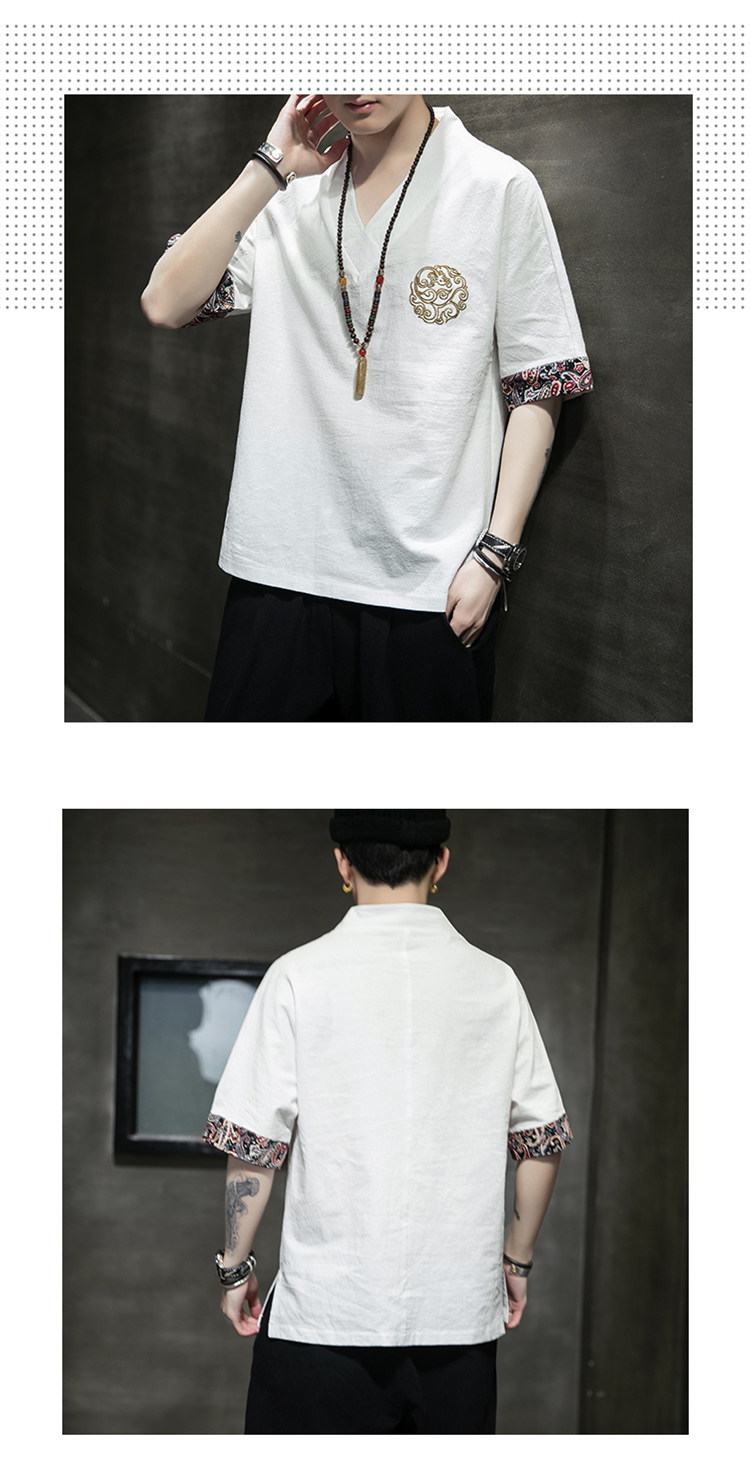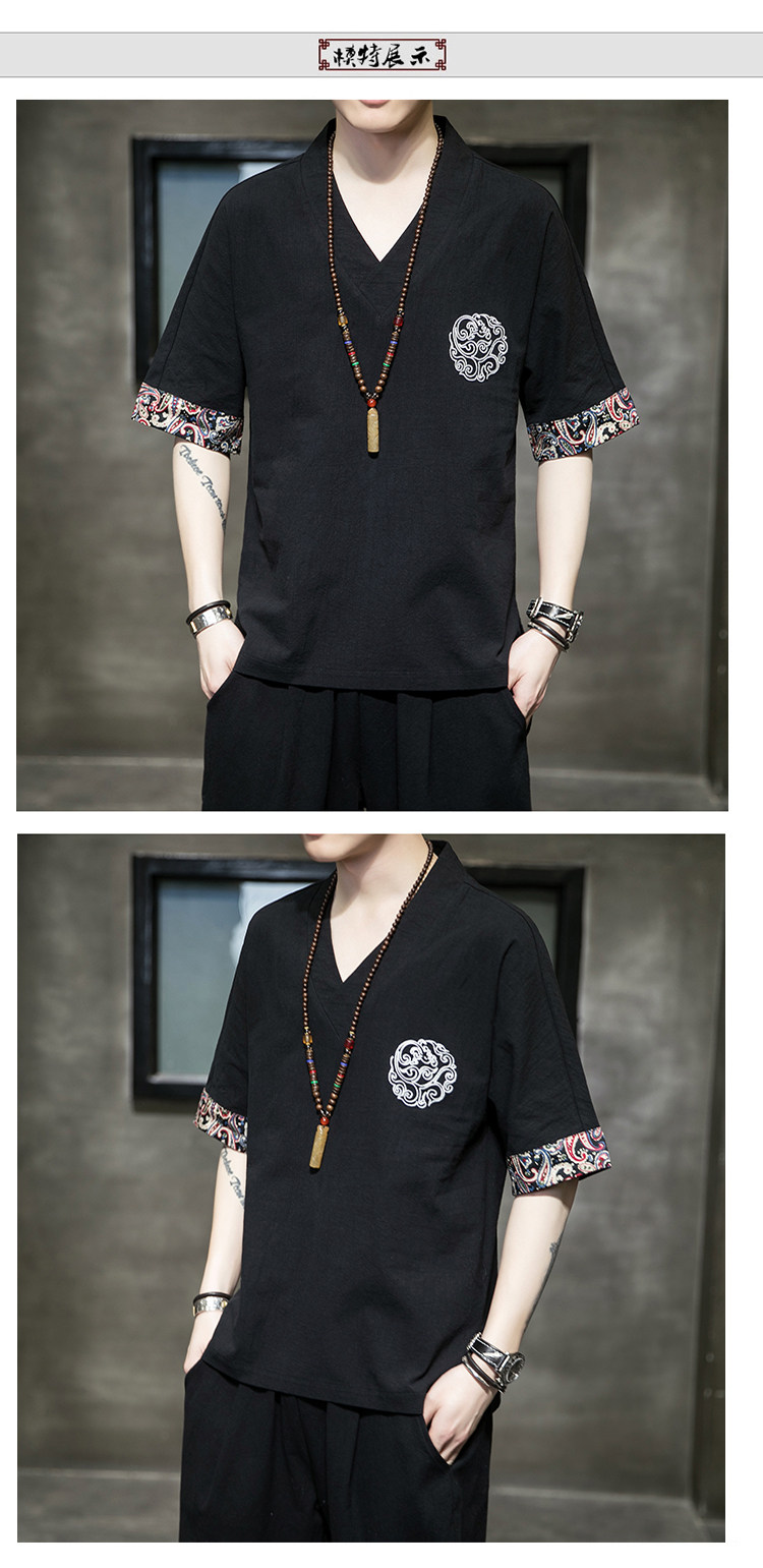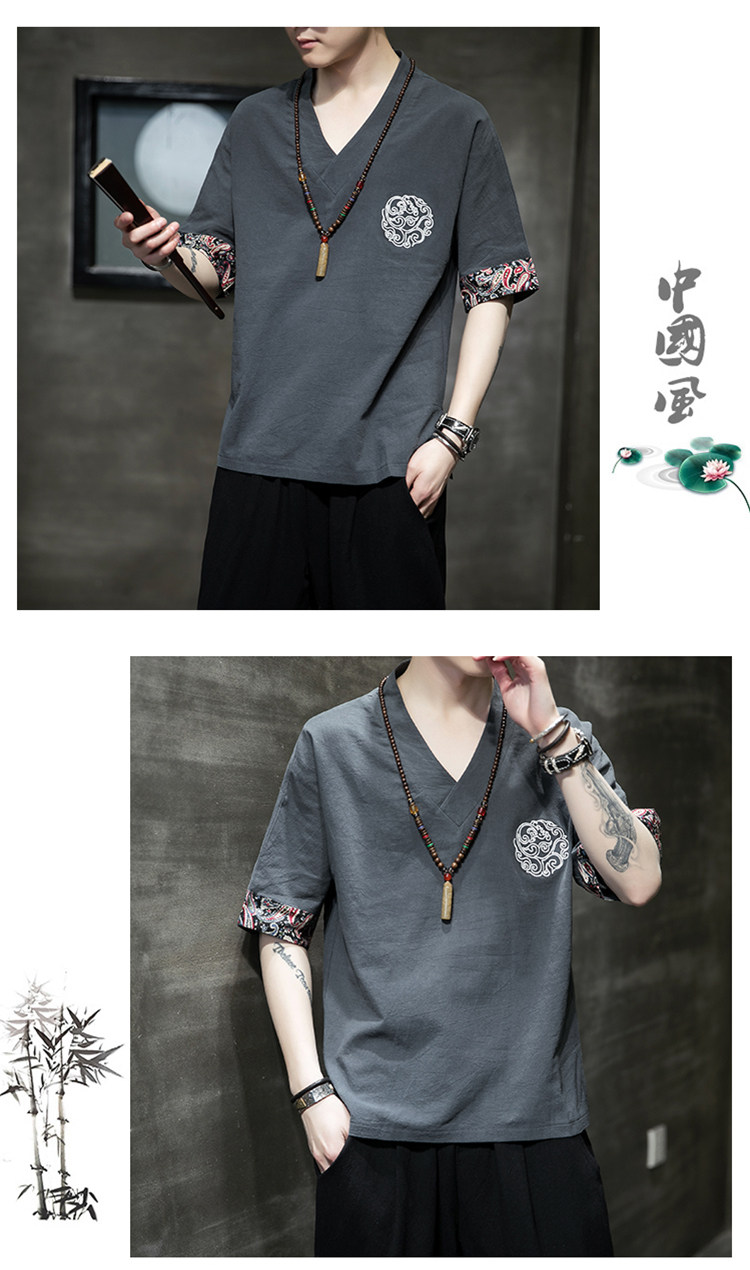Летняя тонкая ретро футболка, китайский стиль, из хлопка и льна, оверсайз, короткий рукав, большой размер, с вышивкой