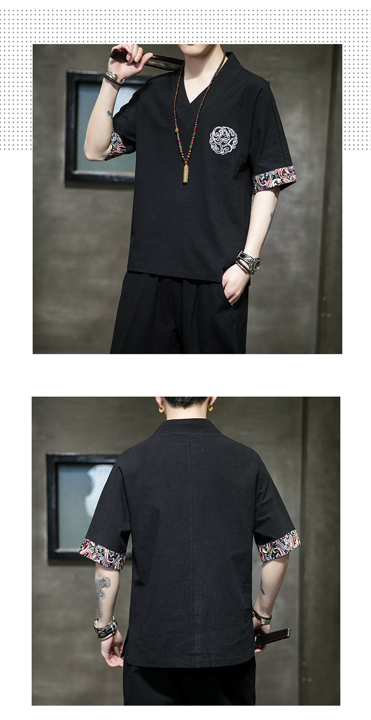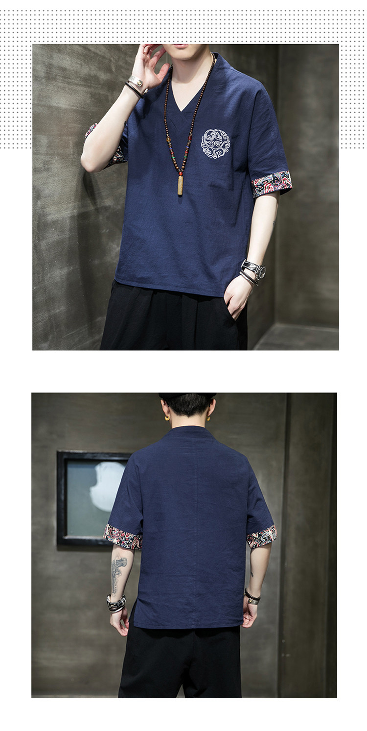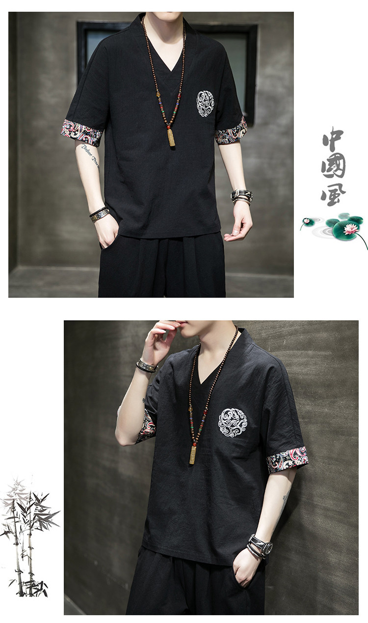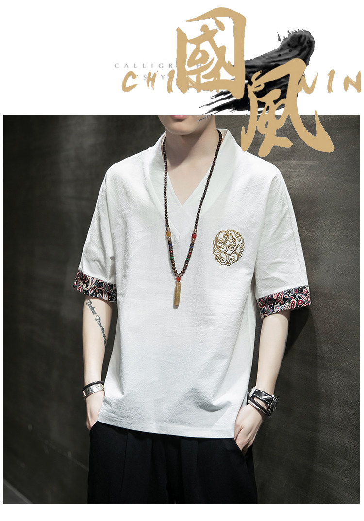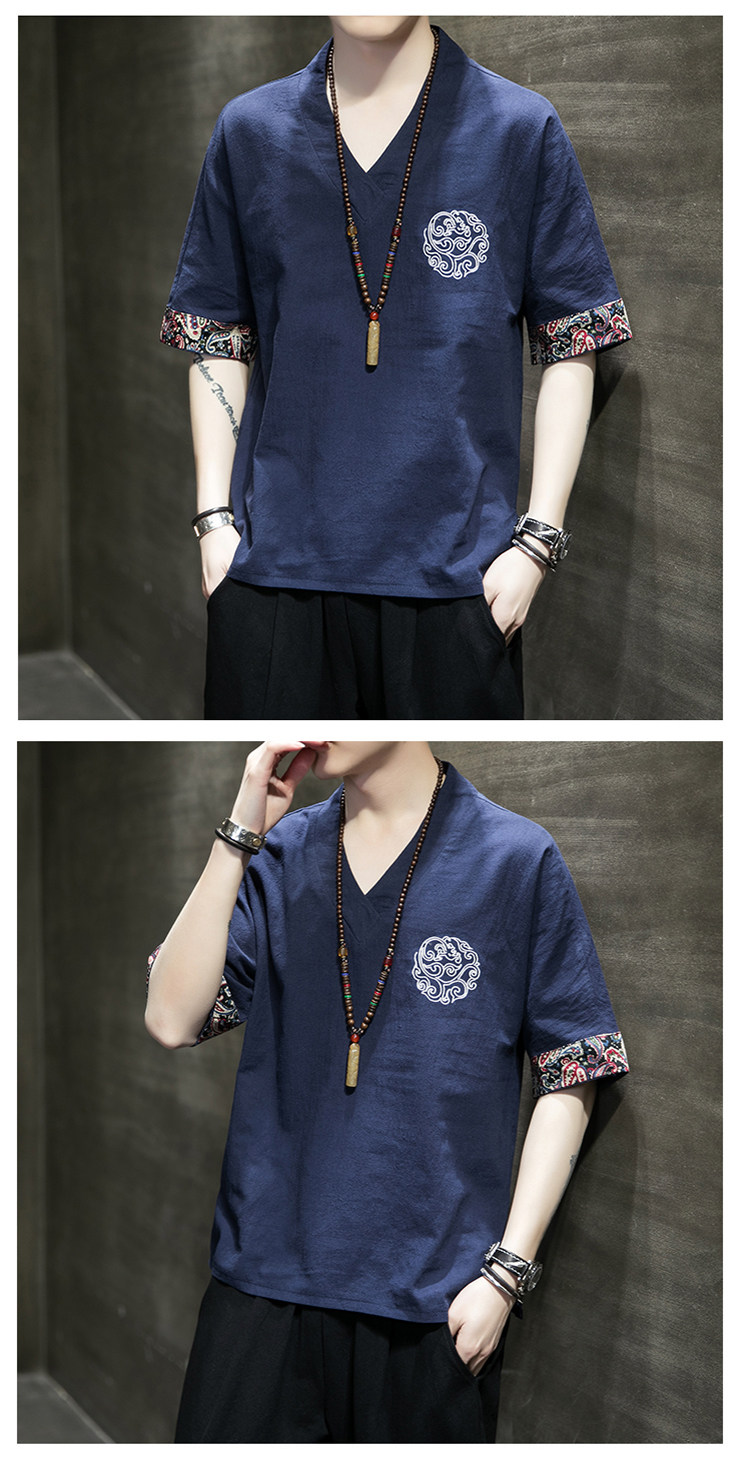 Летняя тонкая ретро футболка, китайский стиль, из хлопка и льна, оверсайз, короткий рукав, большой размер, с вышивкой