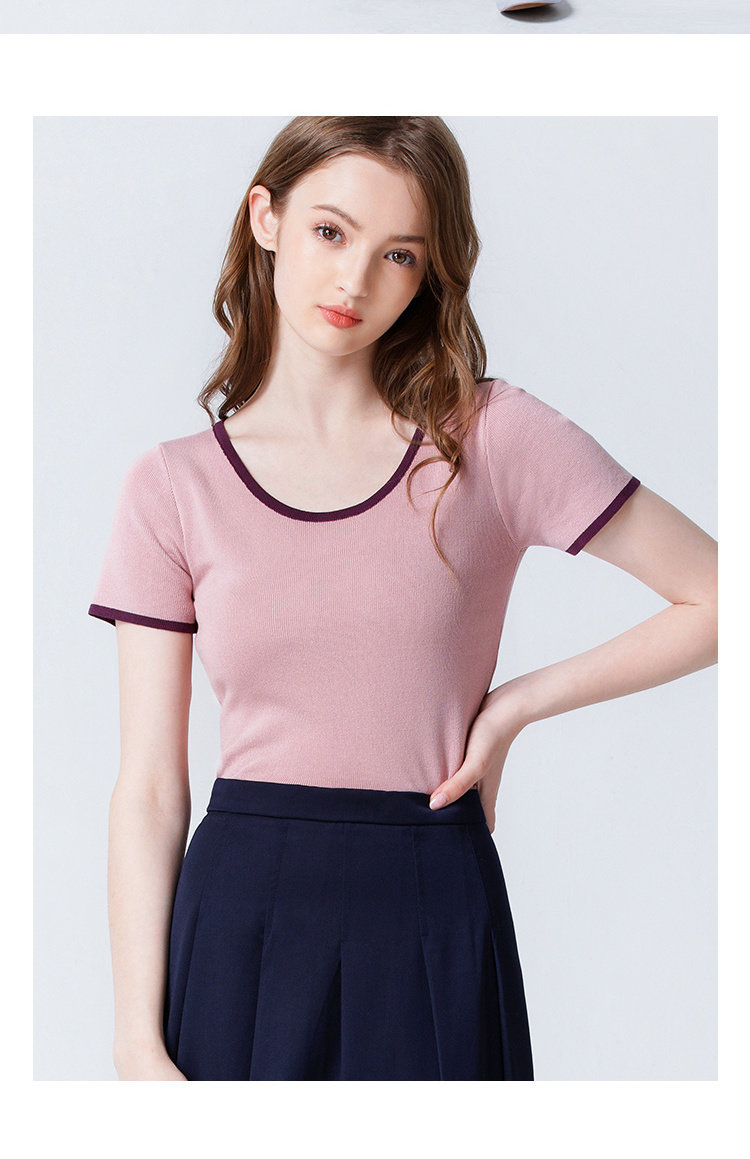 艾米恋 Трикотажная летняя тонкая короткая приталенная базовая приятная телу футболка с коротким рукавом с круглым воротником