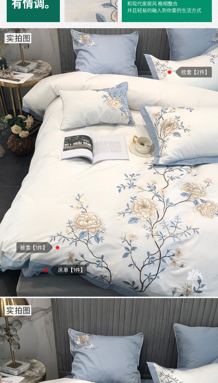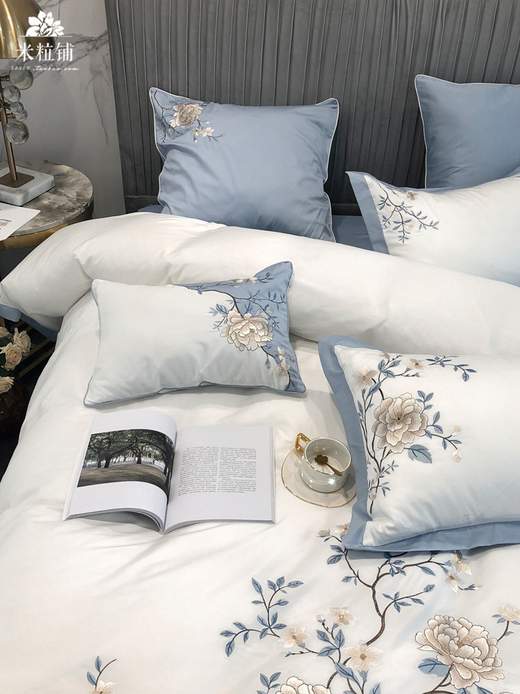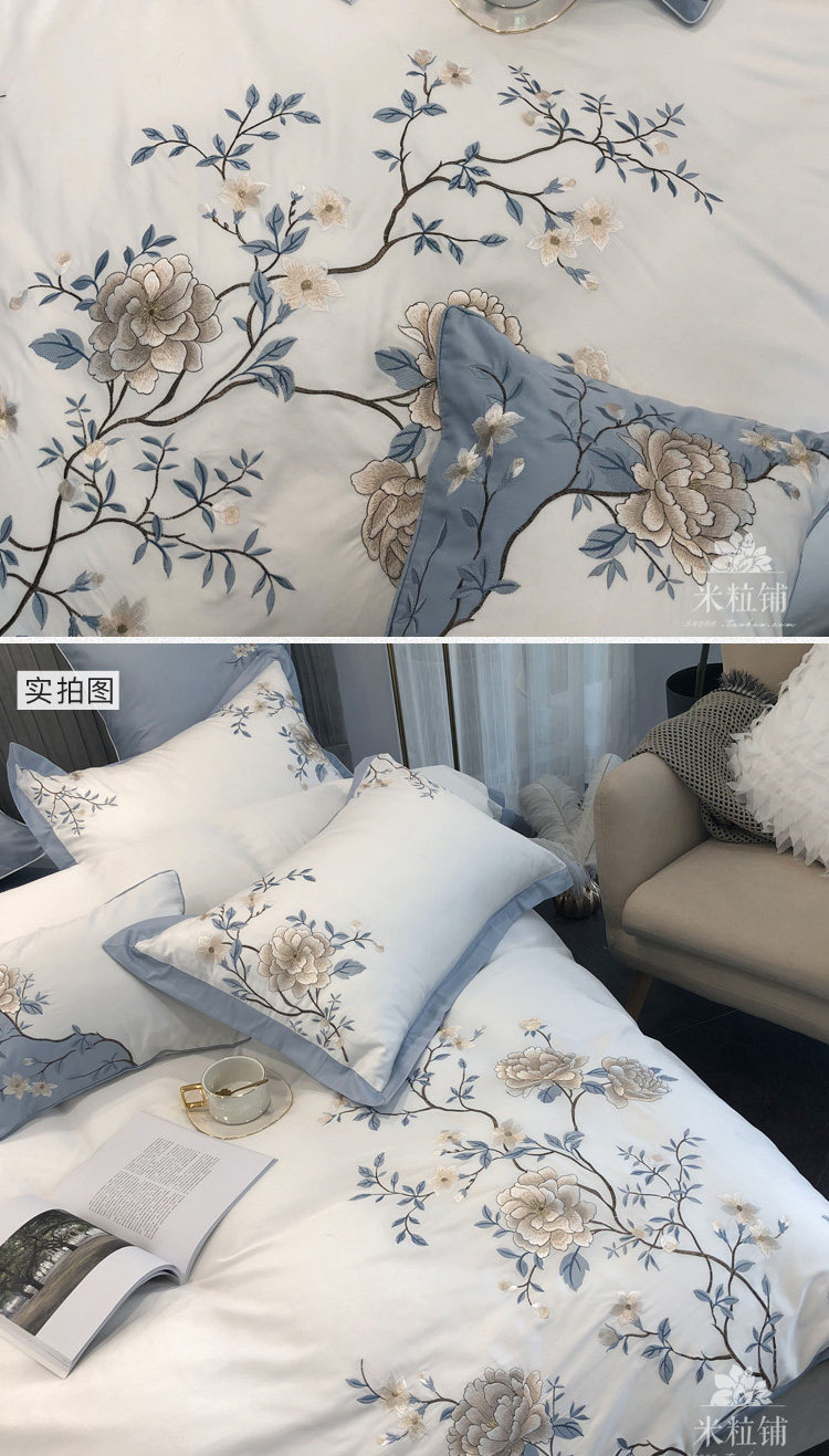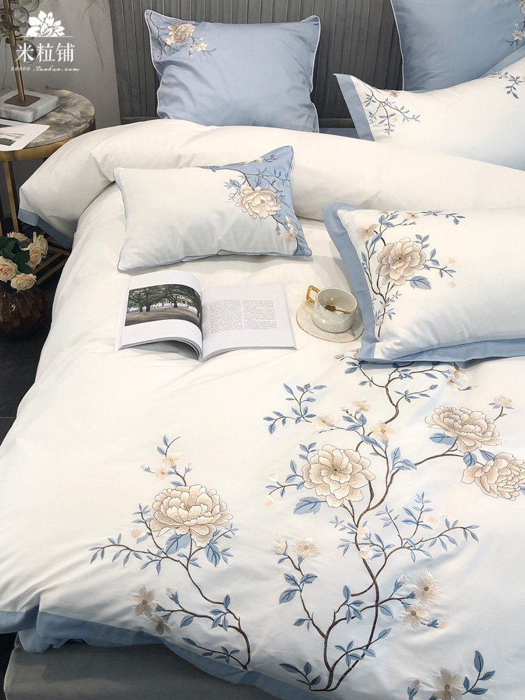 Хлопковый комплект, одеяло, пододеяльник, покрывало, китайский стиль, 4 предмета, 60 шт, с вышивкой