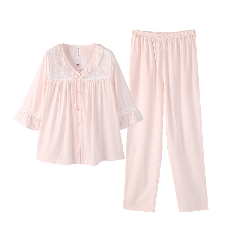 芬腾 Весенняя летняя тонкая пижама, однотонный кардиган, рубашка, комплект, в корейском стиле, большой размер