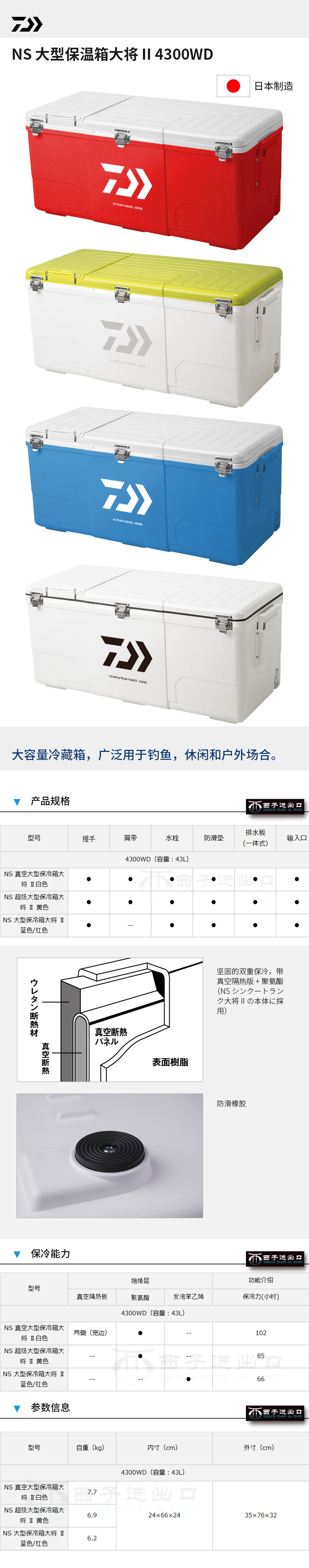 Dava Daiwa Japan Imported NS General -Generation Большой изоляционный холодильник 43 -литровый рыболовство