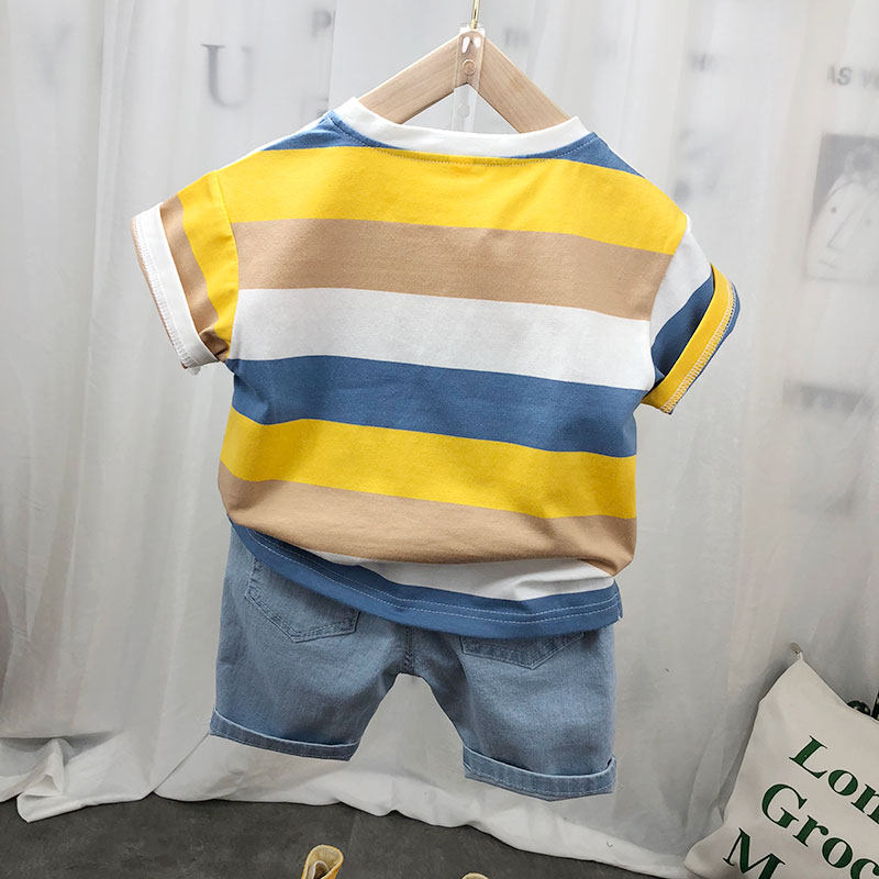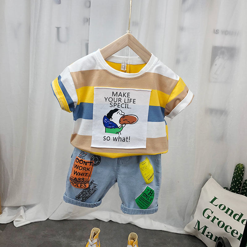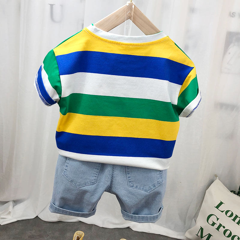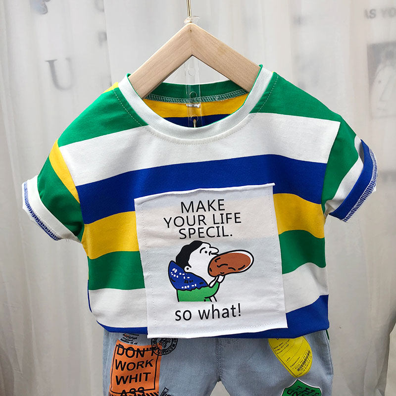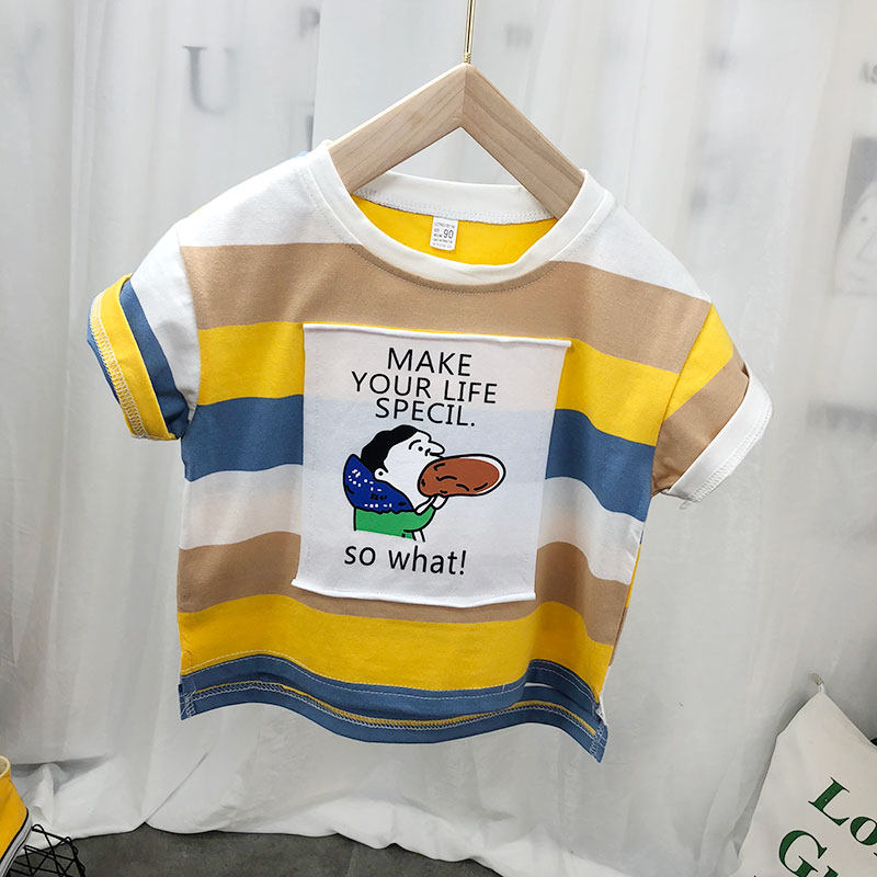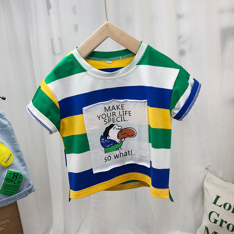 Детская хлопковая летняя футболка с коротким рукавом для мальчиков, тонкая летняя одежда, 2024 года, в корейском стиле