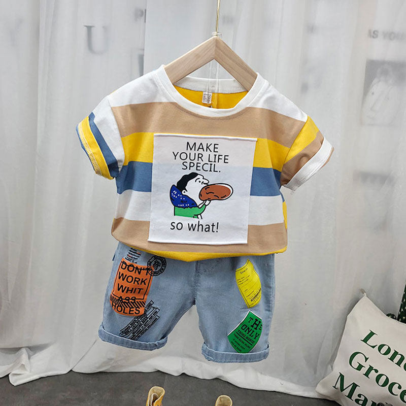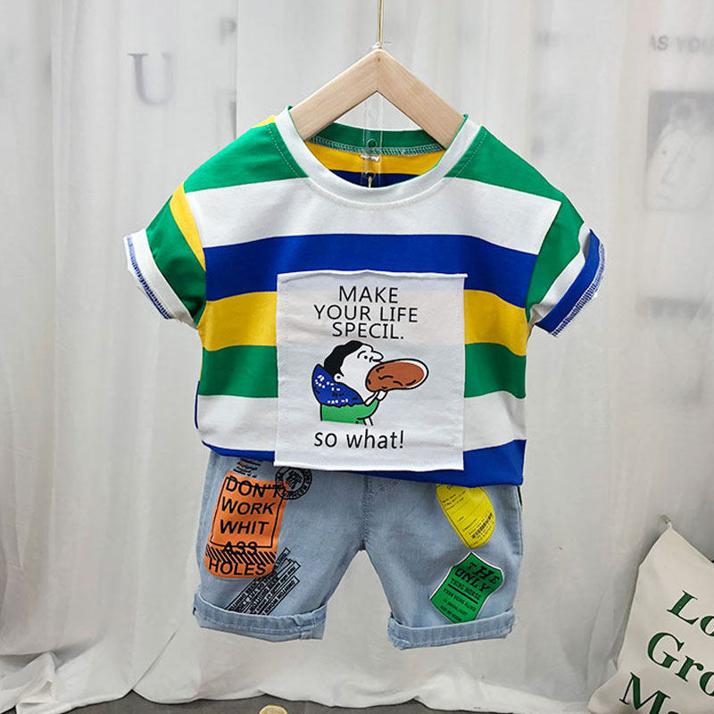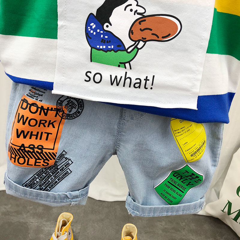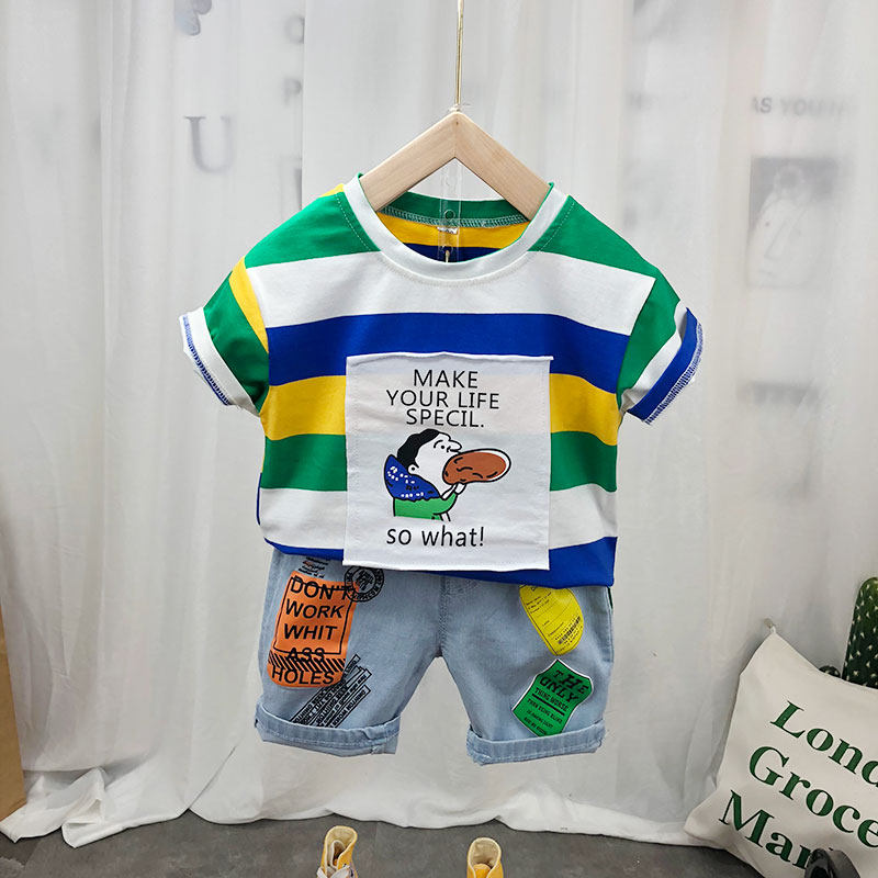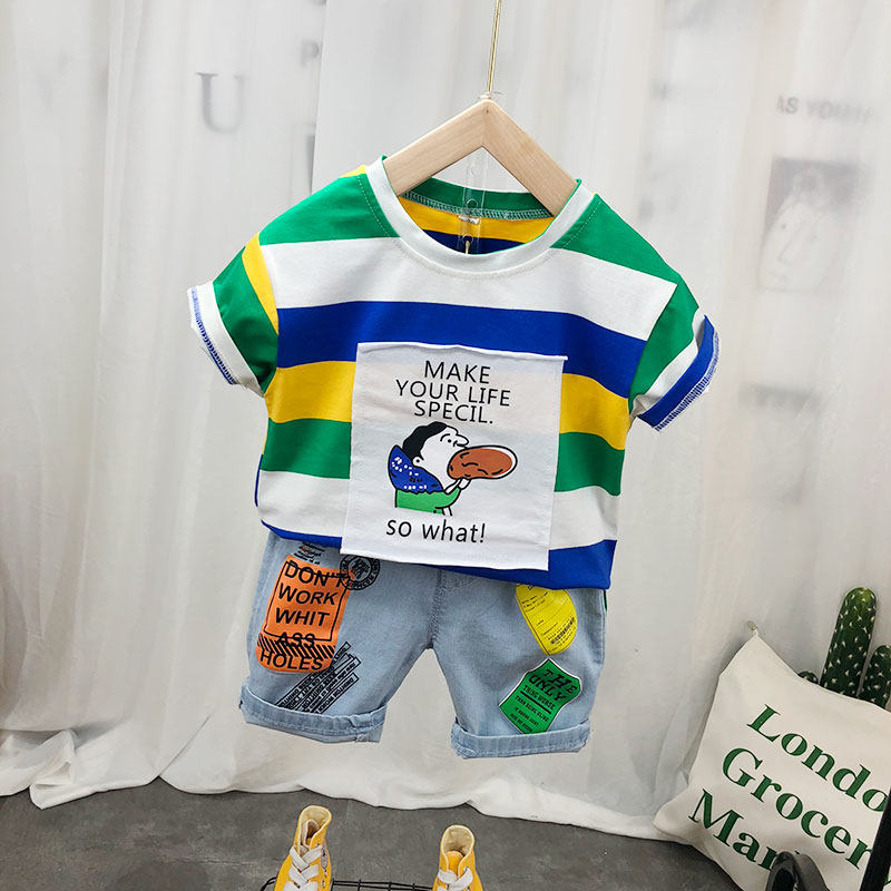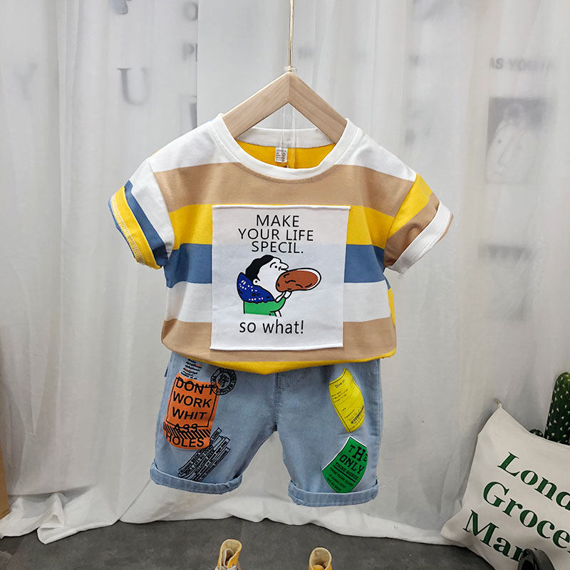 Детская хлопковая летняя футболка с коротким рукавом для мальчиков, тонкая летняя одежда, 2024 года, в корейском стиле