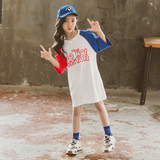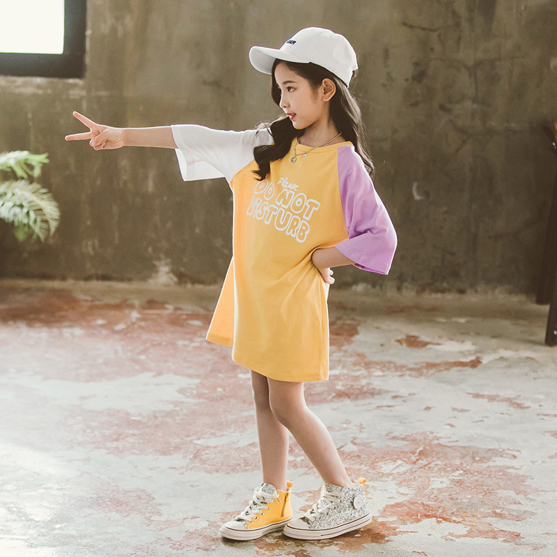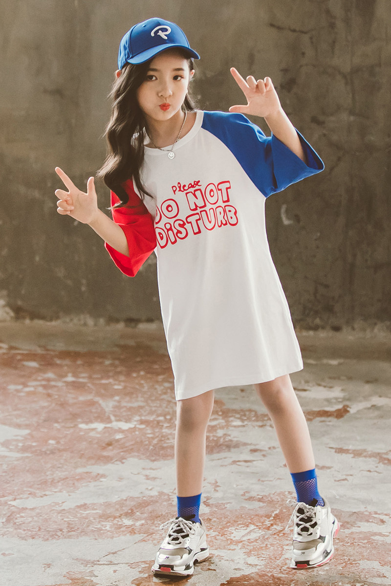 Длинная летняя юбка, форма, хлопковая футболка с коротким рукавом, платье, средней длины, в корейском стиле, детская одежда, подходит для подростков, в западном стиле