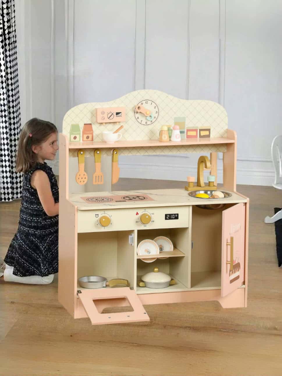 Детская игрушка, деревянный комплект, семейная кухонная утварь, большая плита для мальчиков и девочек
