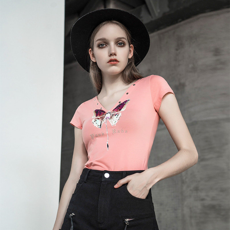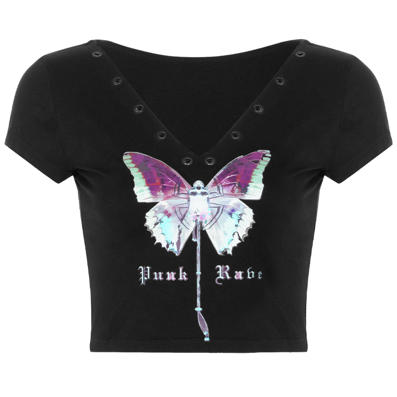 Черная сексуальная короткая летняя футболка, в стиле панк, V-образный вырез, коллекция 2021
