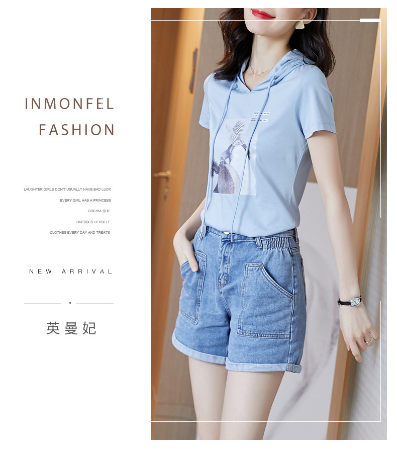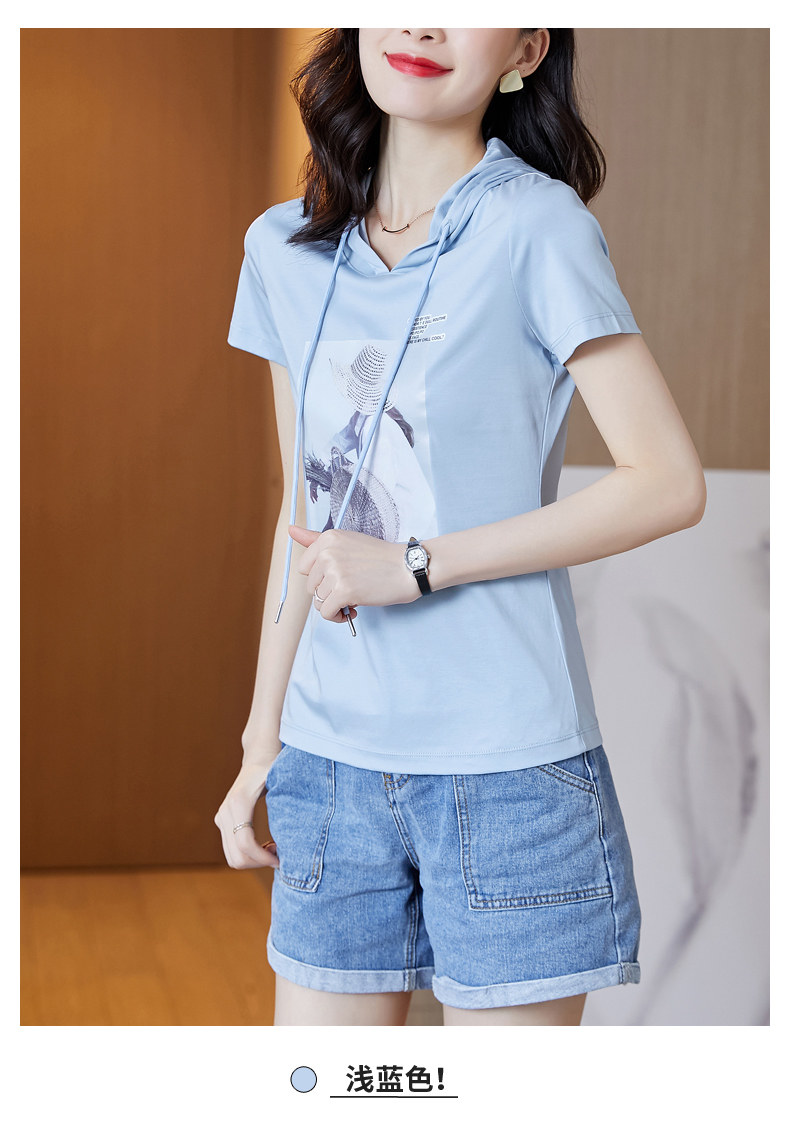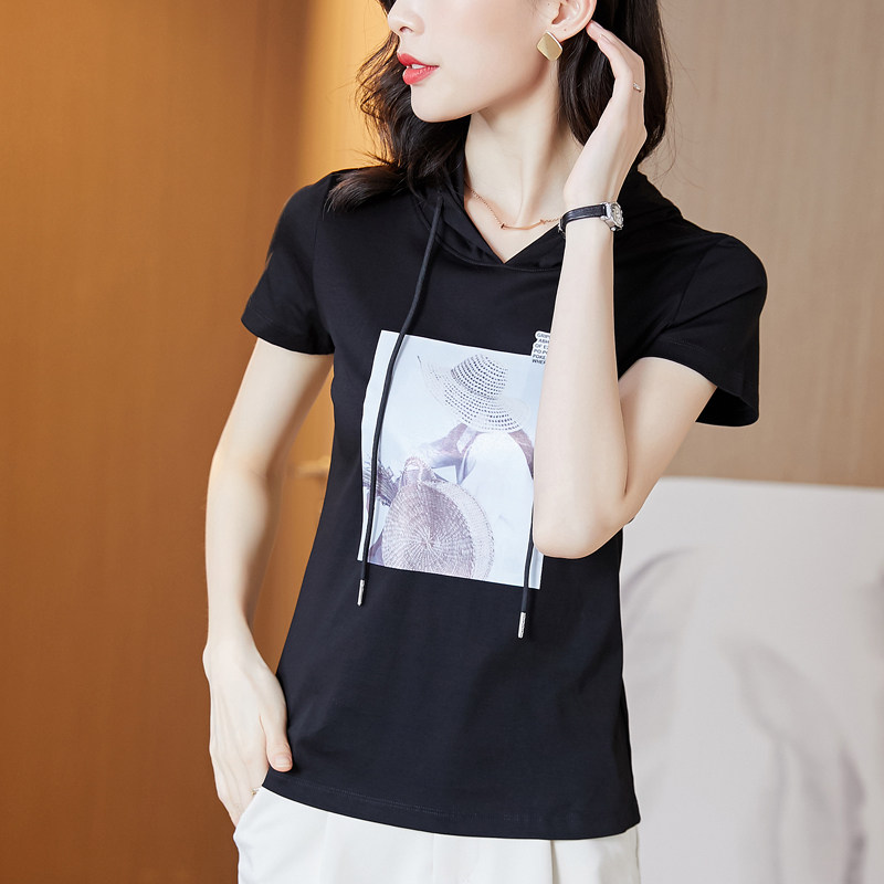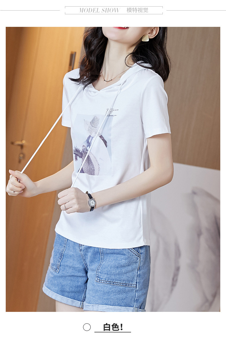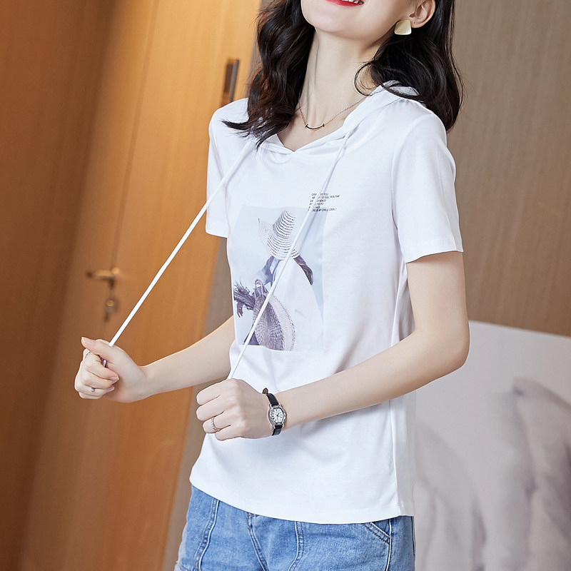 Tide, хлопковая приталенная белая летняя футболка с капюшоном, короткий рукав, облегающий крой