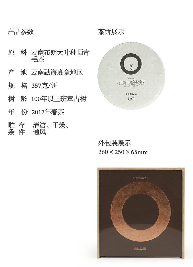 Wanlitang • 10th Anniversary Limited Упомянутый старый класс старый класс Древнее дерево Pu'er Tea Cake сырой чай на 100 лет или более