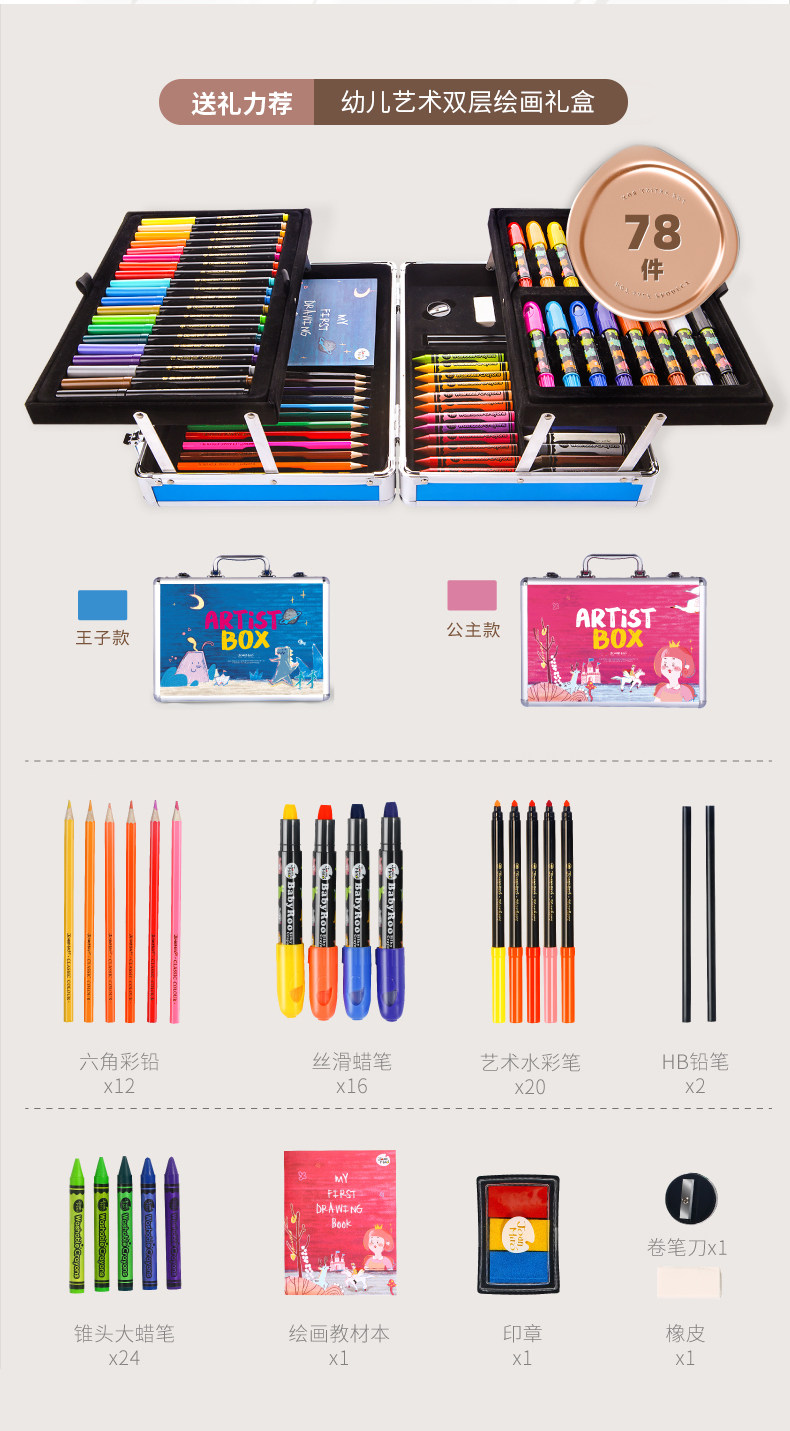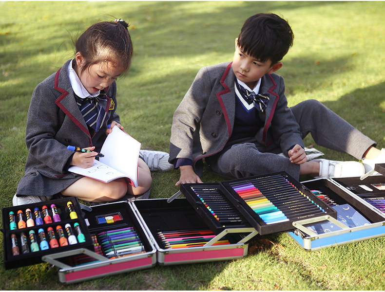 Детский обучающий набор инструментов для школьников, мелки для детского сада, акварель, кисть, ручка в подарочной коробке