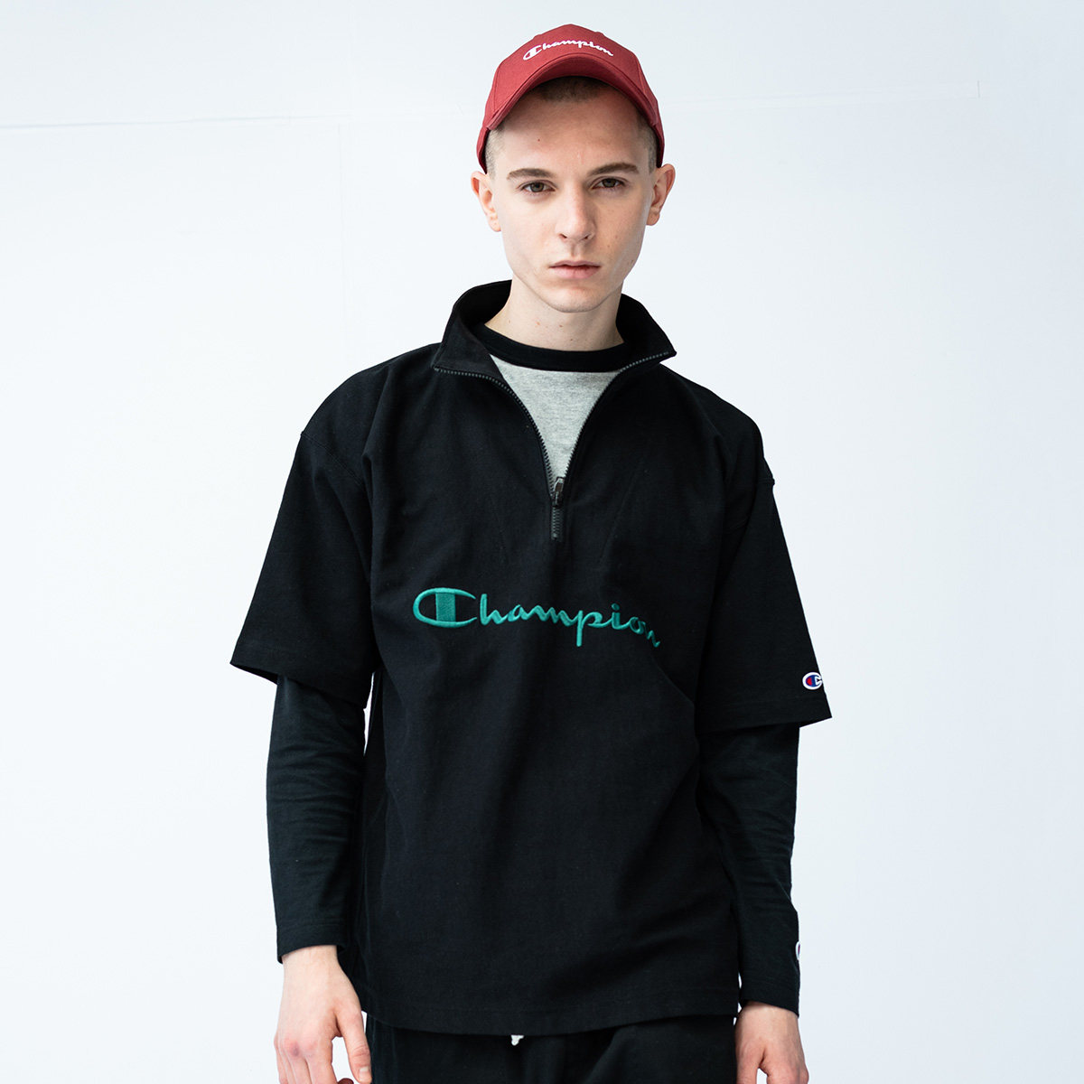 Сущность[Серия с обратной плетением] Чемпион Чемпион T -Fish Semi -Zipper Мужская рубашка Short RW